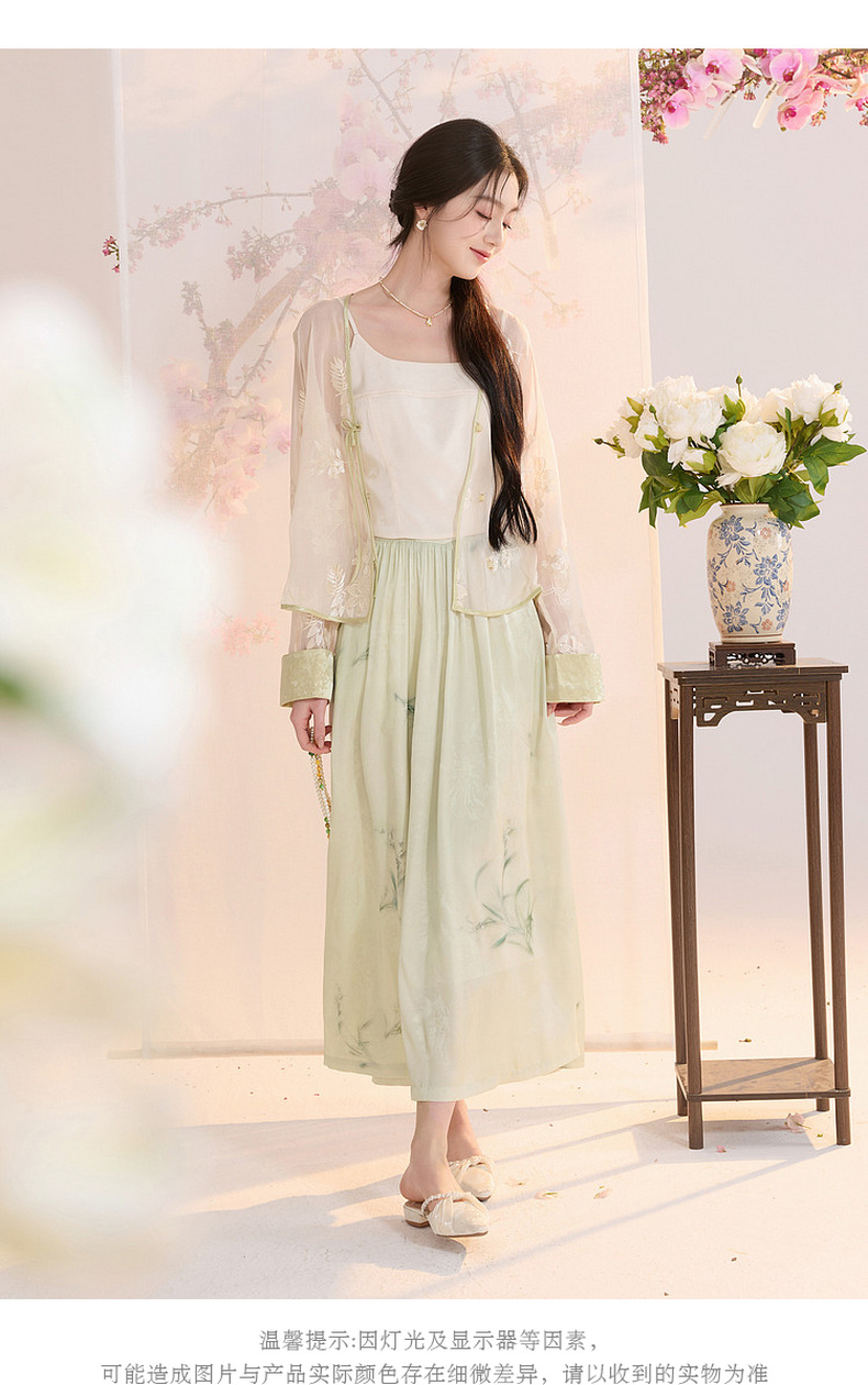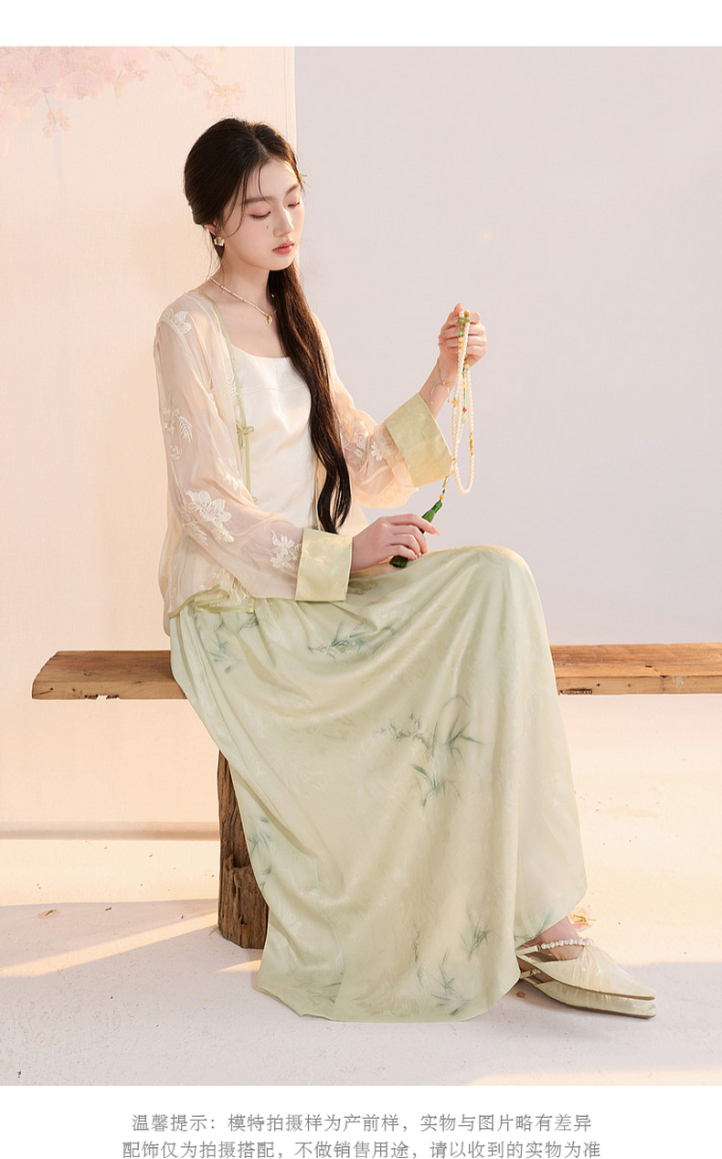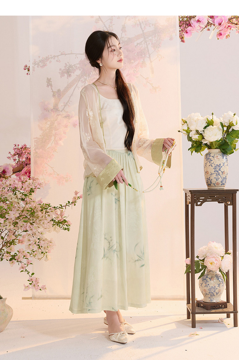 三彩【兰亭织梦】2026夏季新款新中式高腰提花半身裙大摆A字长裙C