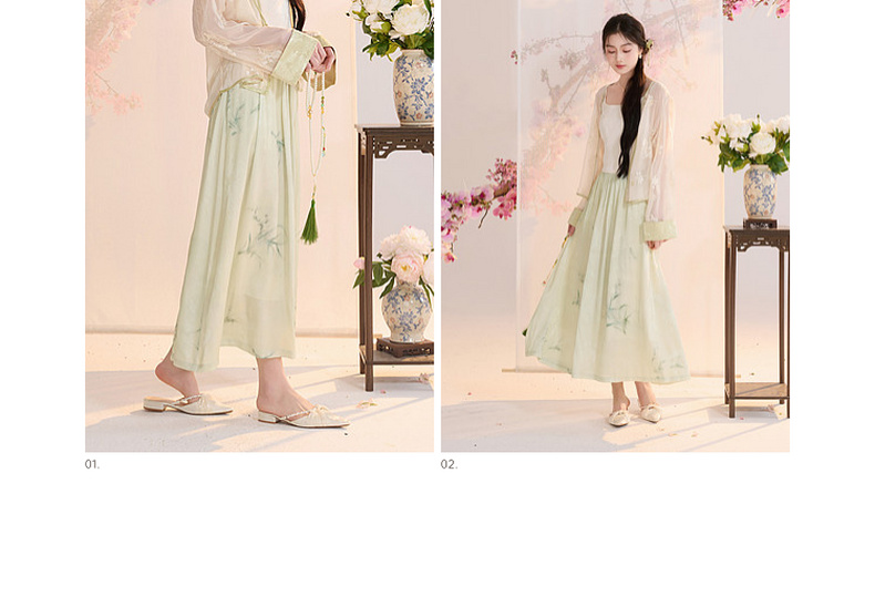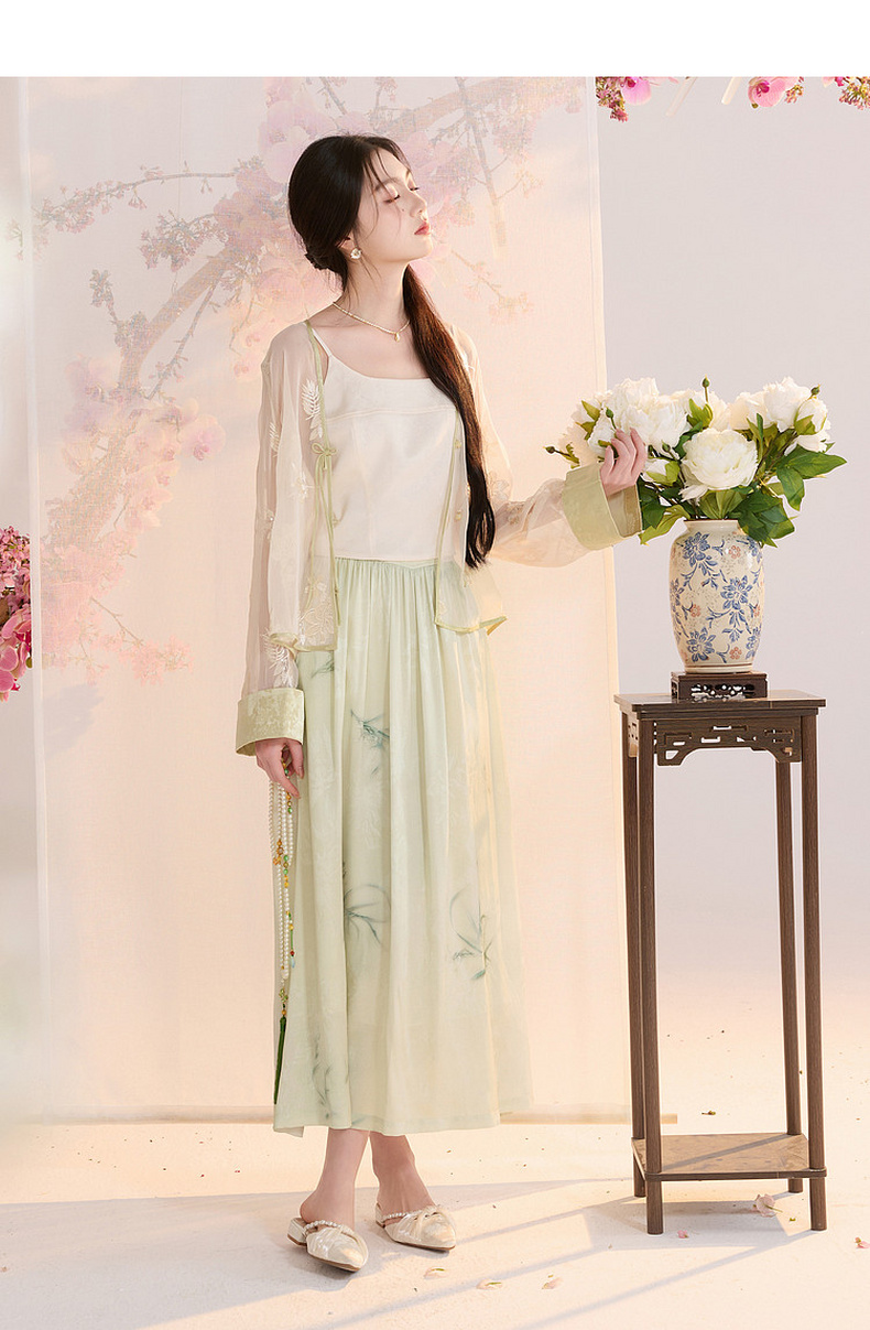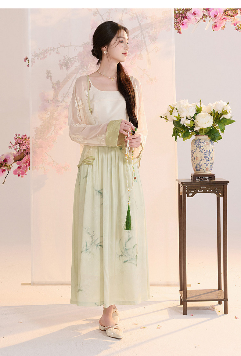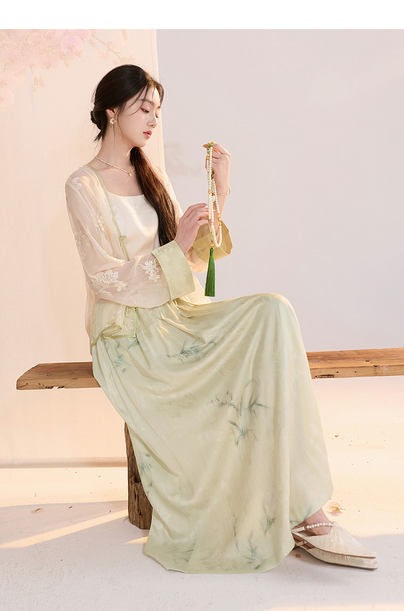 三彩【兰亭织梦】2026夏季新款新中式高腰提花半身裙大摆A字长裙C