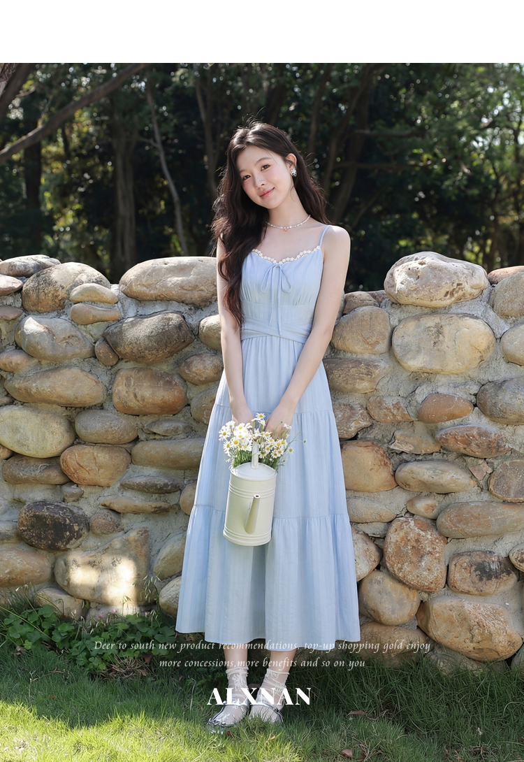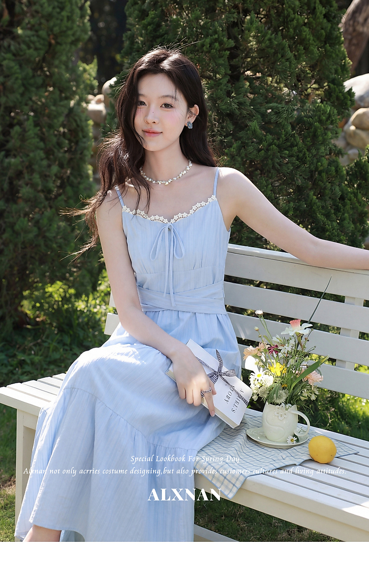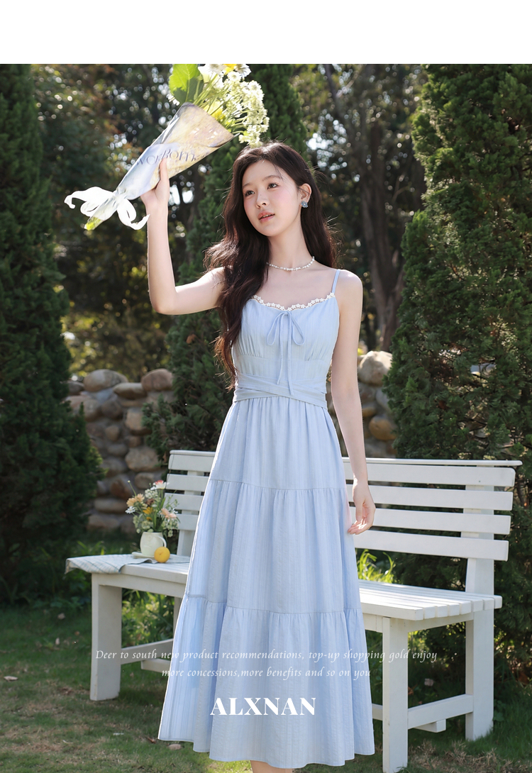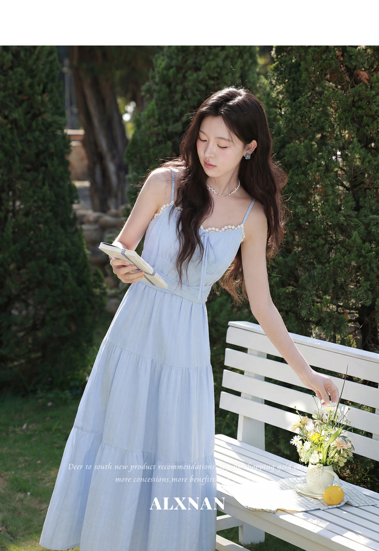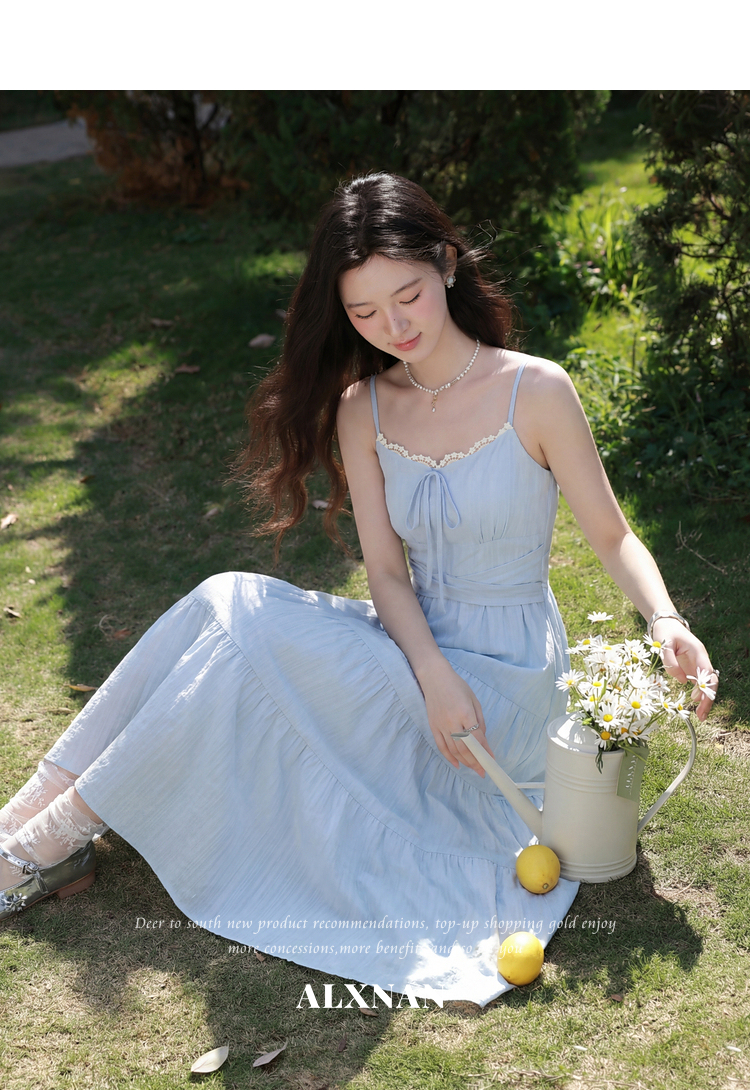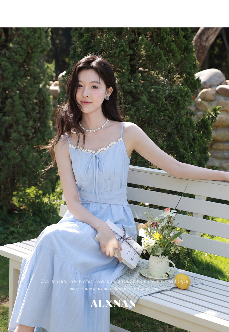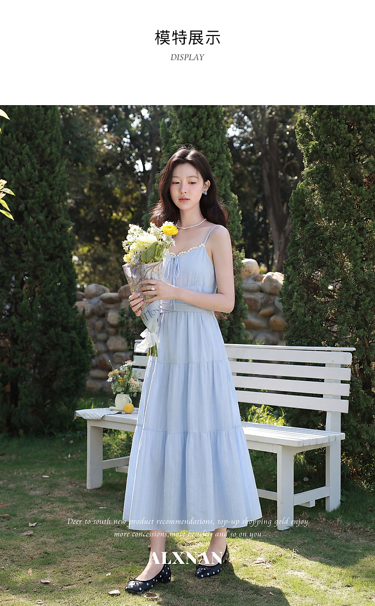 鹿向南【0402/20:00新品前1小时7折限量100件】蓝色吊带连衣裙