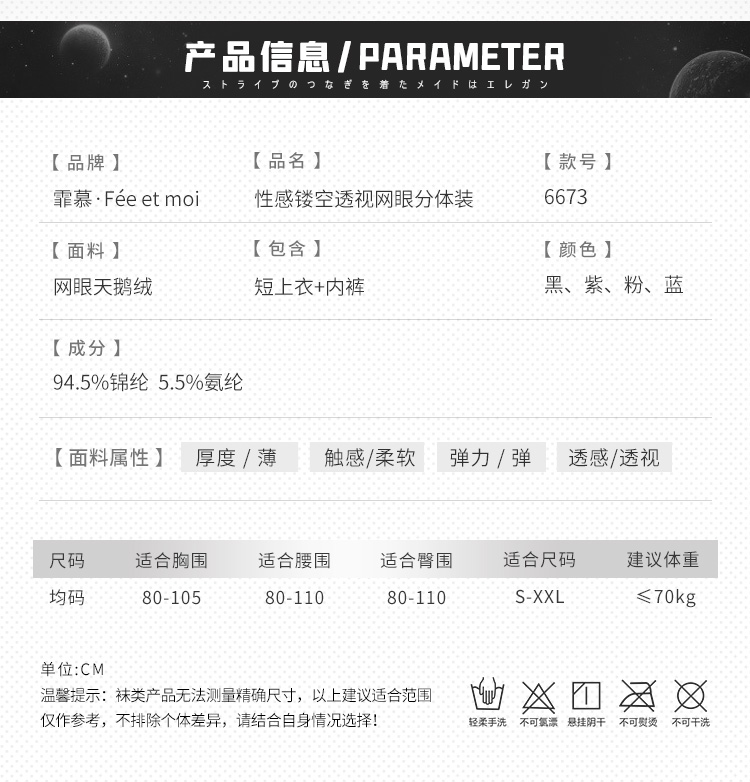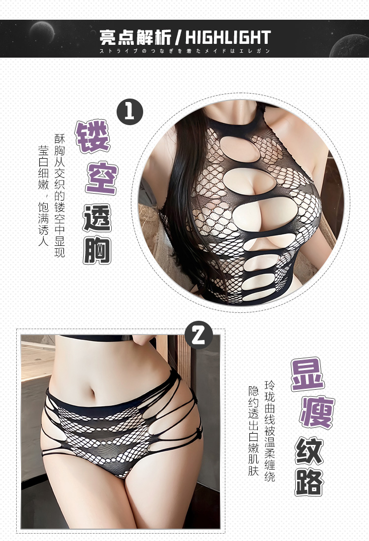 【情趣内衣】霏慕 性感镂空透视网眼分体装6673