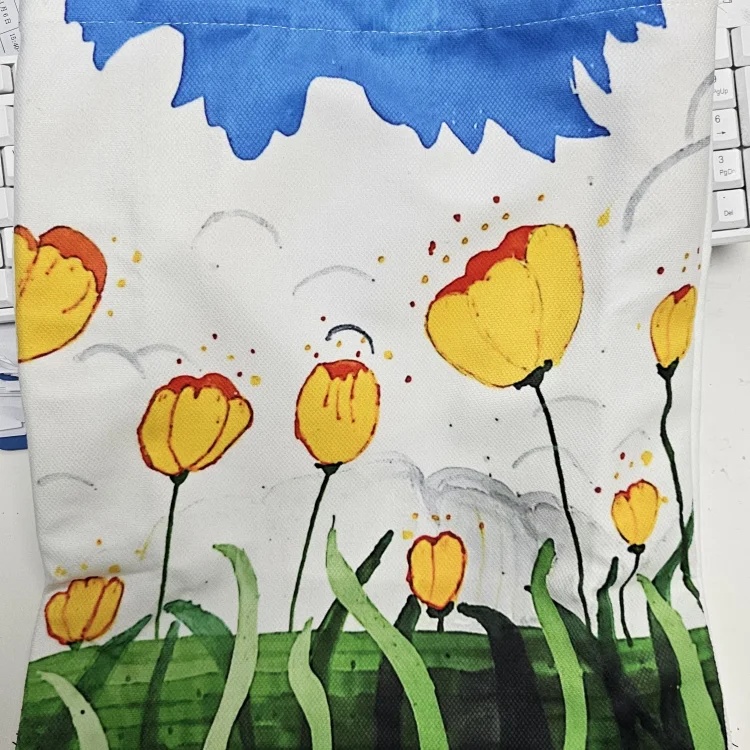星娃工坊现有的作品分为四大系列:画作原创衍生品(帆布袋、明信片、鼠标垫、陶瓷杯等)、 创意手绘作品(画作、贺卡等)、手艺作品(花艺等)