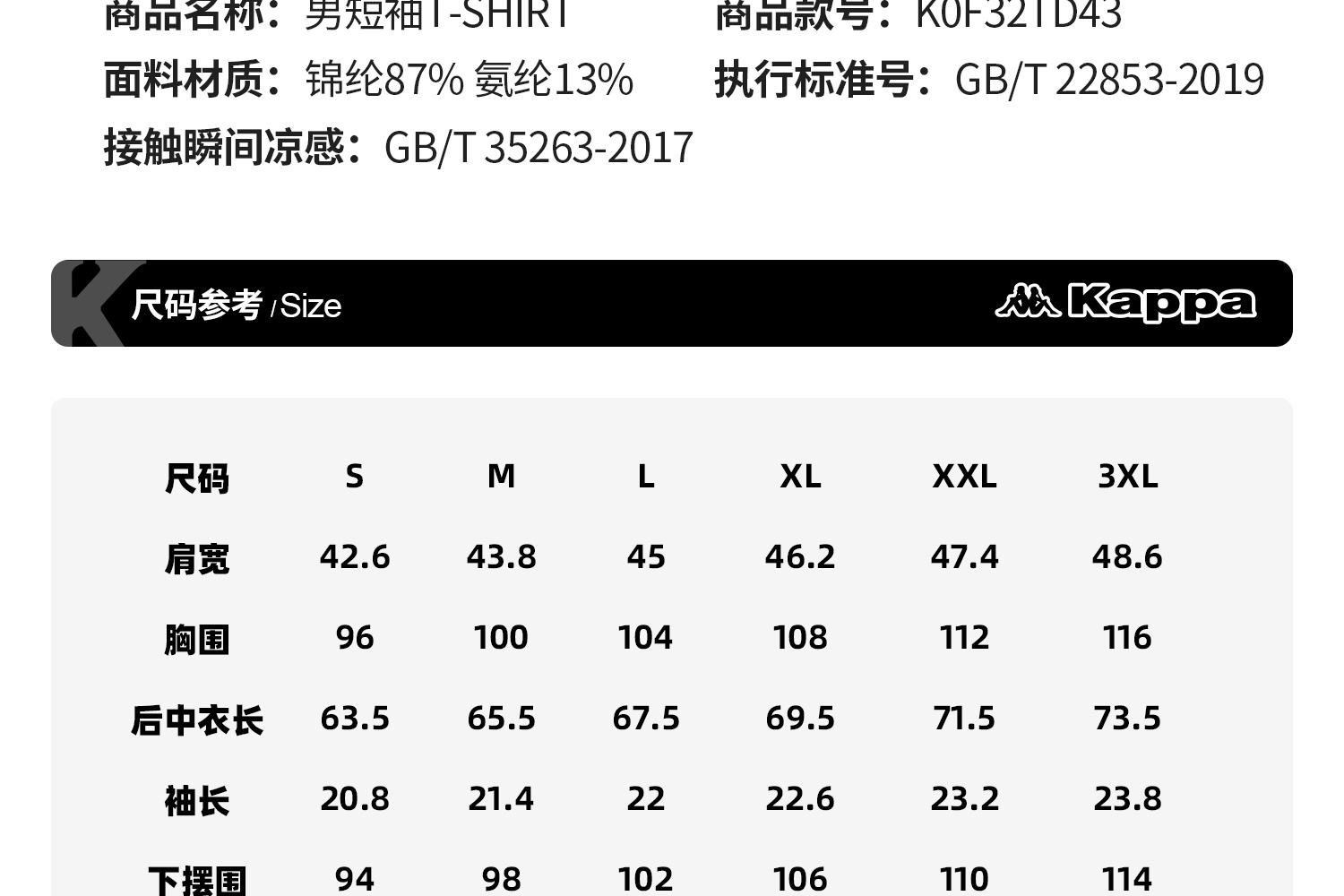 Kappa卡帕背靠背运动t恤男2025夏季新款凉感休闲半袖透气短袖上衣K0F32TD43