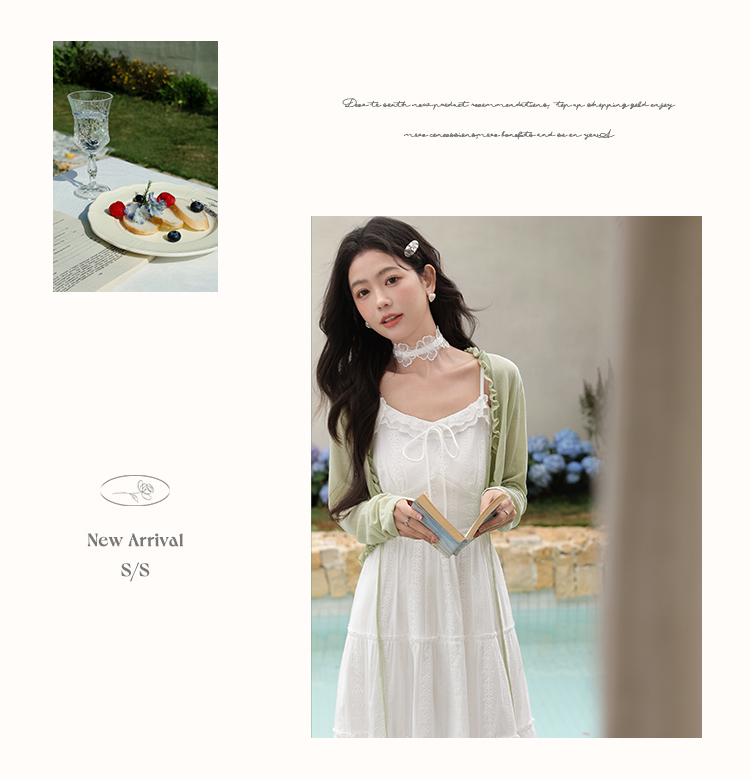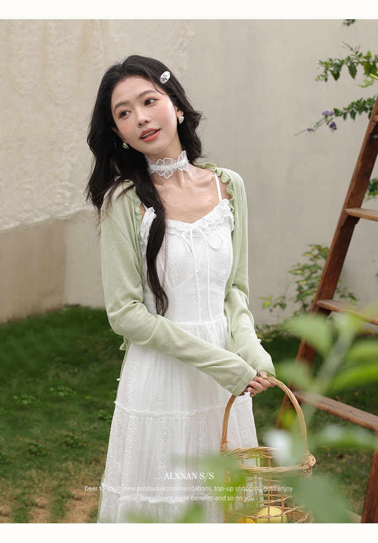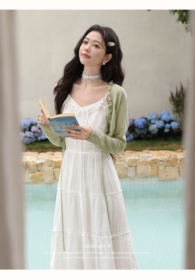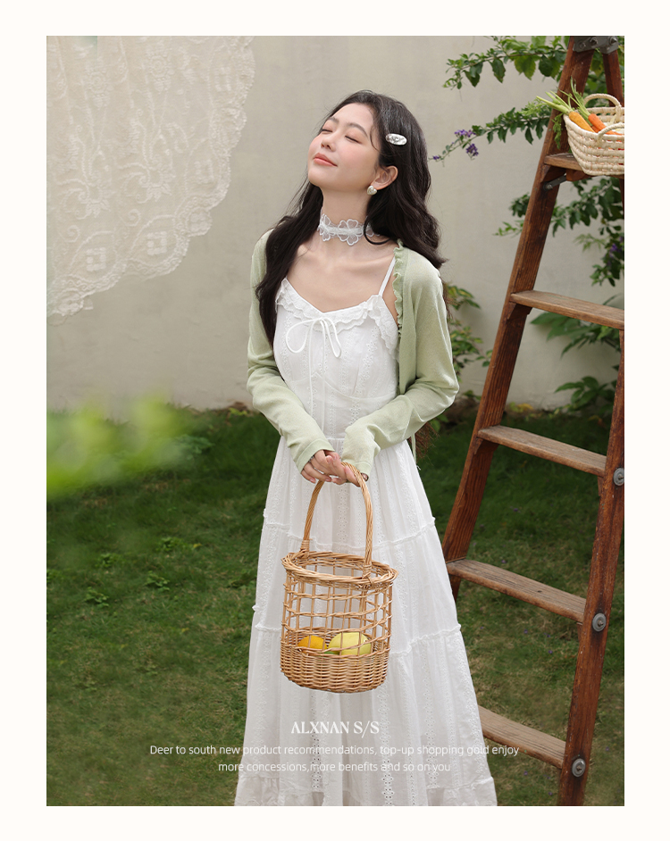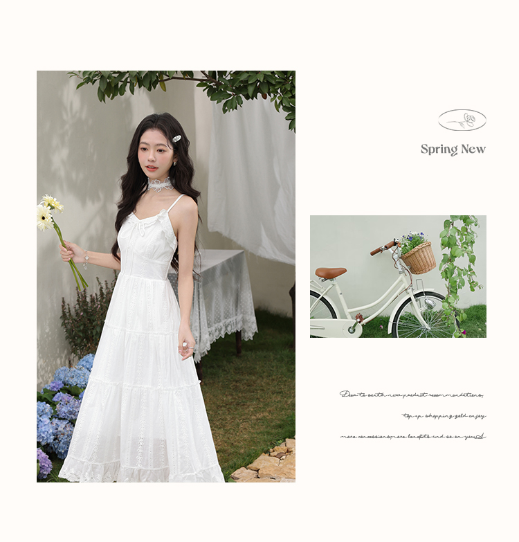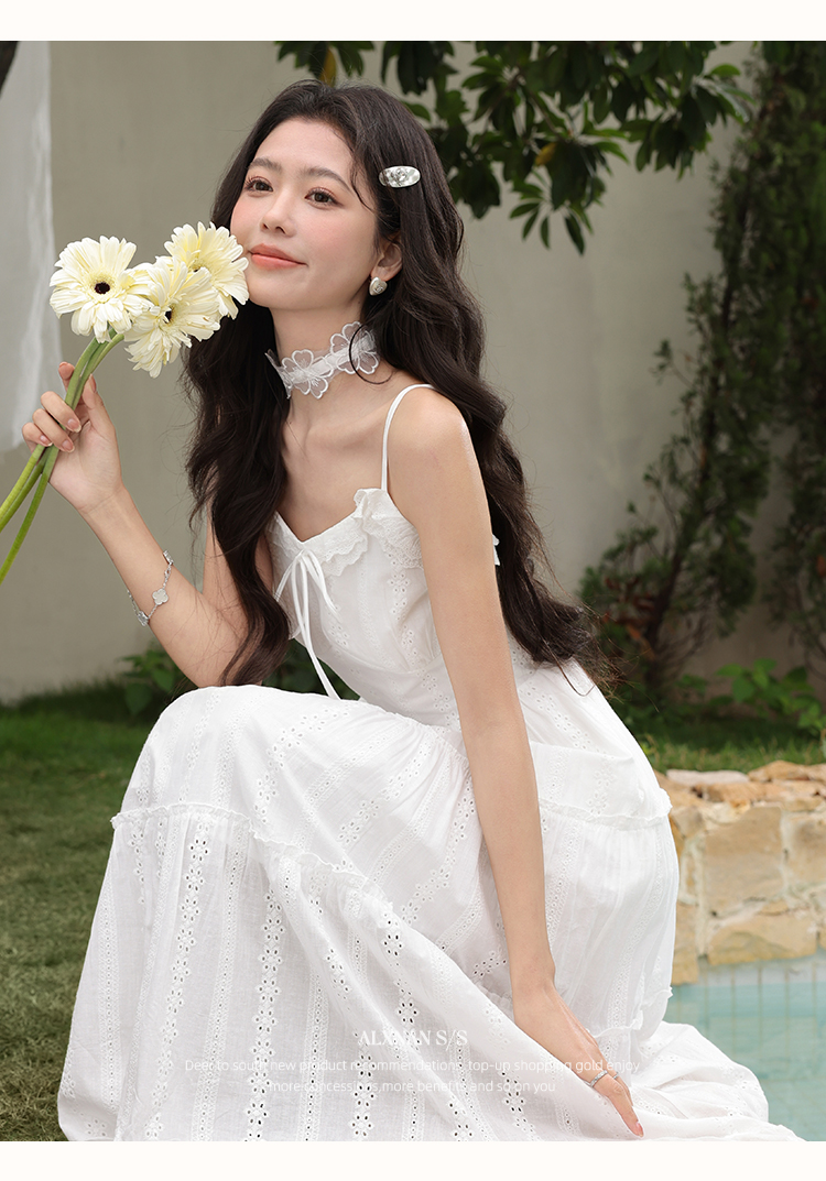 鹿向南「雪絮叠香」白色温柔镂空蕾丝吊带长裙女夏新款优雅连衣裙
