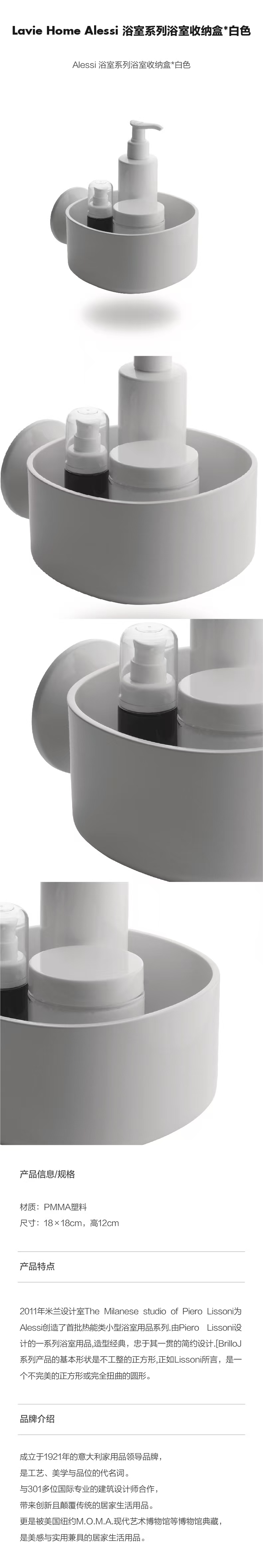 廊湾 Lavie Home Alessi 浴室系列吸式收纳盒*白色