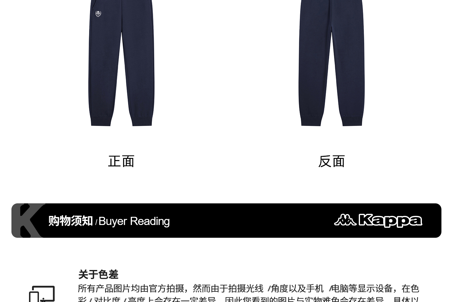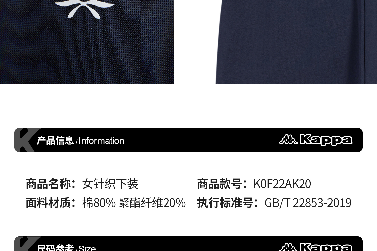 Kappa卡帕背靠背新款复古运动长裤女款松紧腰休闲裤子针织小脚裤K0F22AK20
