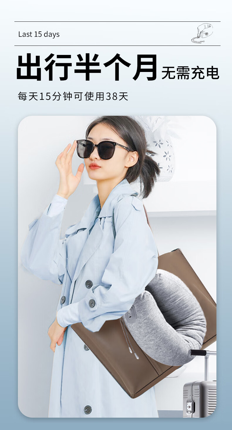 和正 颈椎按摩器颈部按摩仪记忆棉枕慢回便携U型枕肩颈揉捏 HZ-RMZ-1 商品图5