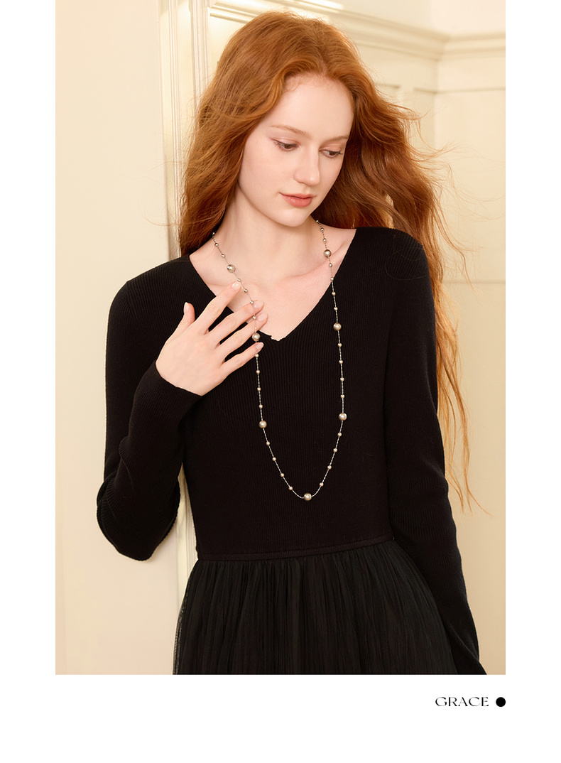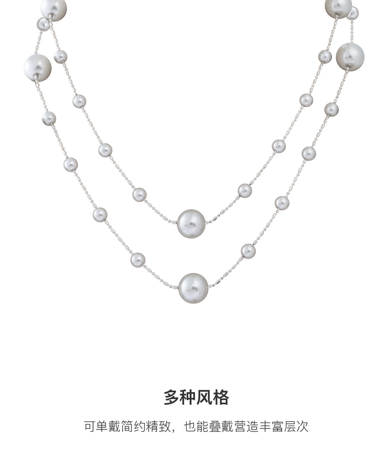【满天星】三彩2025新款轻奢合成珍珠项链双层叠戴优雅复古毛衣链
