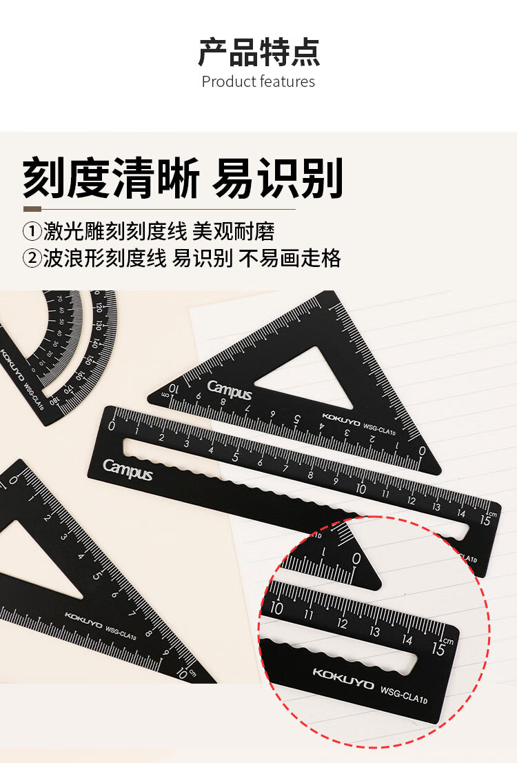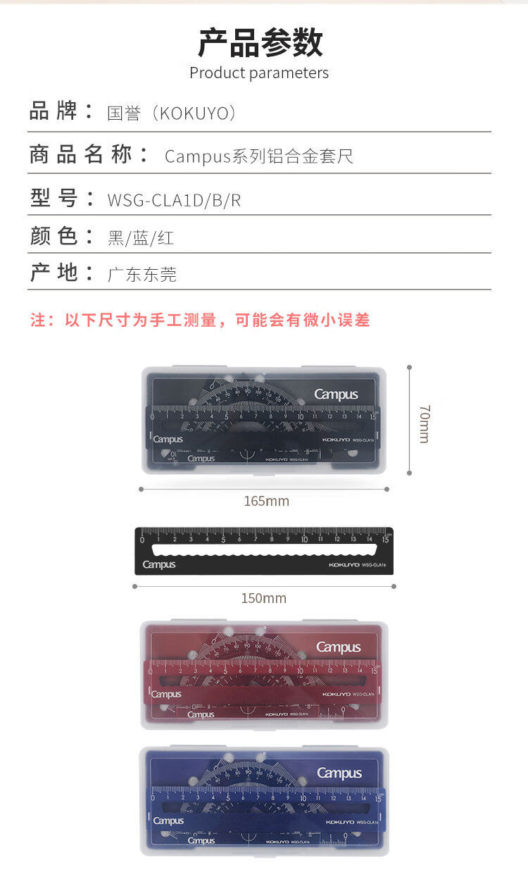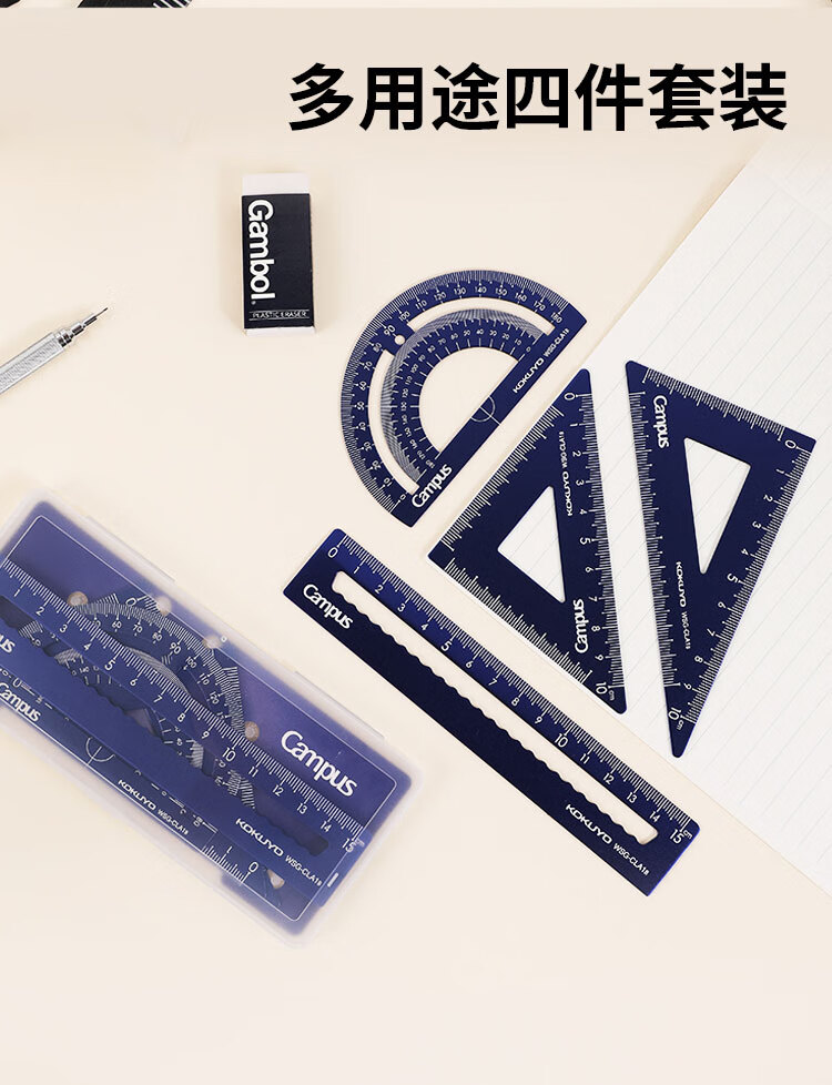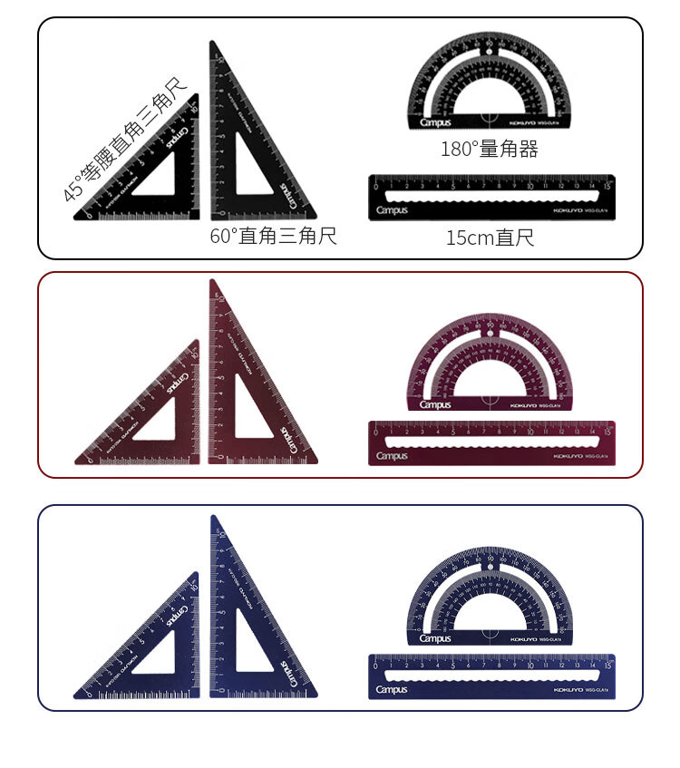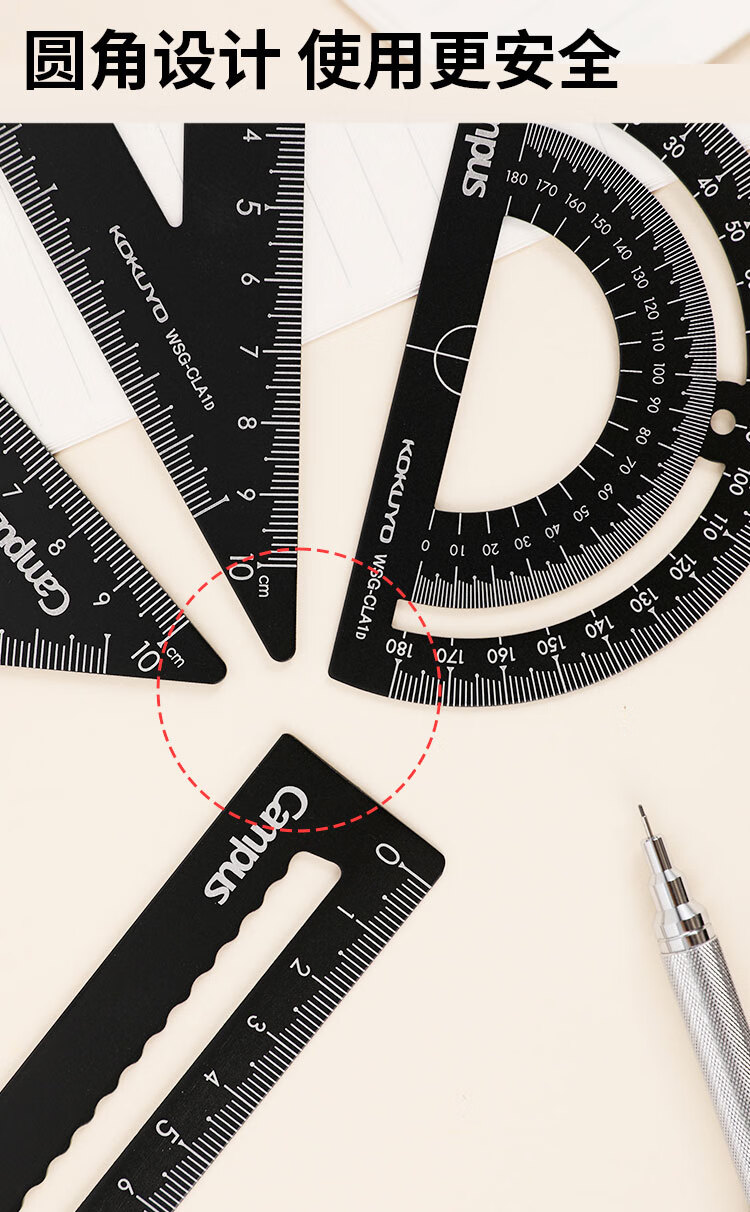 国誉(KOKUYO)Campus学生绘图工具尺子套装(直尺三角尺量角器) 铝合金套尺