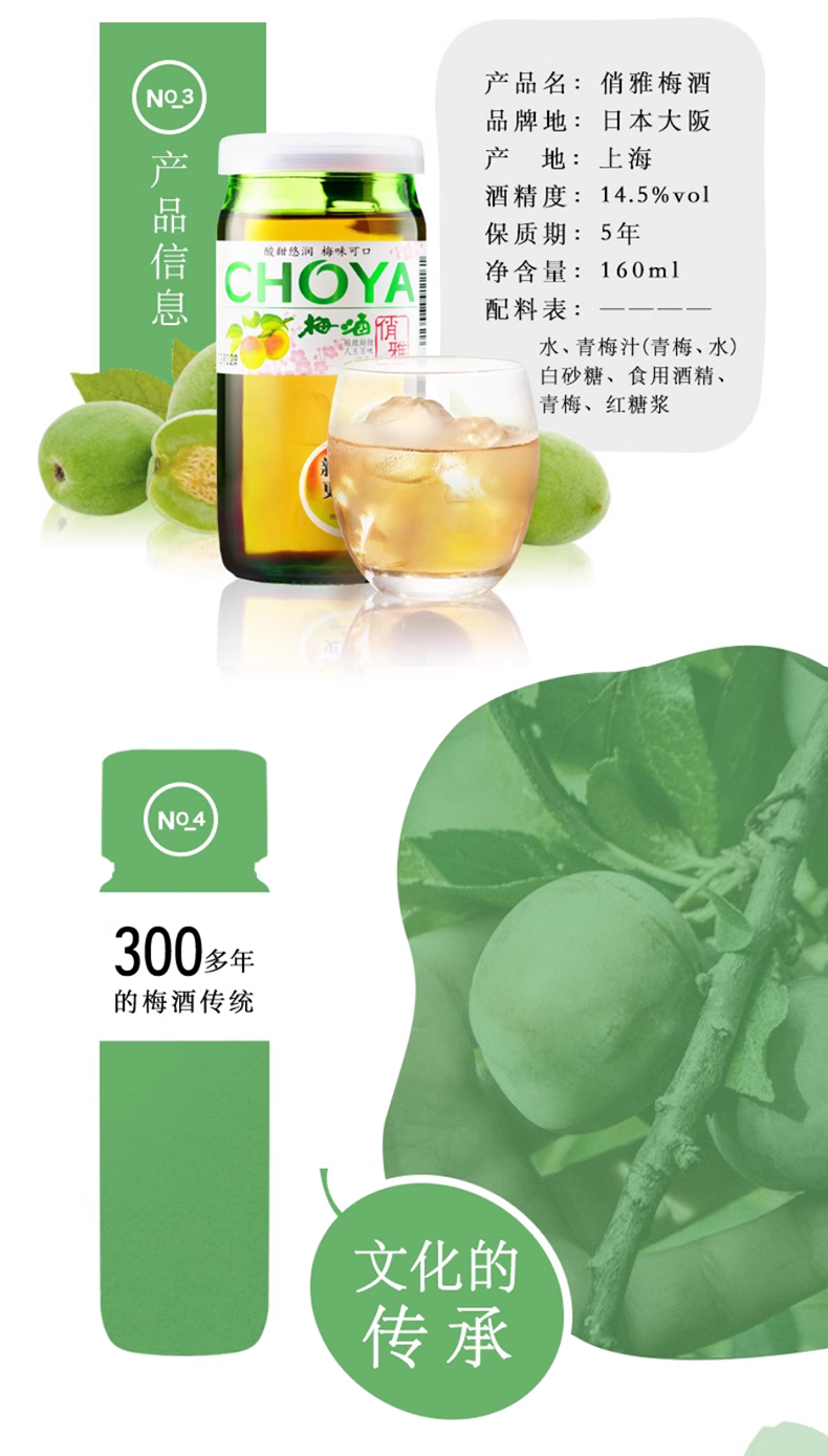 CHOYA/俏雅梅酒梅子酒青梅果味酒160mlx4瓶_dr