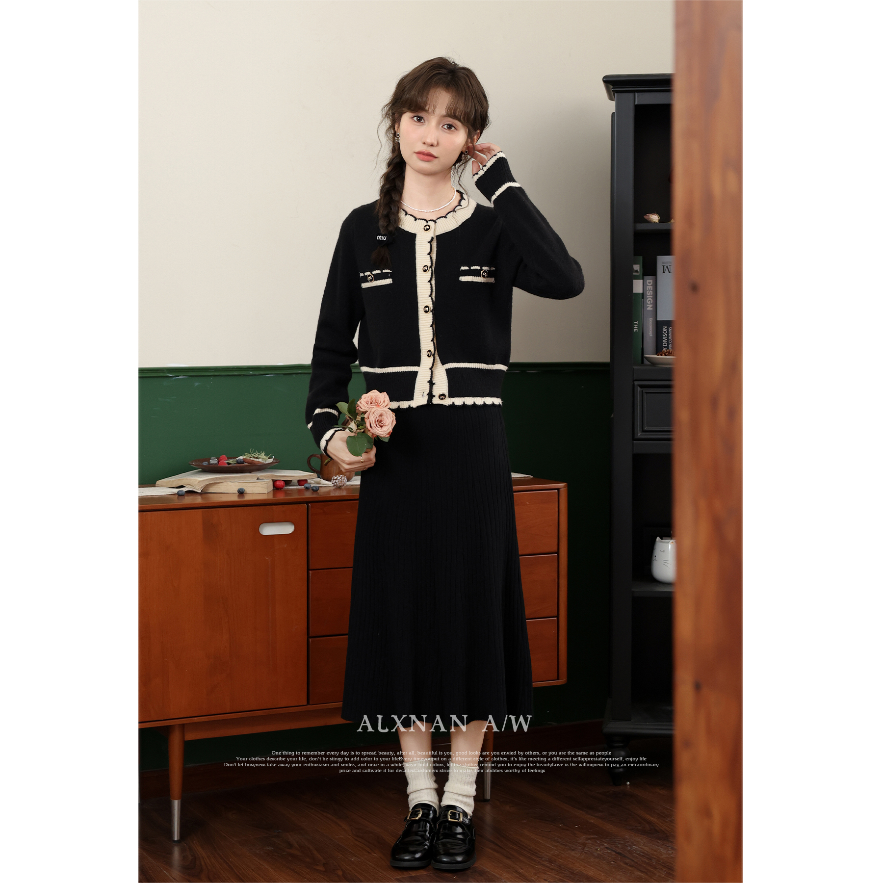鹿向南《榛果黑巧》法式气质毛衣半身裙LXN329113BQ