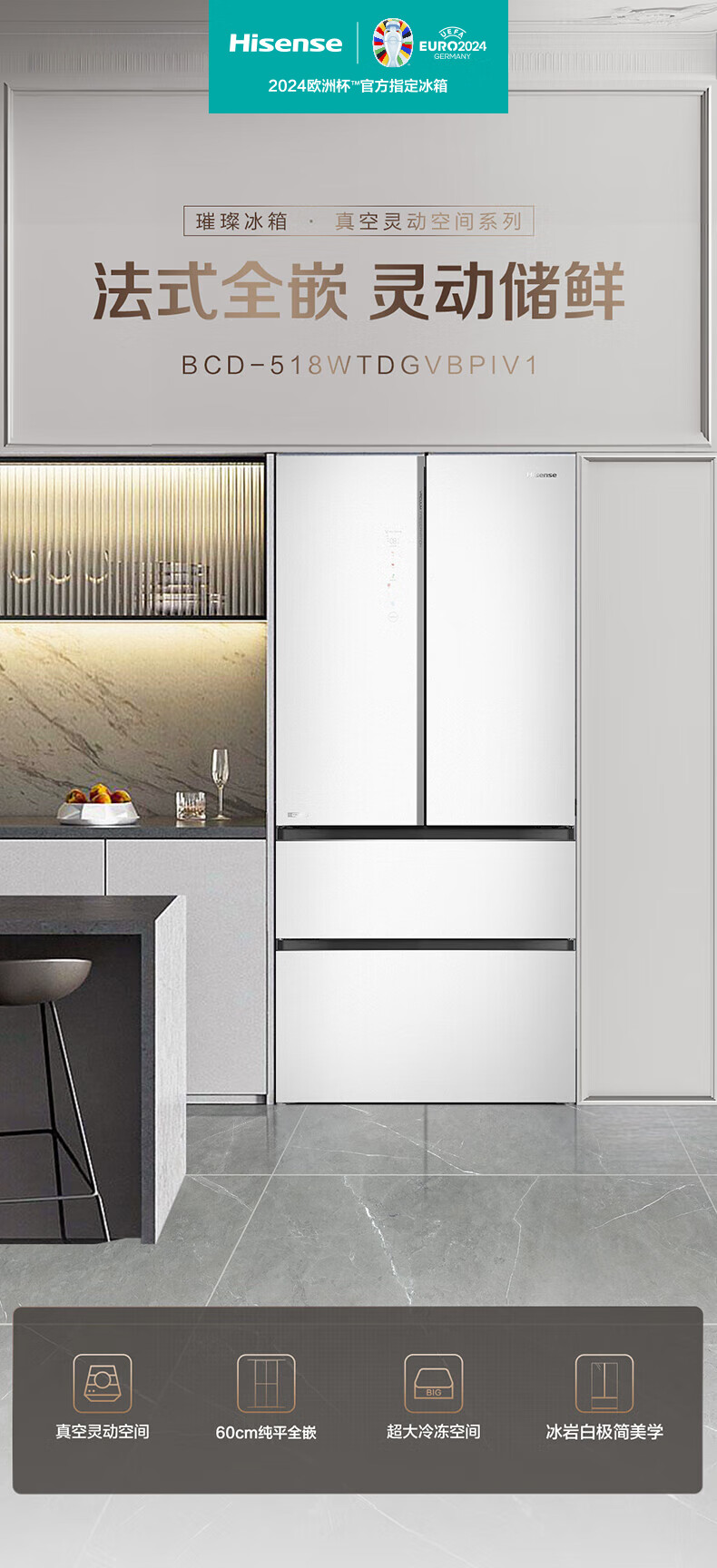 【限天津区域】海信/冰箱/BCD-518WTDGVBPIV1冰岩白