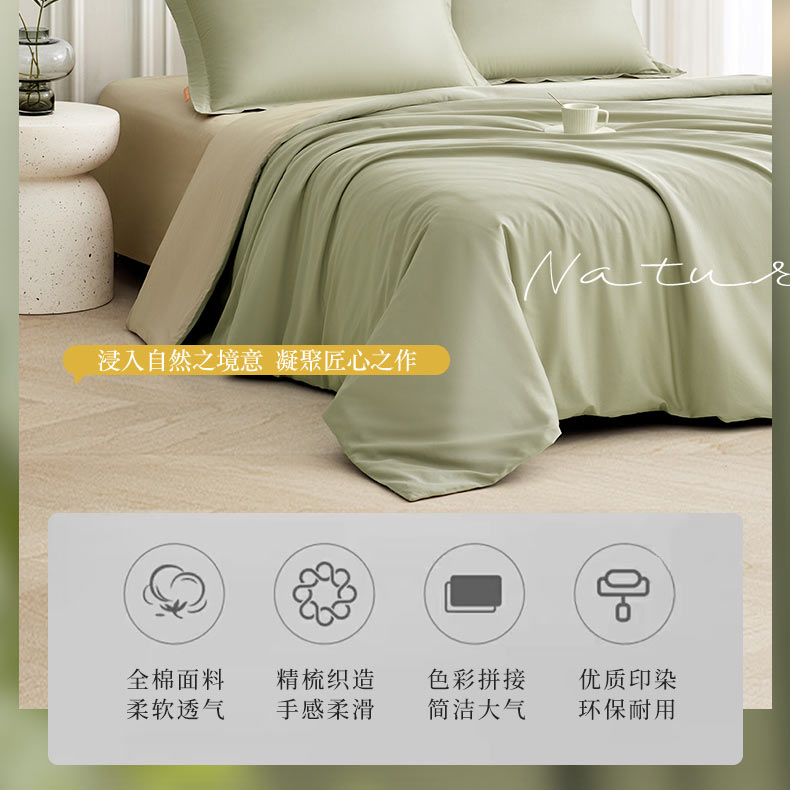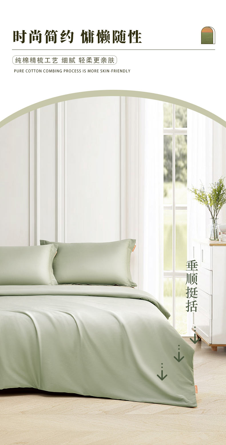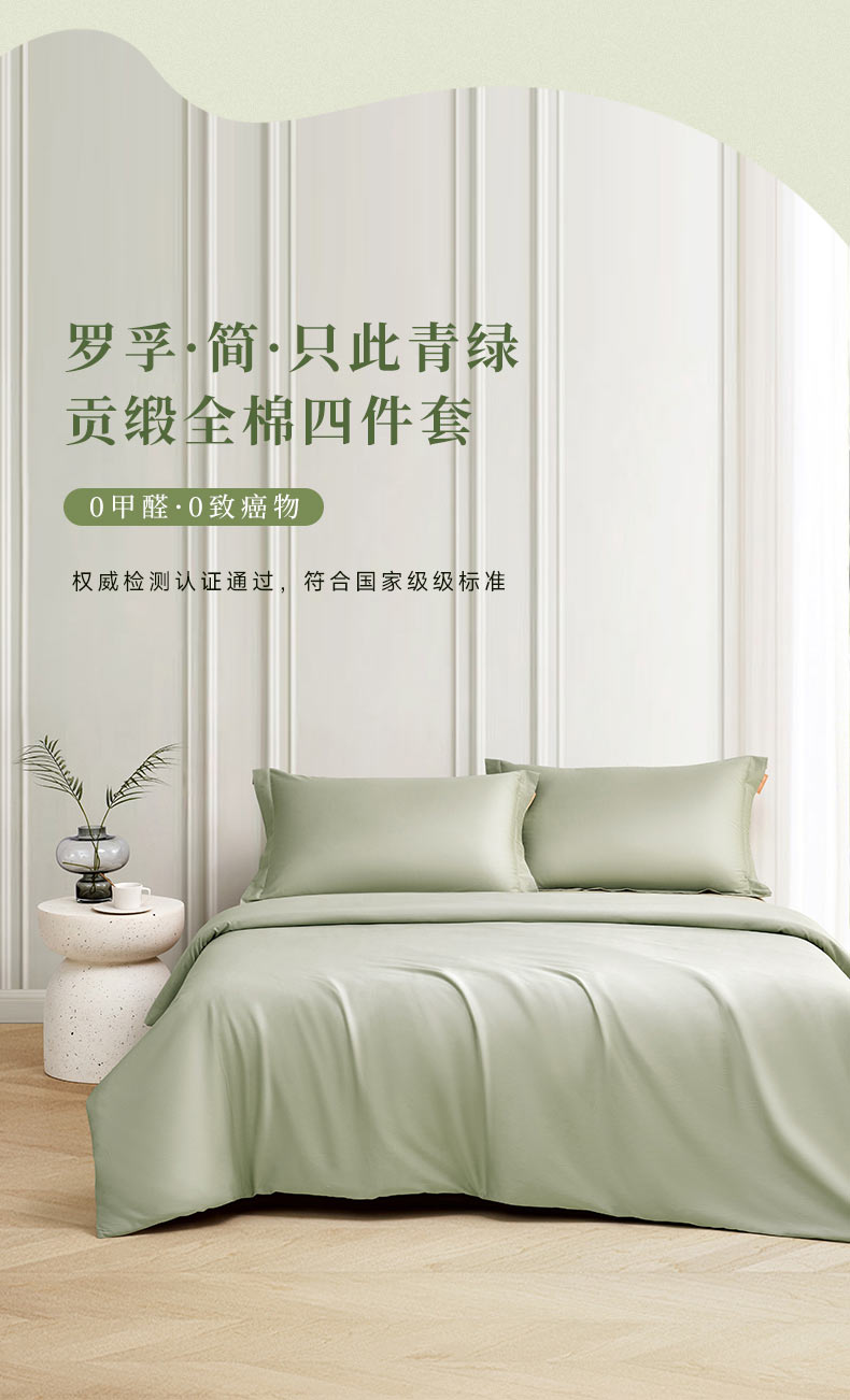罗孚 简•只此青绿全棉贡缎四件套 60S 青绿色 200×230cm