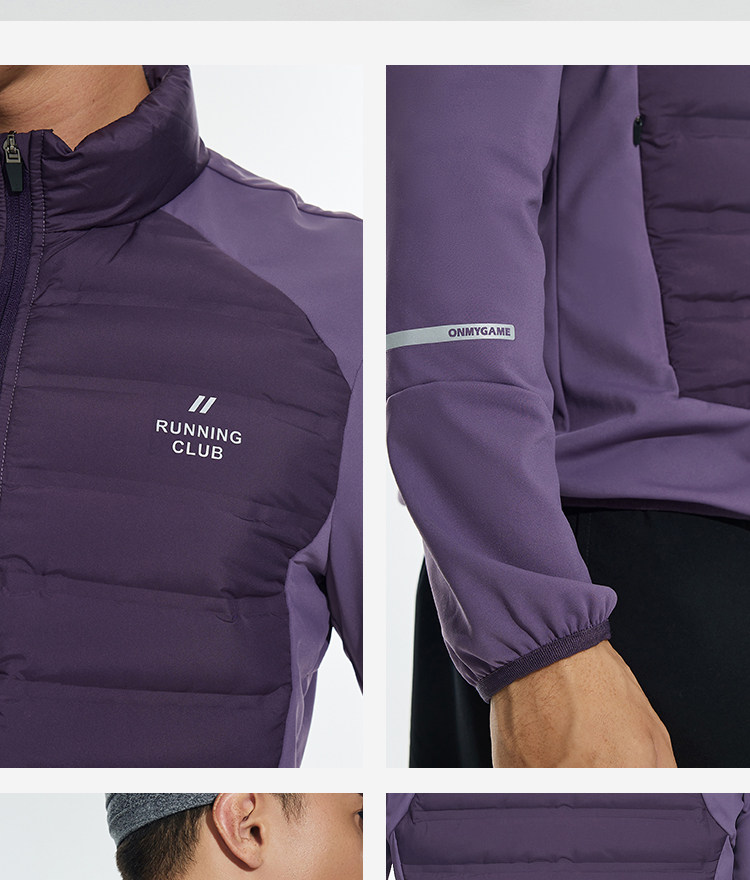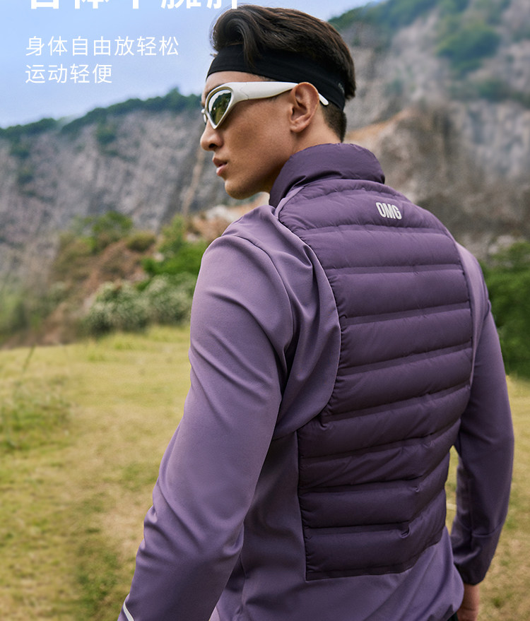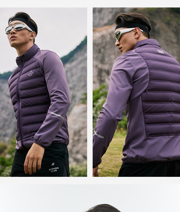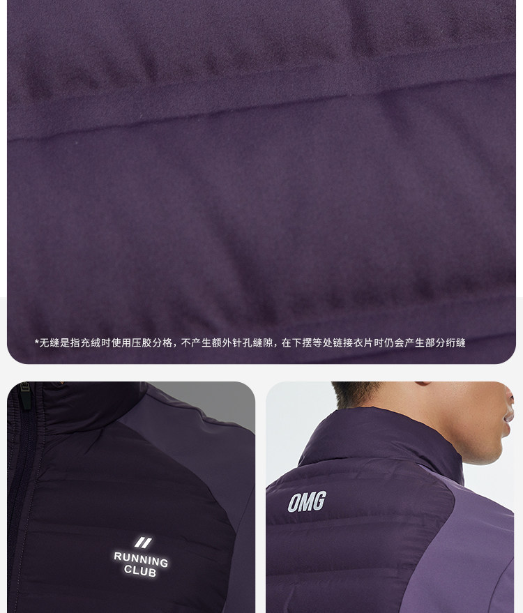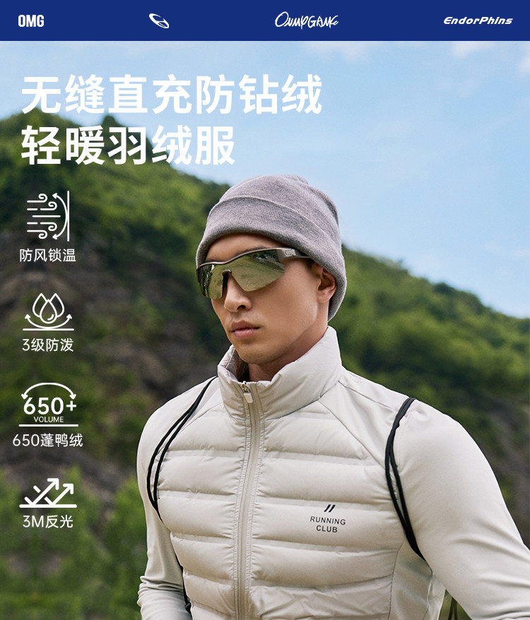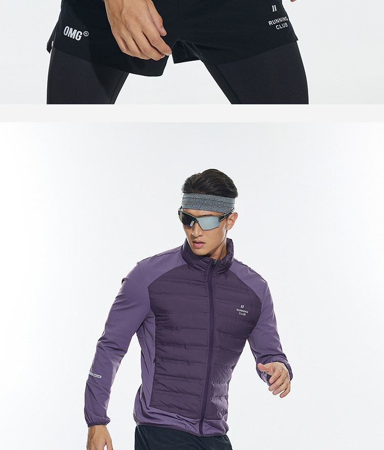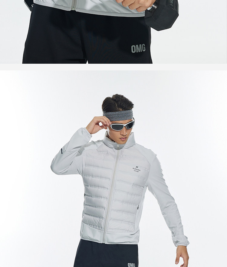 OMG运动 【轻量运动羽绒】跑步轻羽绒服男透气弹力拼接袖羽绒衣