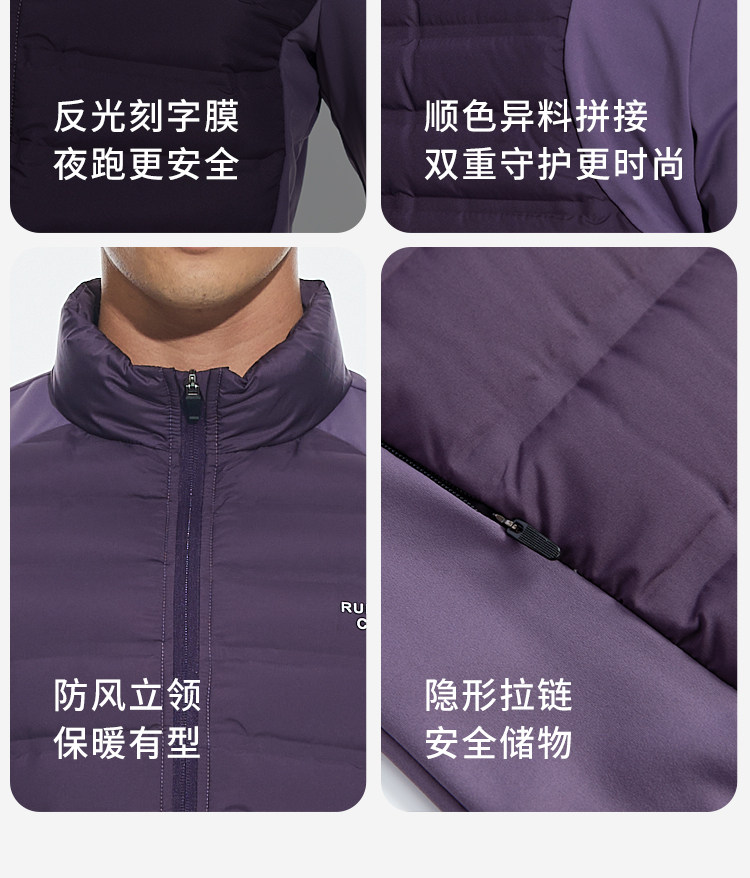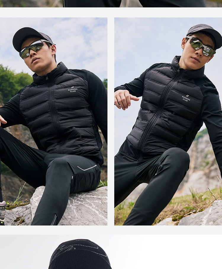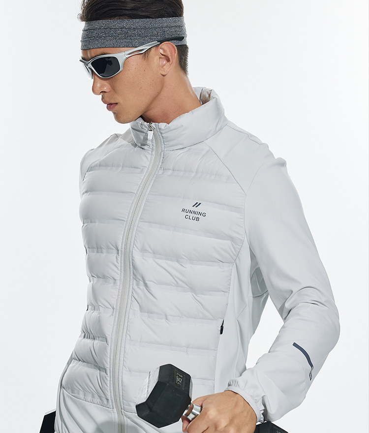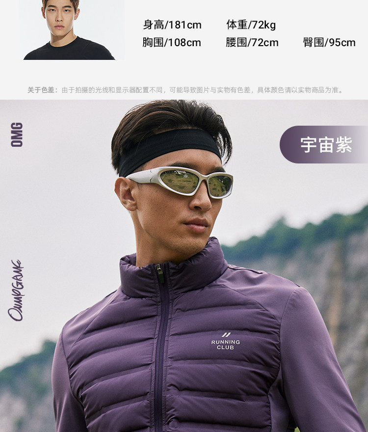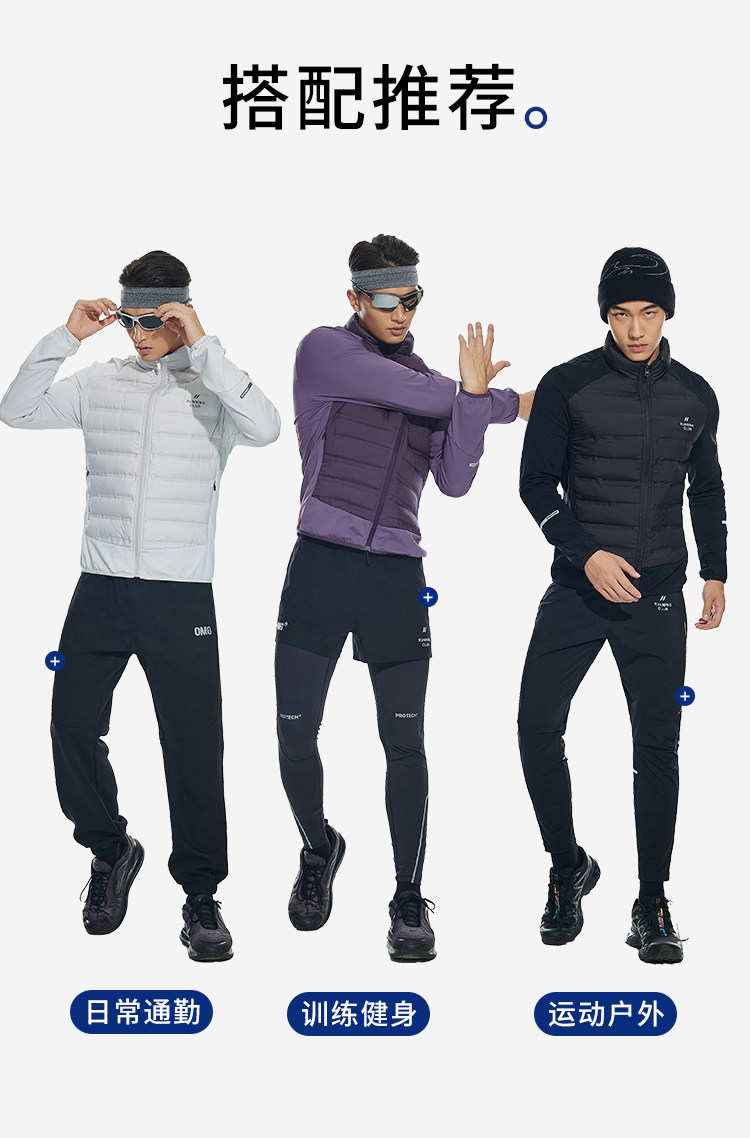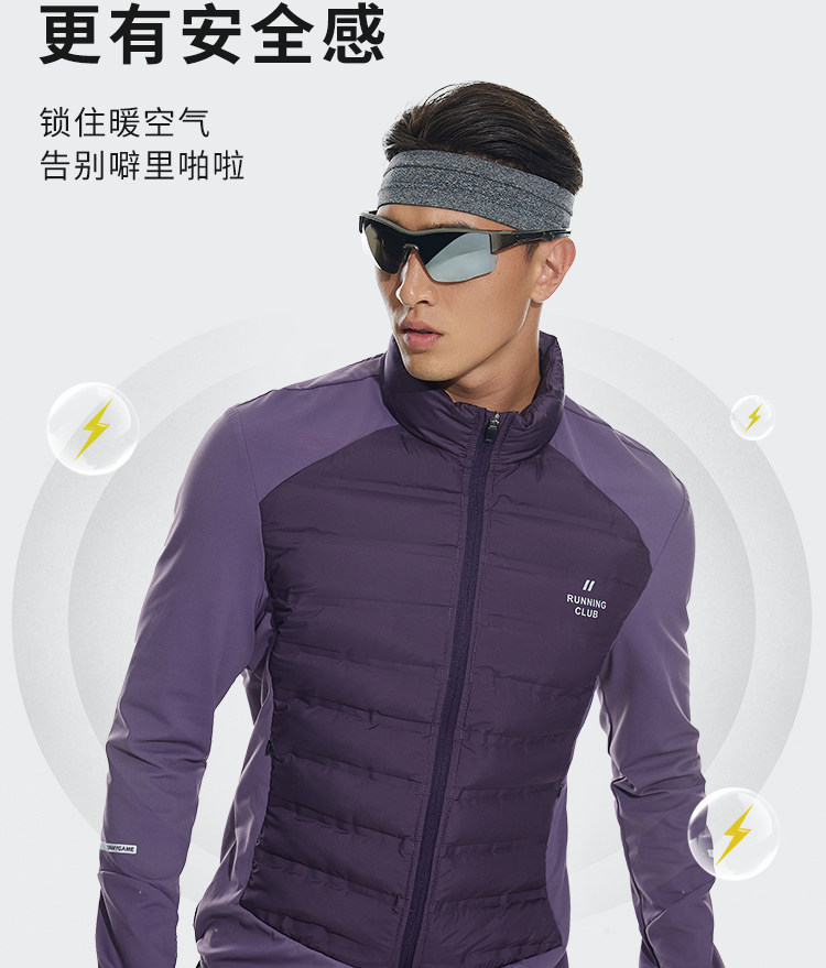 OMG运动 【轻量运动羽绒】跑步轻羽绒服男透气弹力拼接袖羽绒衣