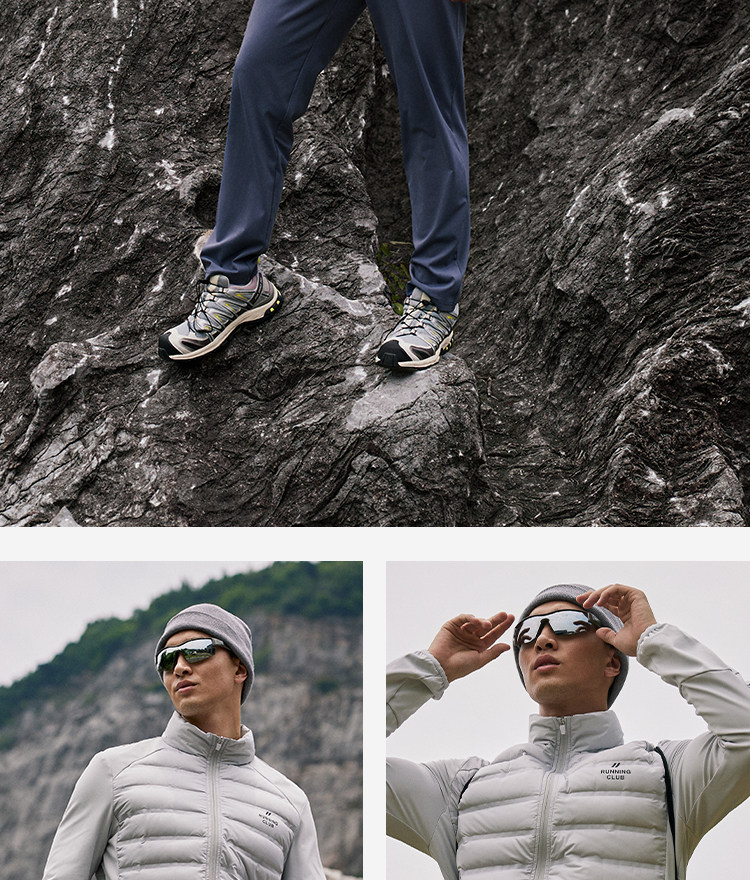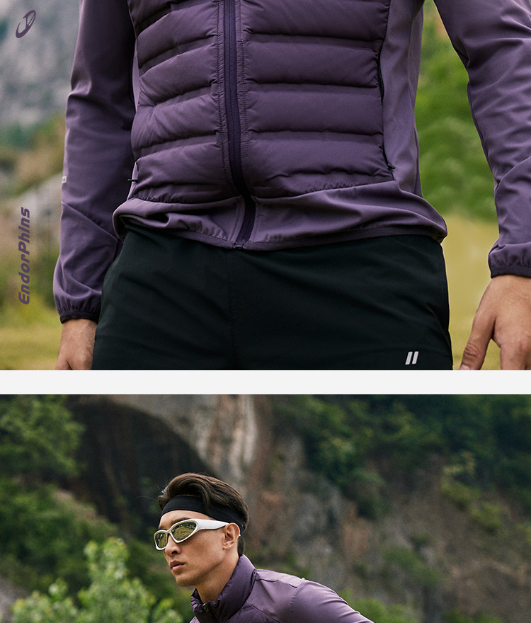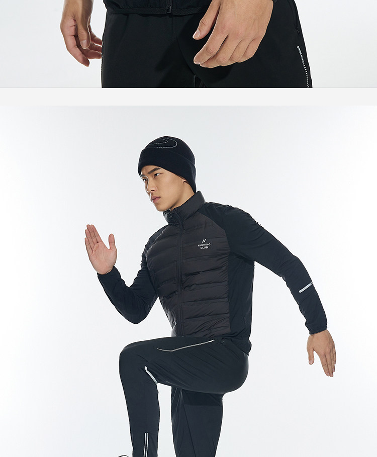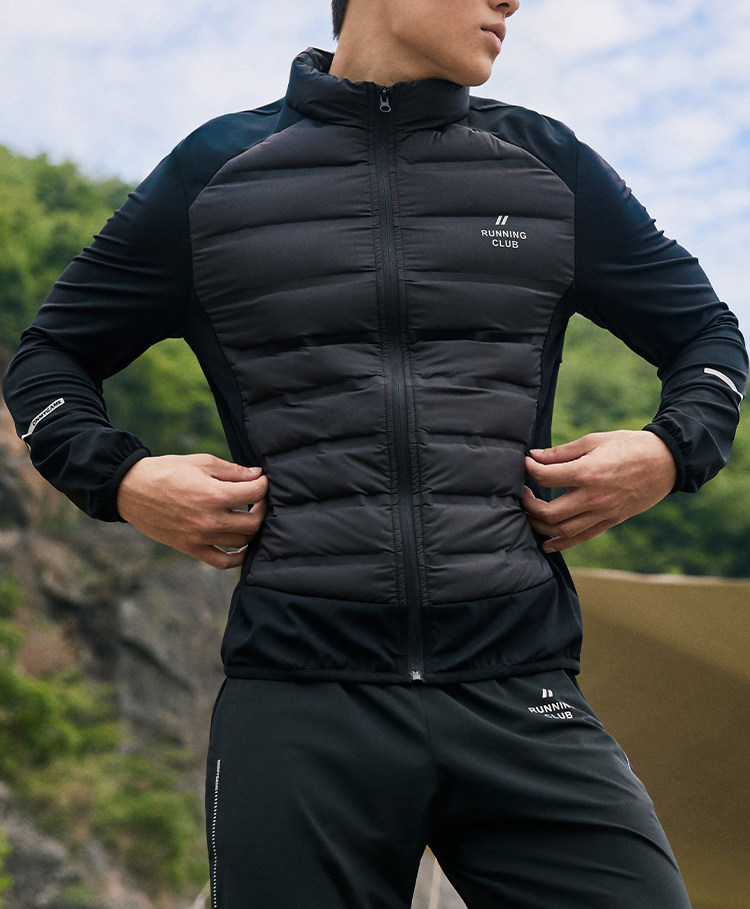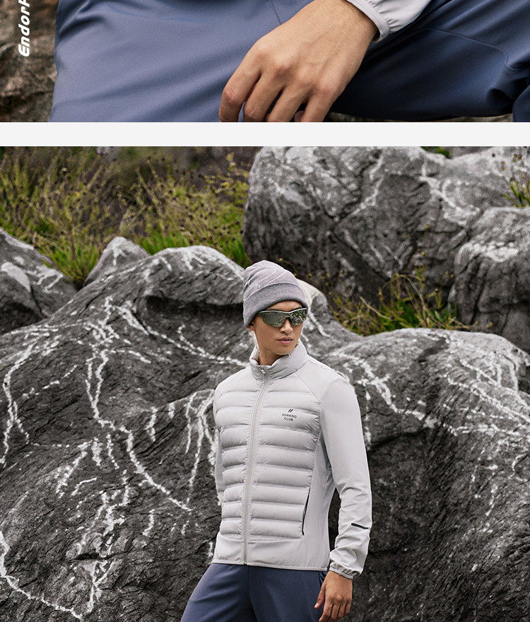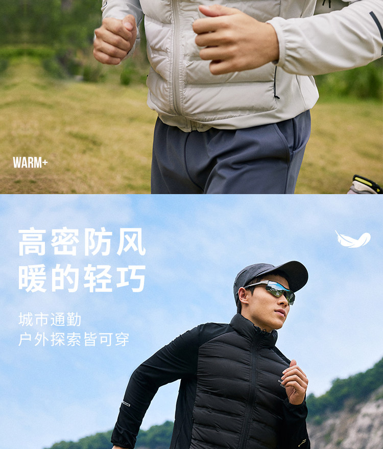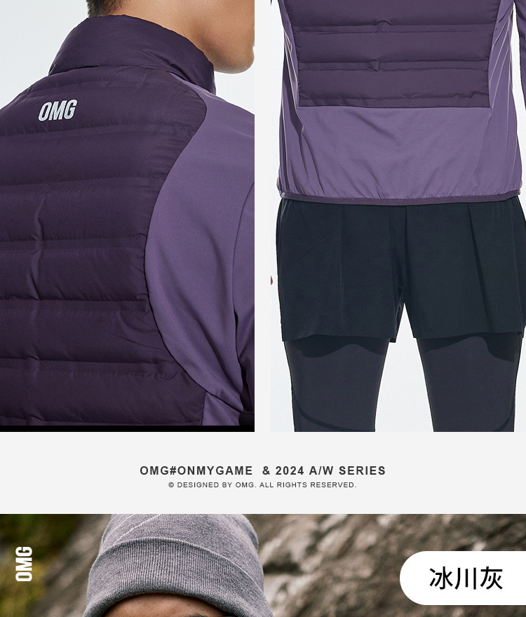 OMG运动 【轻量运动羽绒】跑步轻羽绒服男透气弹力拼接袖羽绒衣