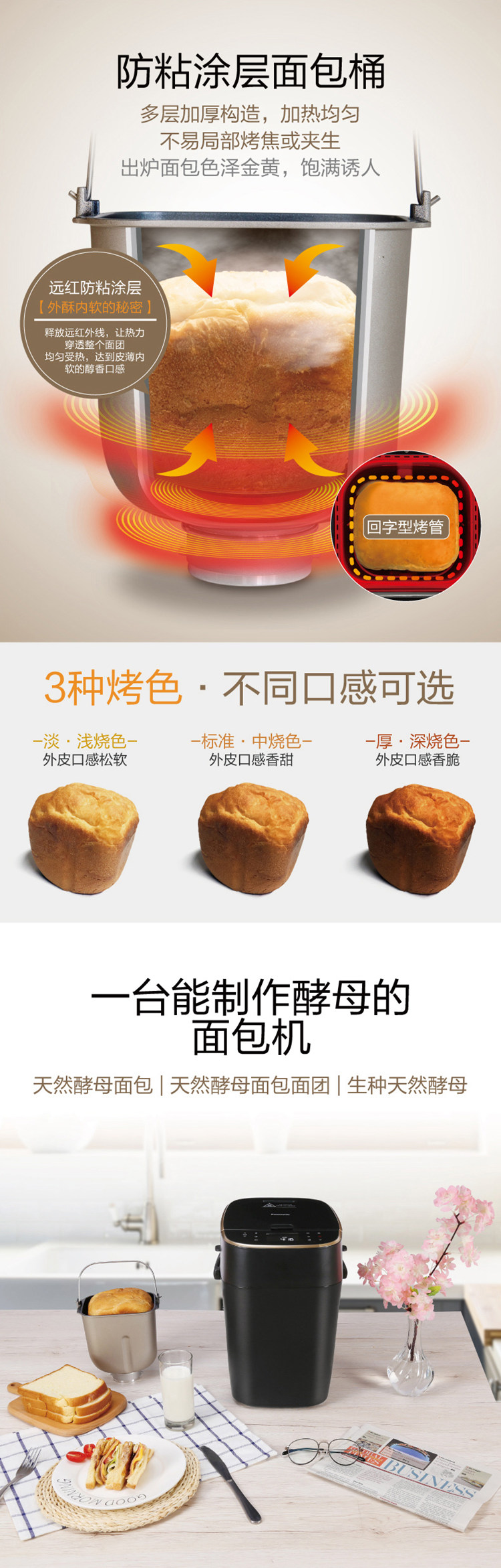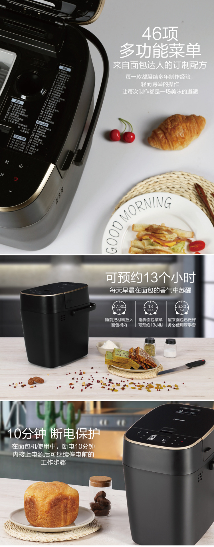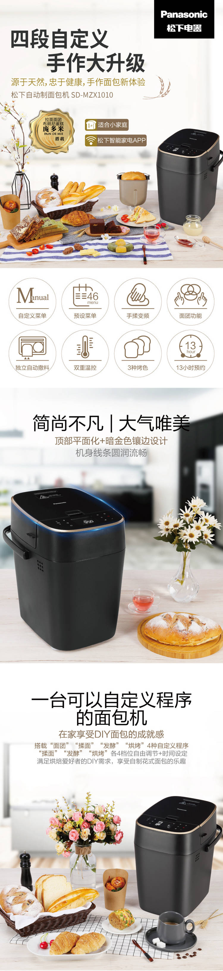 松下(Panasonic)面包机 家用 烤面包机 自定义揉面 全自动变频 46个菜单智能操作500g SD-MZX1010