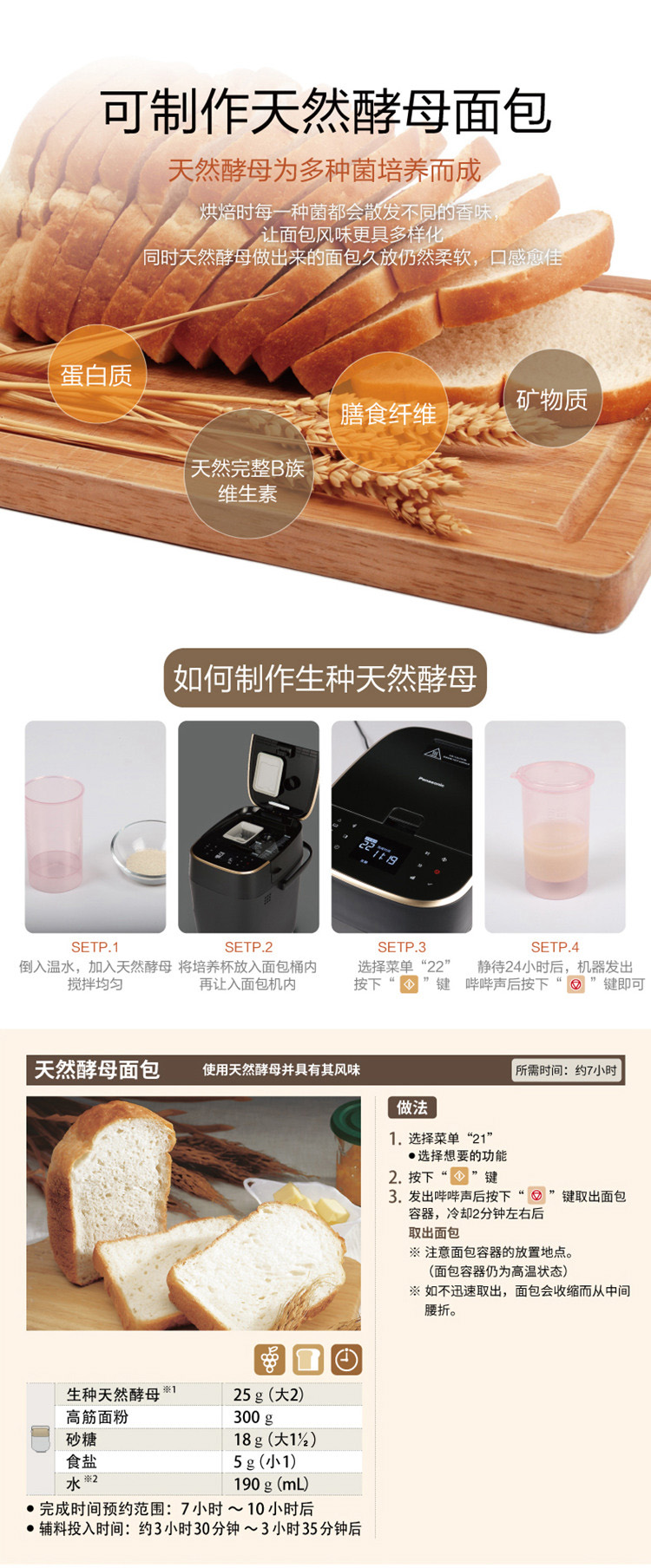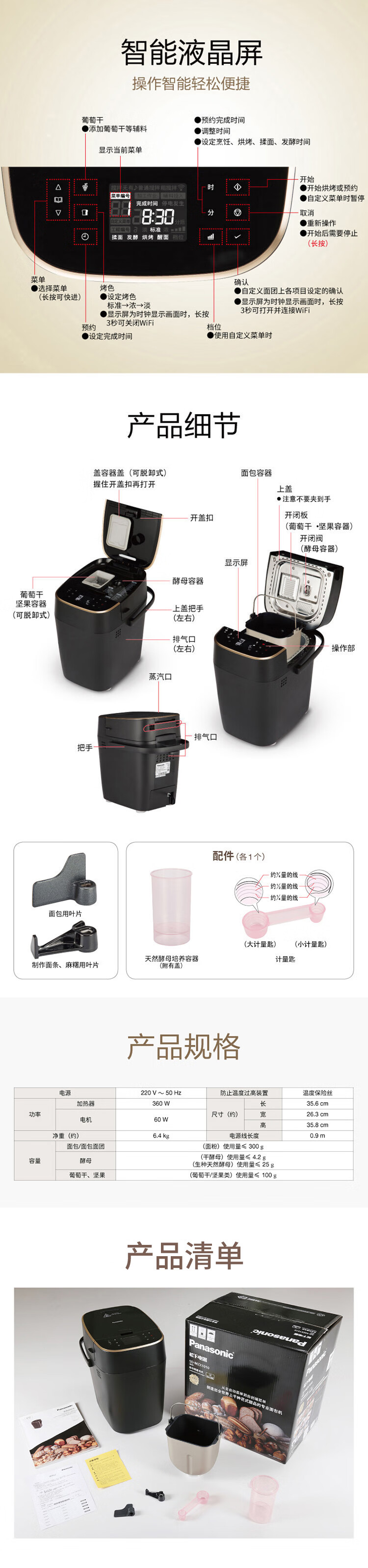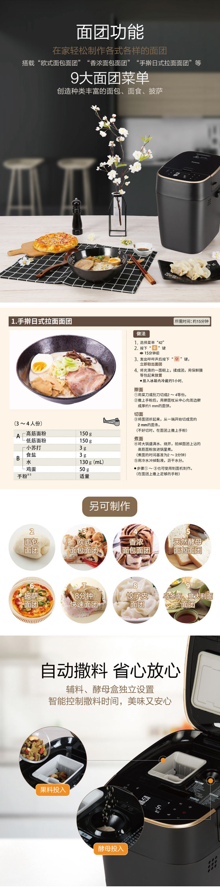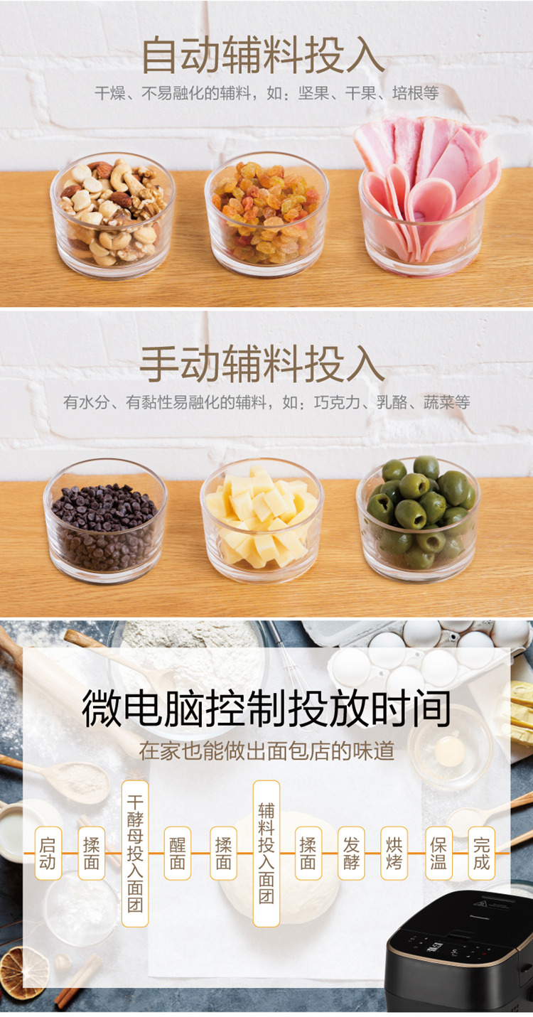 松下(Panasonic)面包机 家用 烤面包机 自定义揉面 全自动变频 46个菜单智能操作500g SD-MZX1010