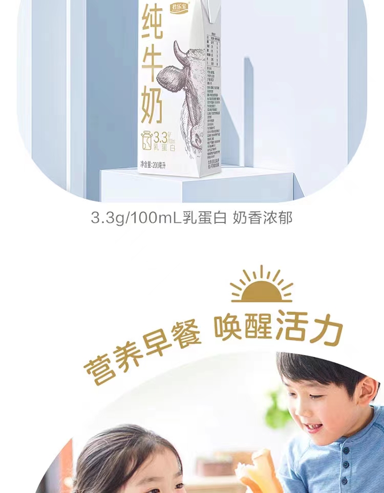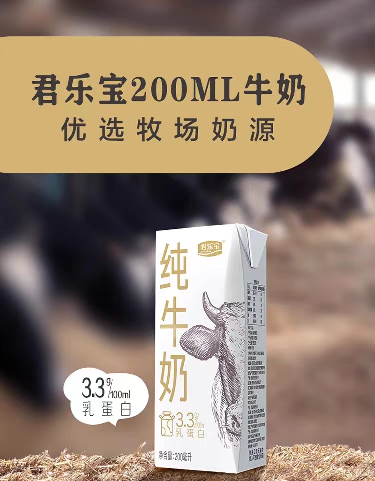 君乐宝 纯牛奶 3.3优质乳蛋白 浓郁奶香 营养早餐奶 200ml*12