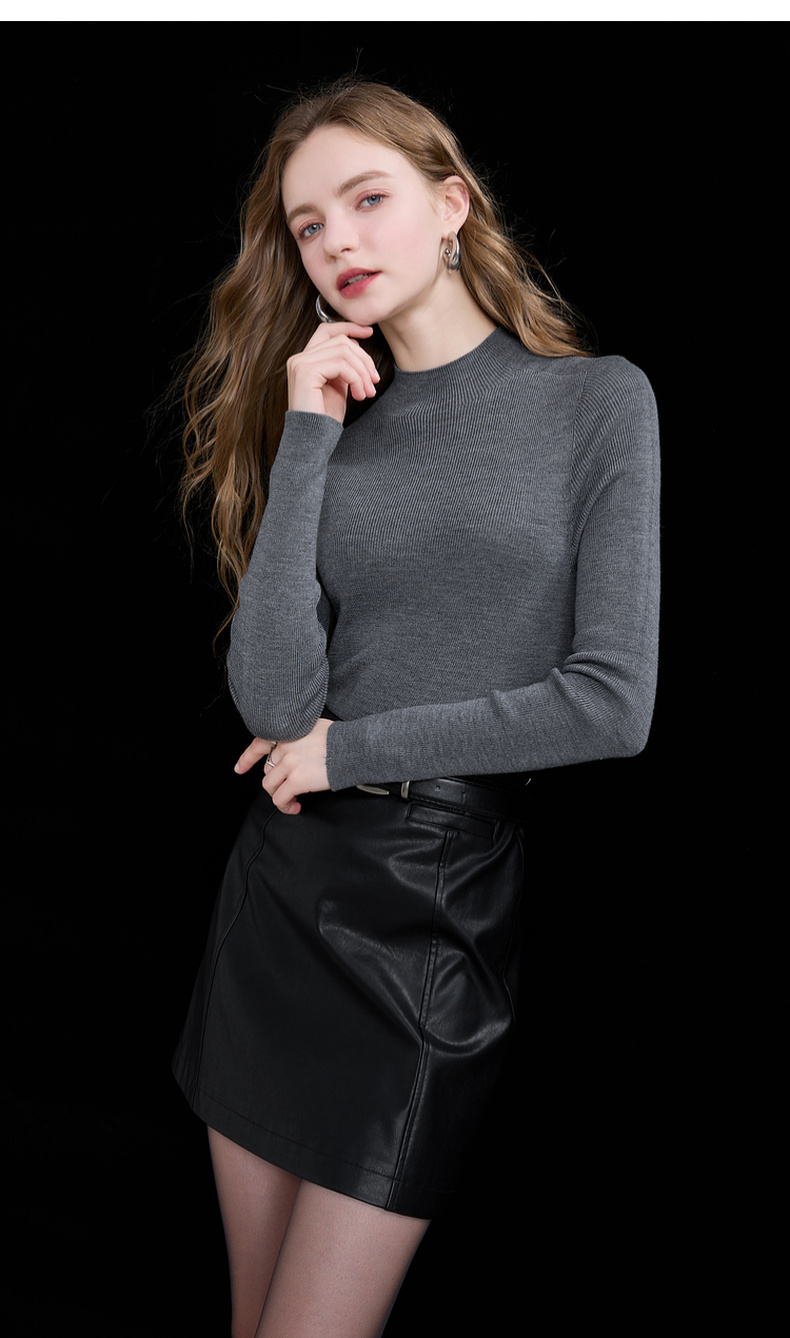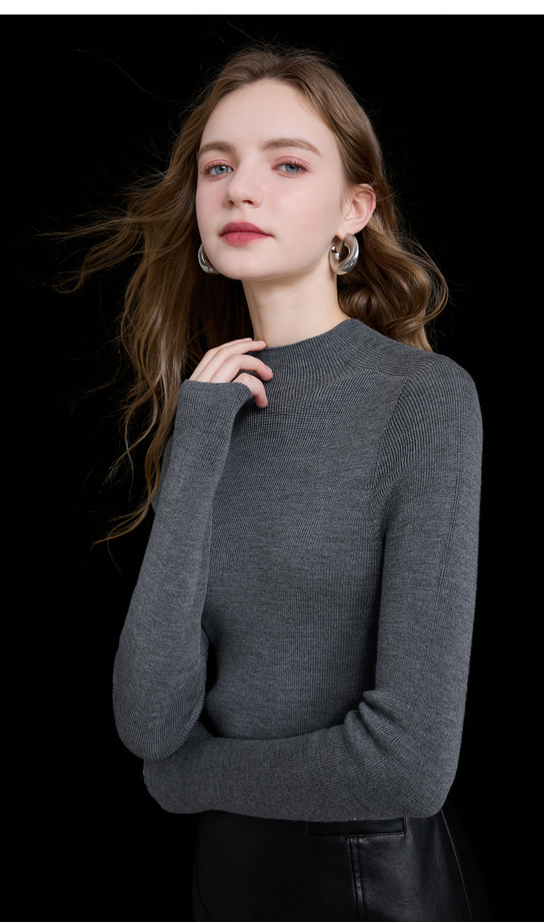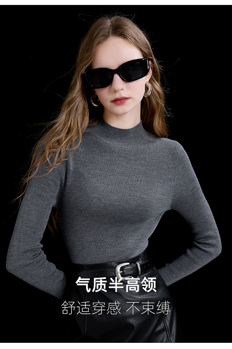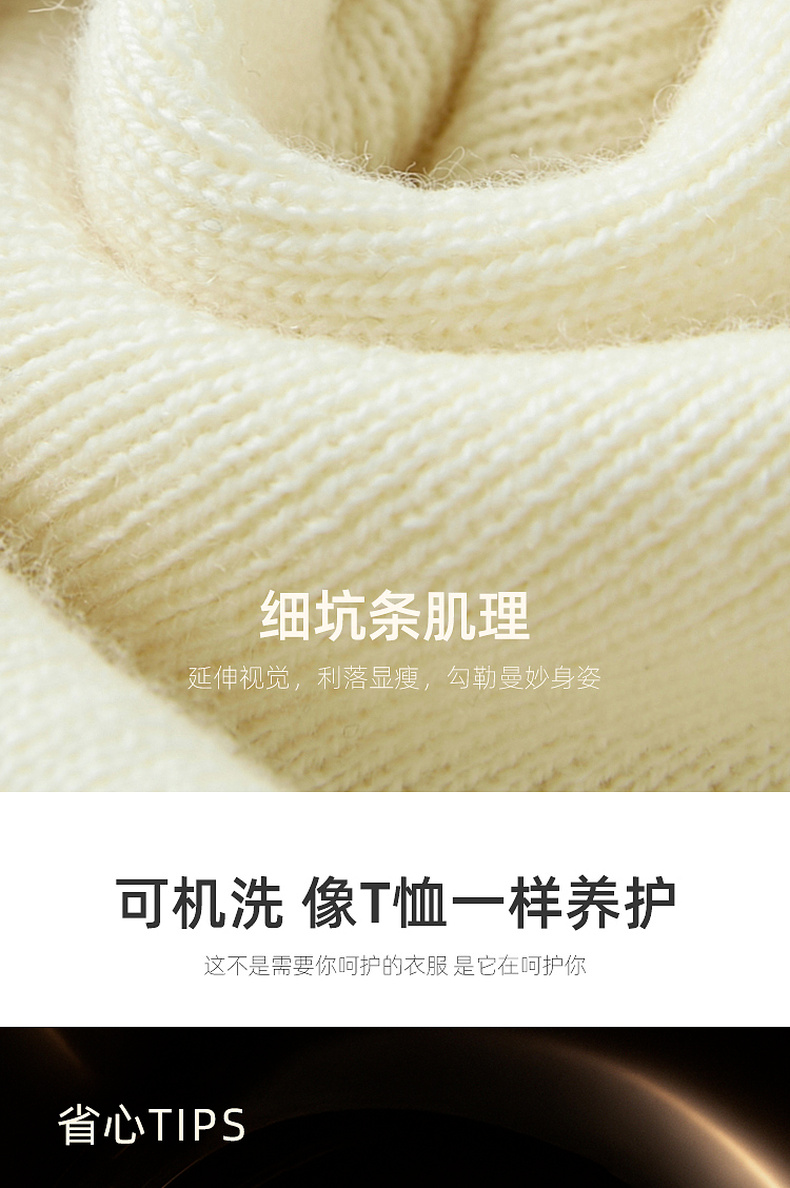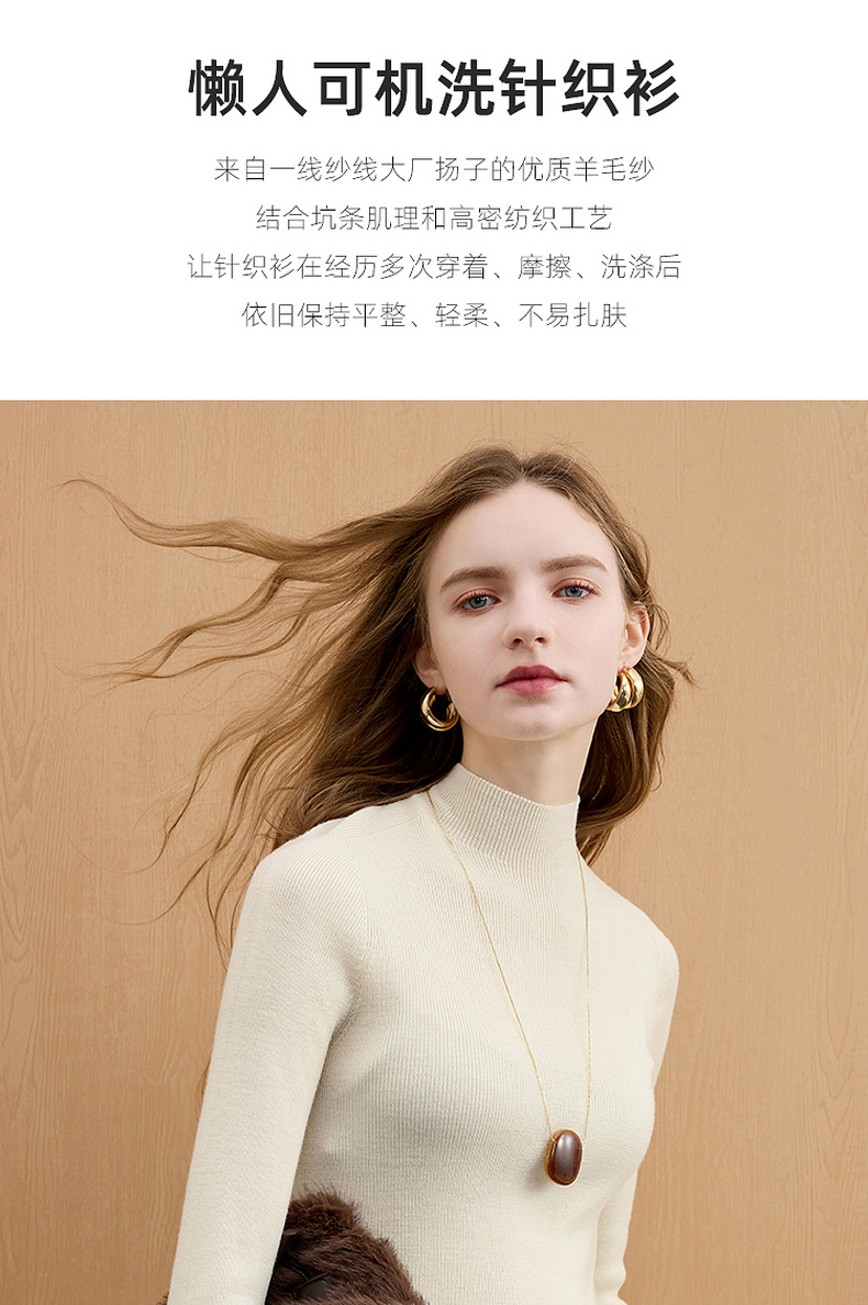【宋轶同款】[可机洗]100绵羊毛]三彩2025冬季新款针织衫修身打底衫简约M
