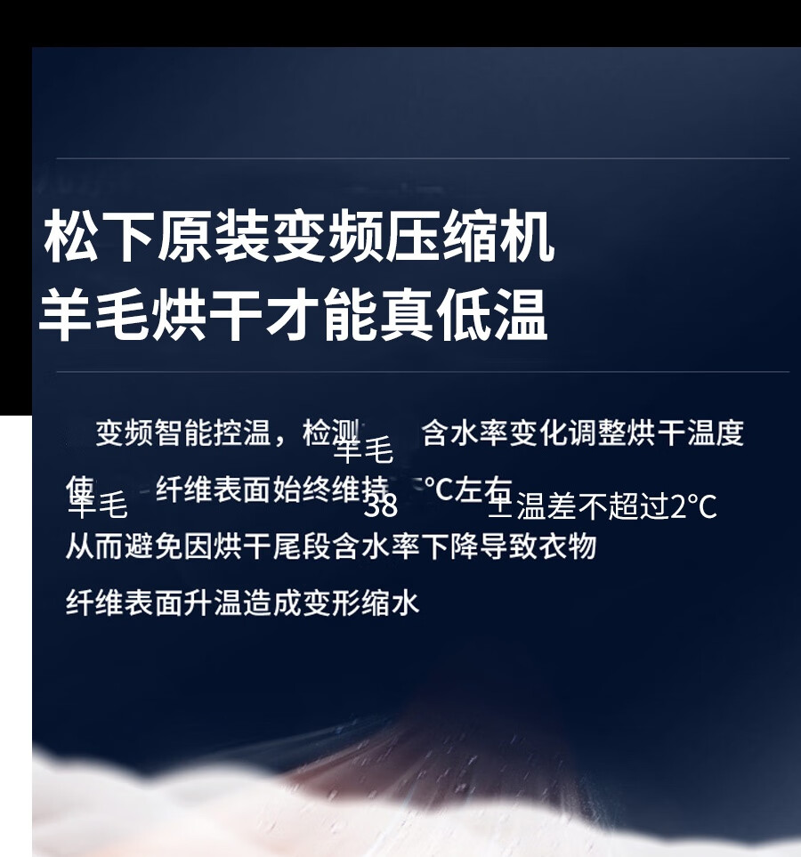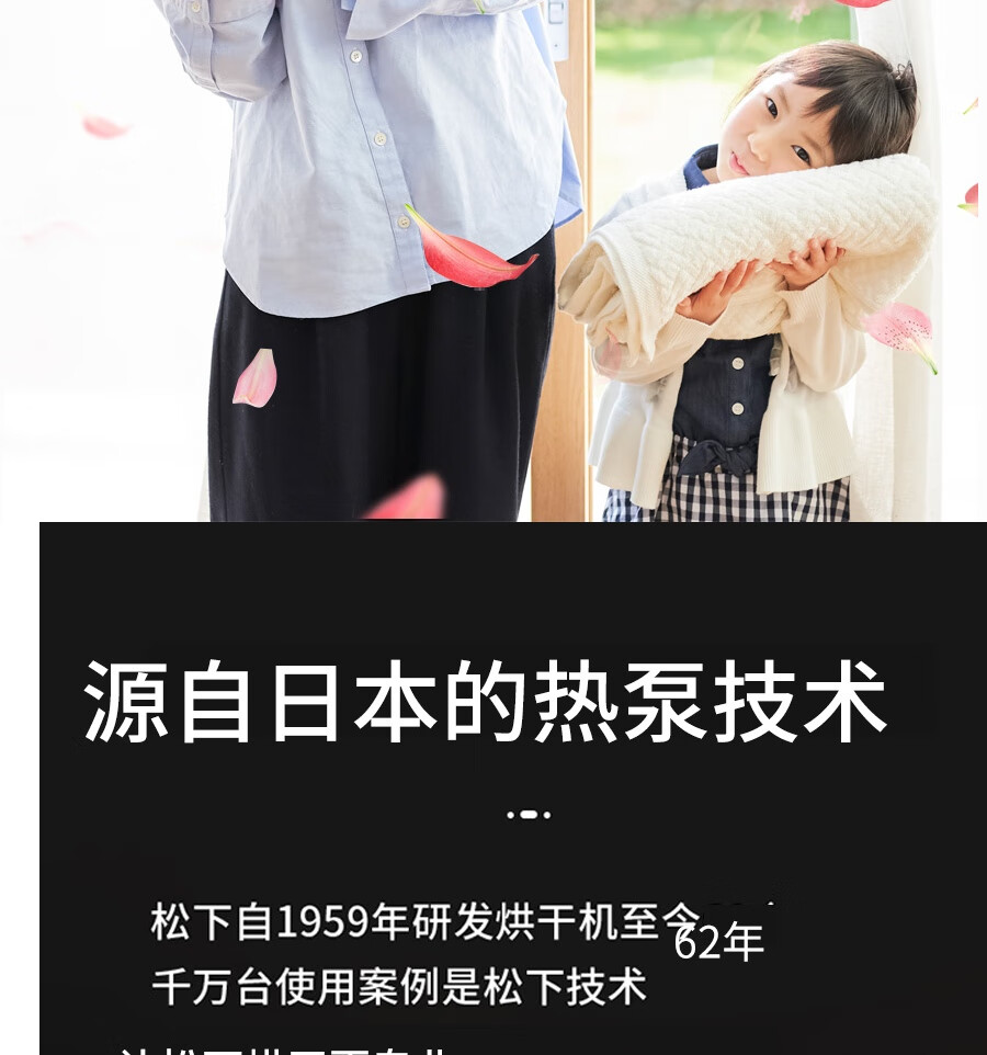 Panasonic松下高端ALPHA热泵式烘干机 保时捷设计 10kg大容烘干 衣干即停 原装松下双转子变频压缩机 NH-D1