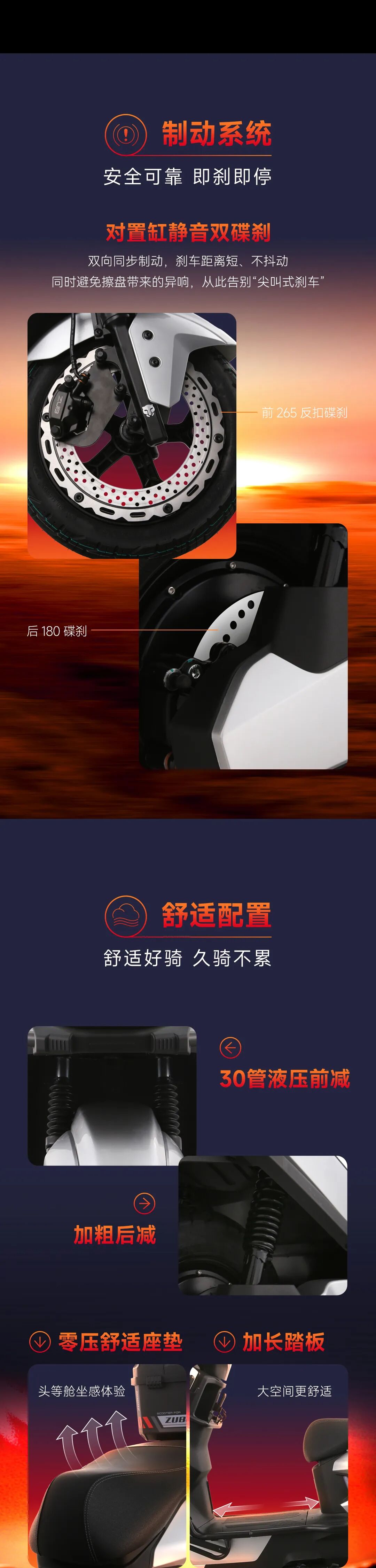 刹车制动:30管直碟/加粗 后减/前反刹轮/ 前反刹后 对置缸碟刹