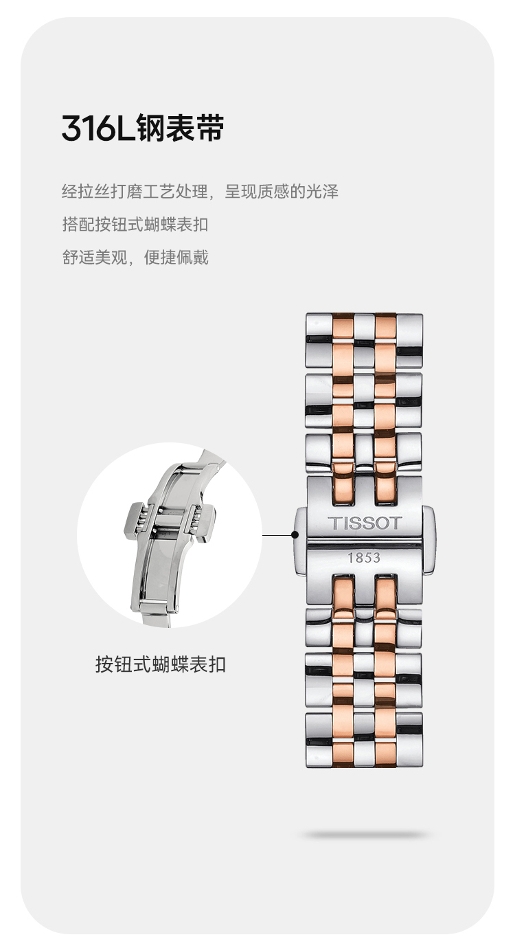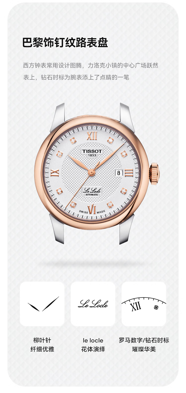 天梭(TISSOT)力洛克系列钢带机械女表T006.207.22.036.00