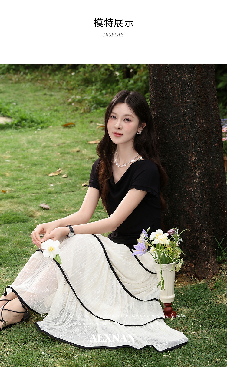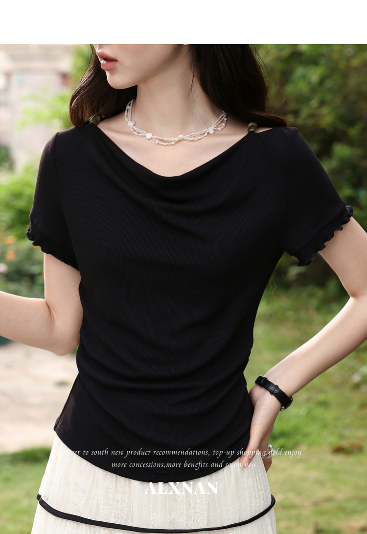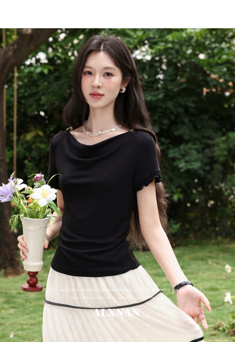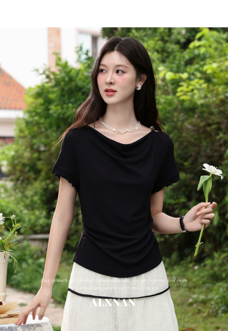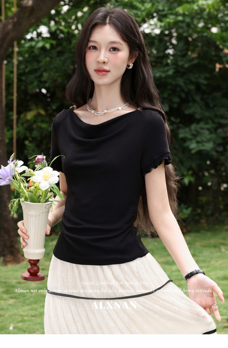 鹿向南【0420/20:00新品前1小时7折限量100件】设计感收腰黑色T恤