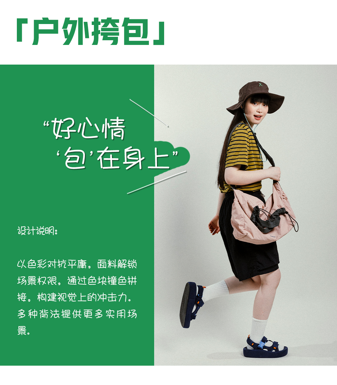 【品牌直发-福利特惠】ACMEITEM爱棵米-户外挎包大容量拼色束口抽绳旅行双用斜挎手挎包GAG3510400A