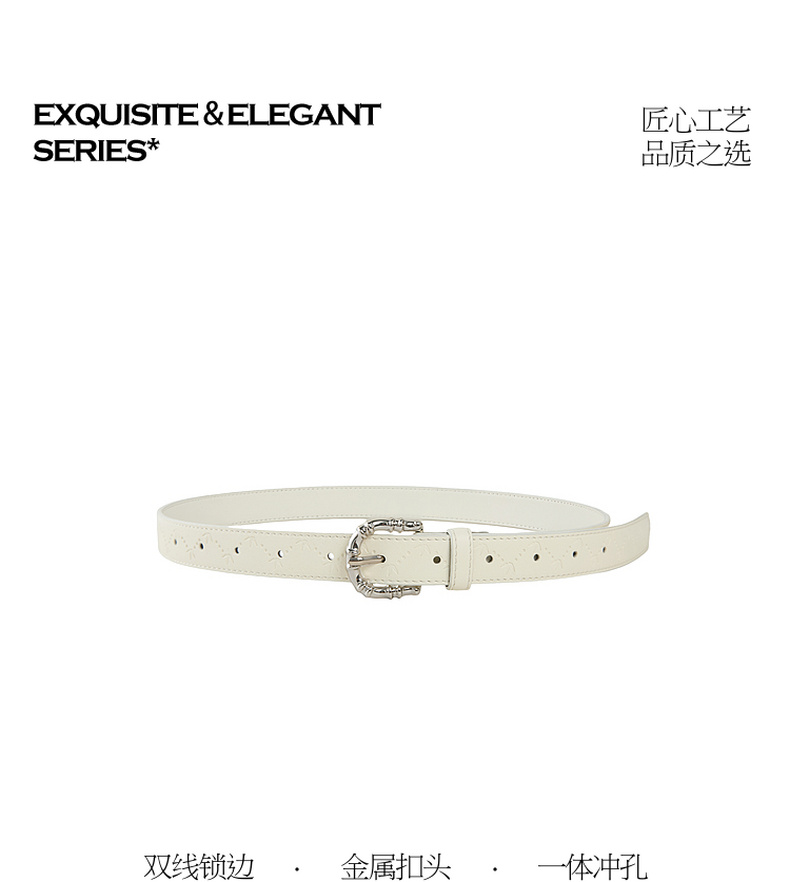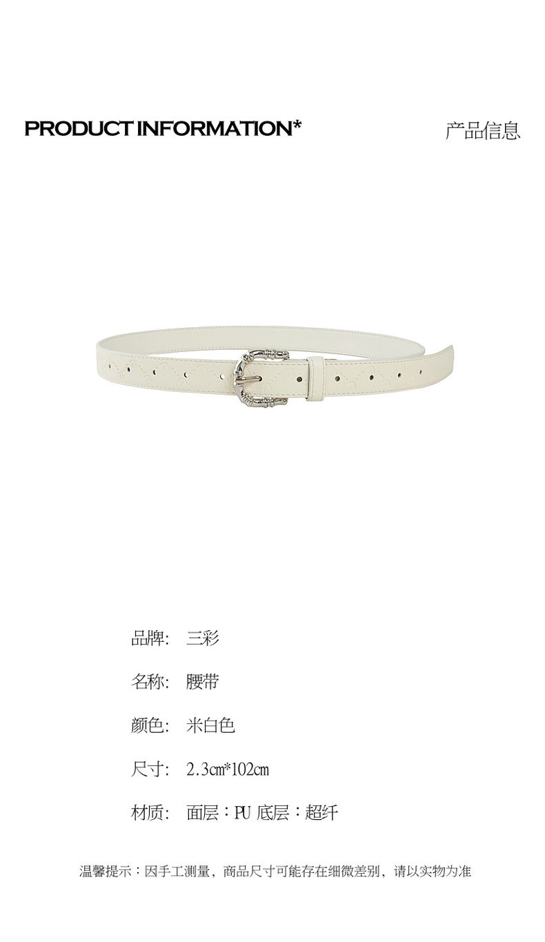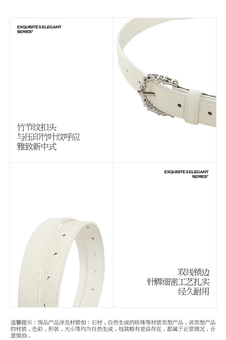 三彩2026新款白色皮质腰带竹节纹针扣压印竹叶纹配国风服饰小众女
