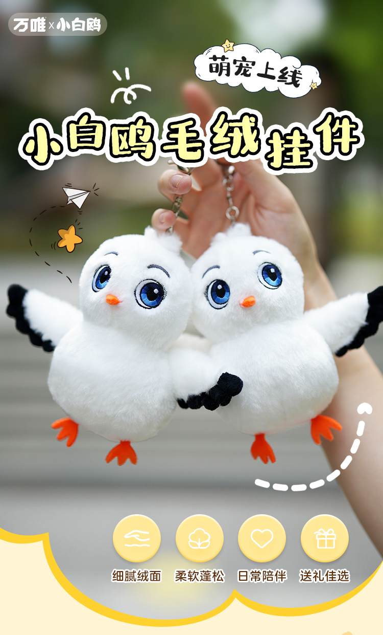 万唯小白鸥毛绒挂件可爱玩偶男女孩儿童书包挂饰生日礼物陪伴玩具钥匙扣公仔万维教育旗舰店