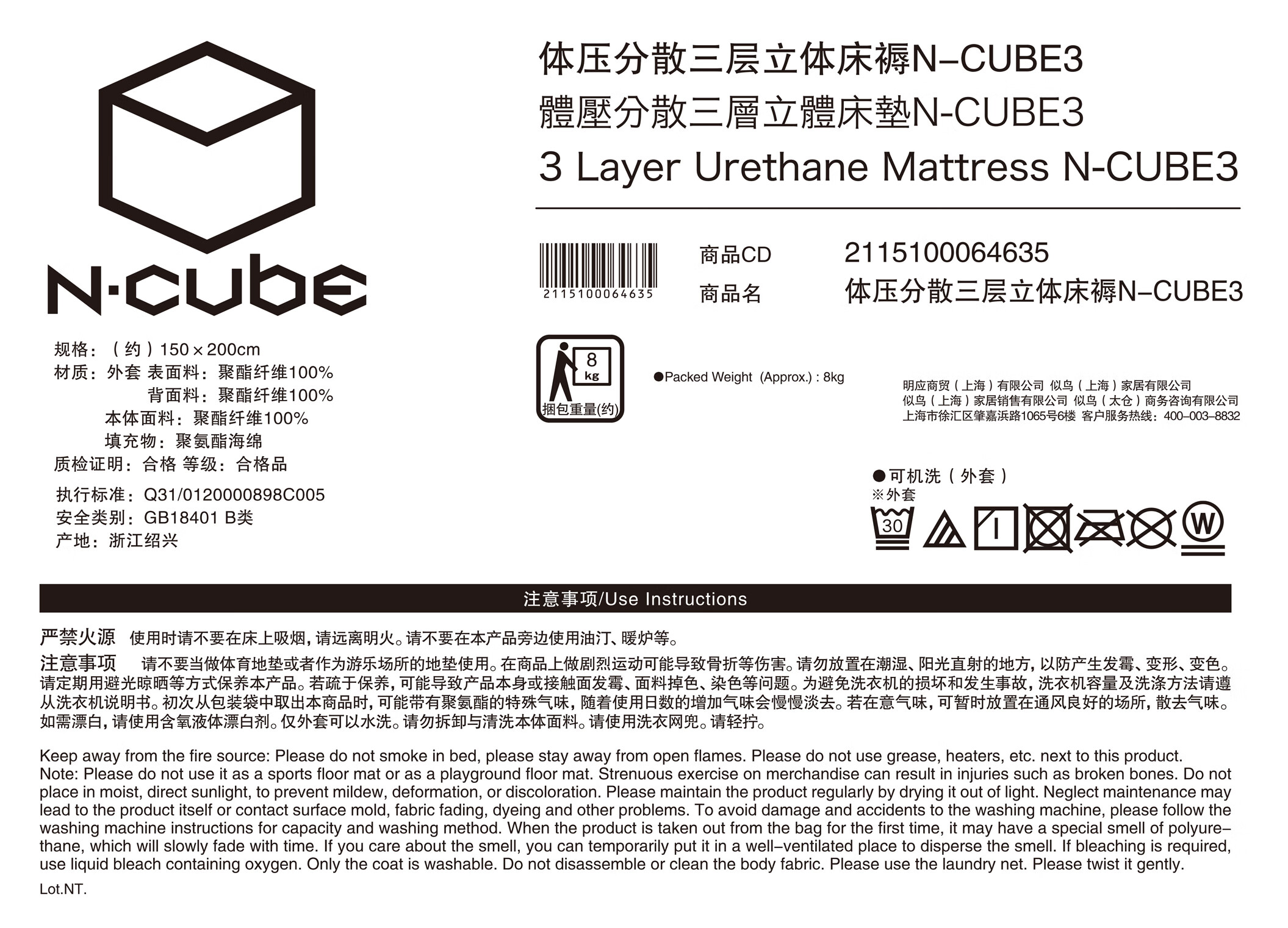 学生宿舍床垫可拆洗体压分散三层立体床褥N-CUBE3