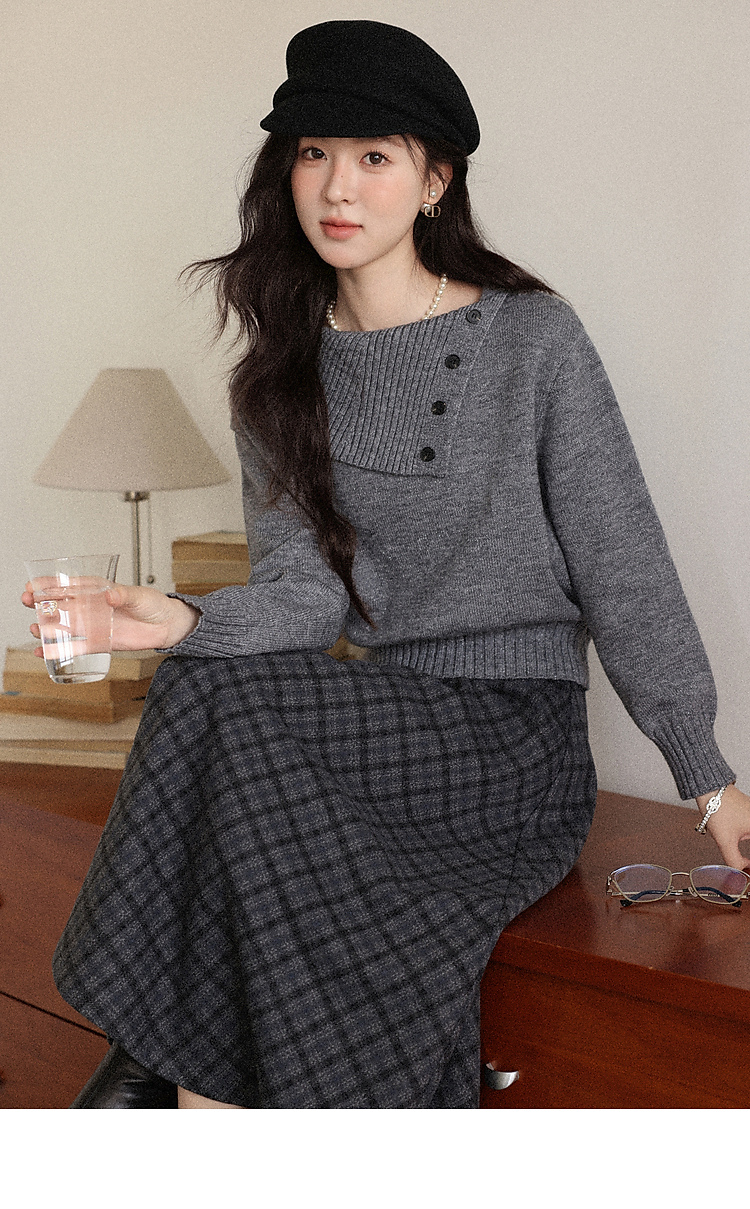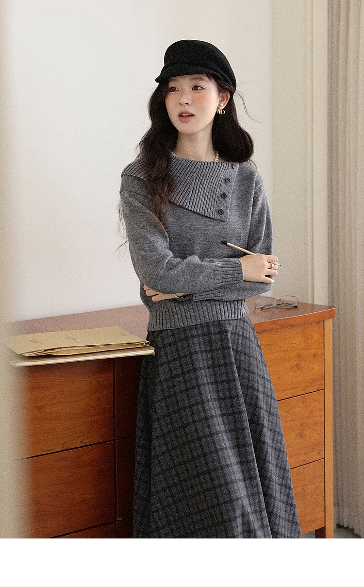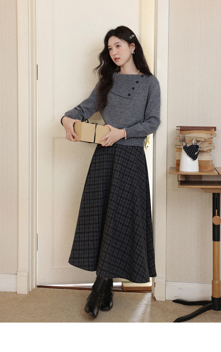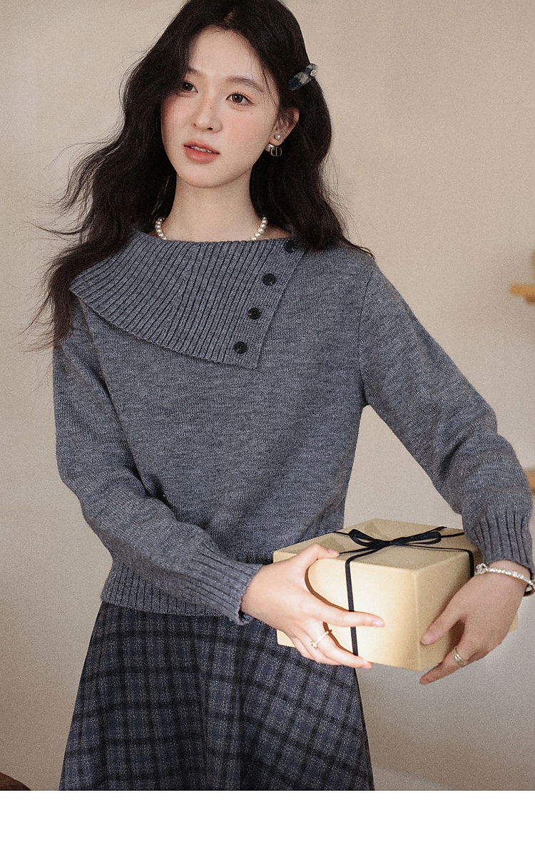 鹿向南「朦胧雾霭」设计感大翻领毛衣外套女冬新款宽松针织衫上衣