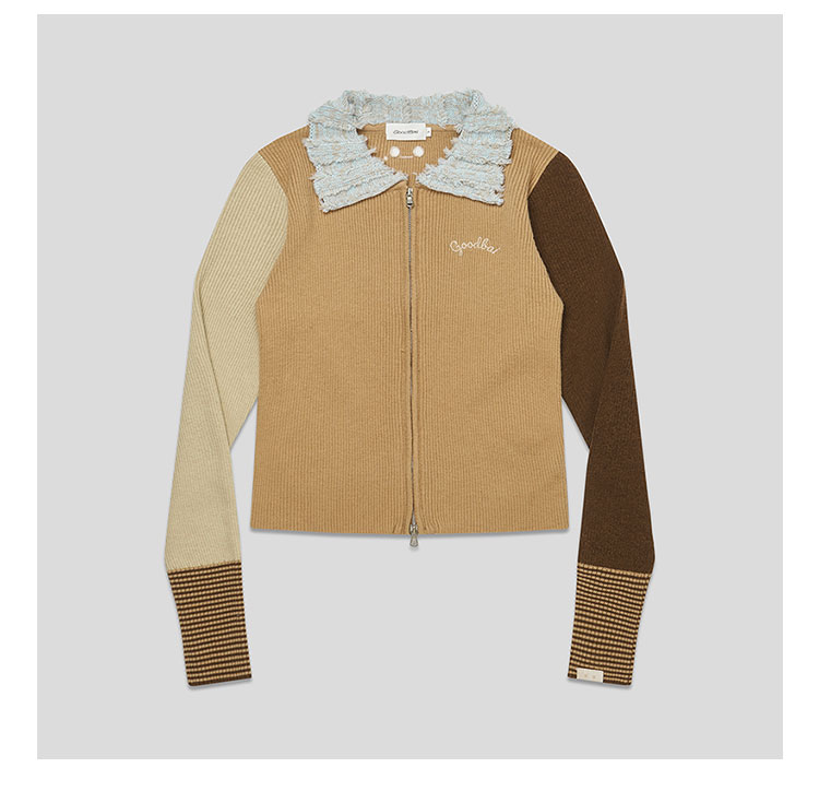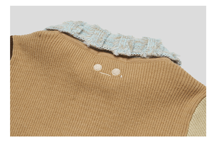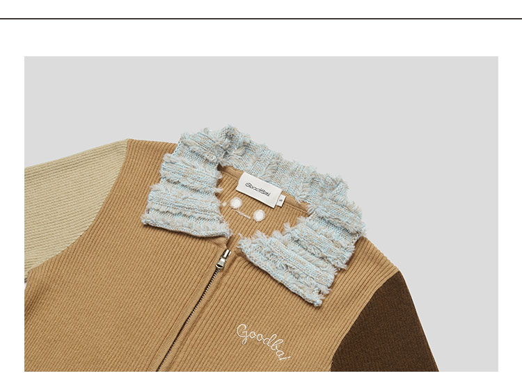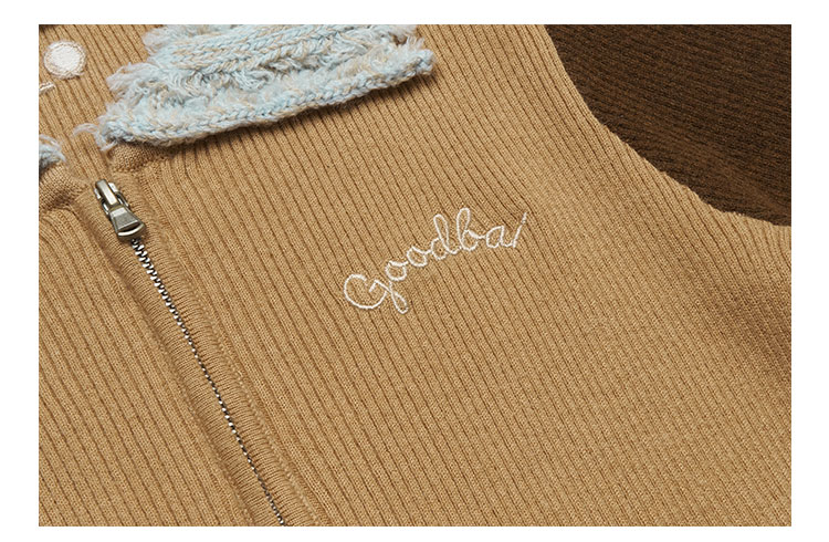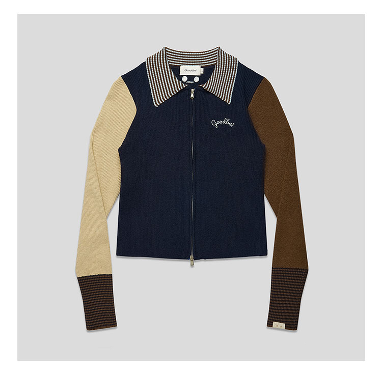 GOODBAI GOODEES刺绣logo拼色修身翻领针织开衫