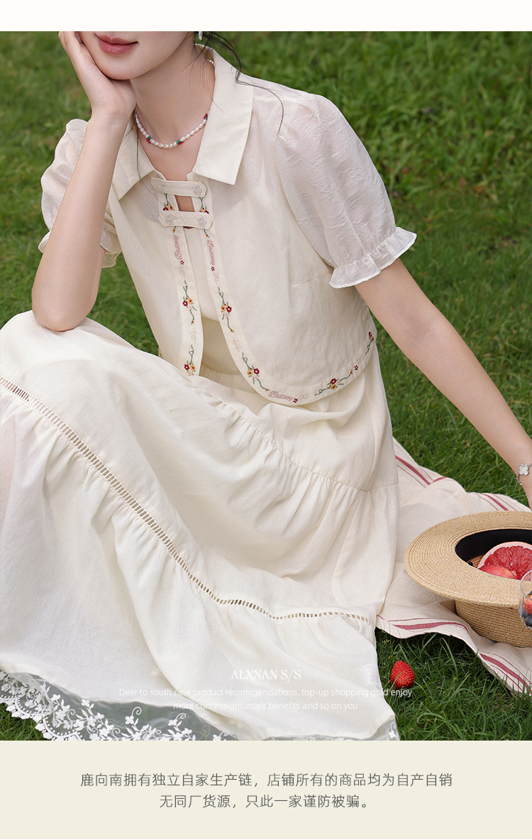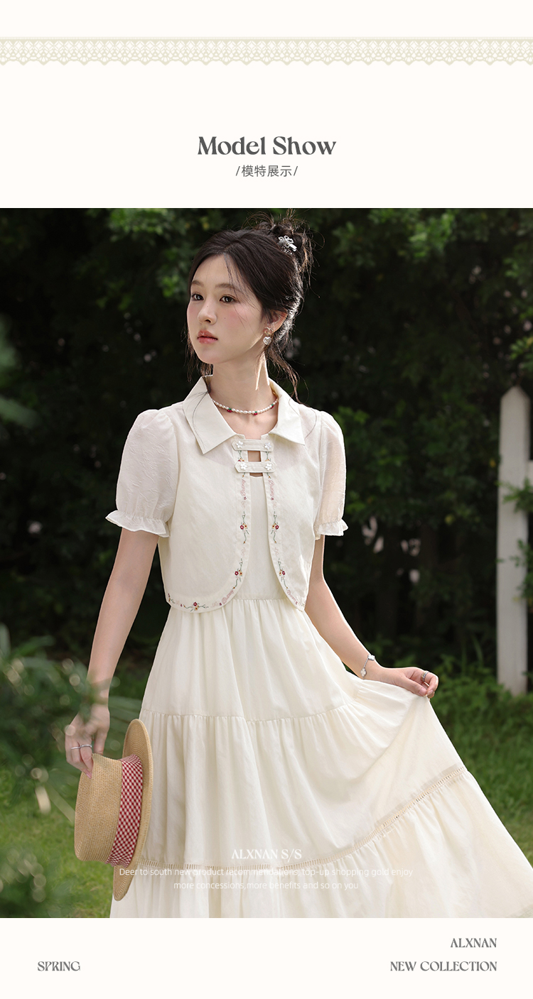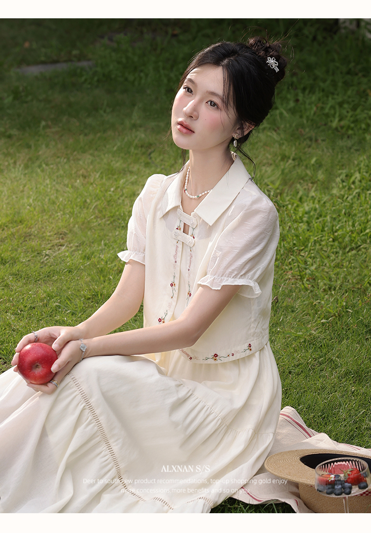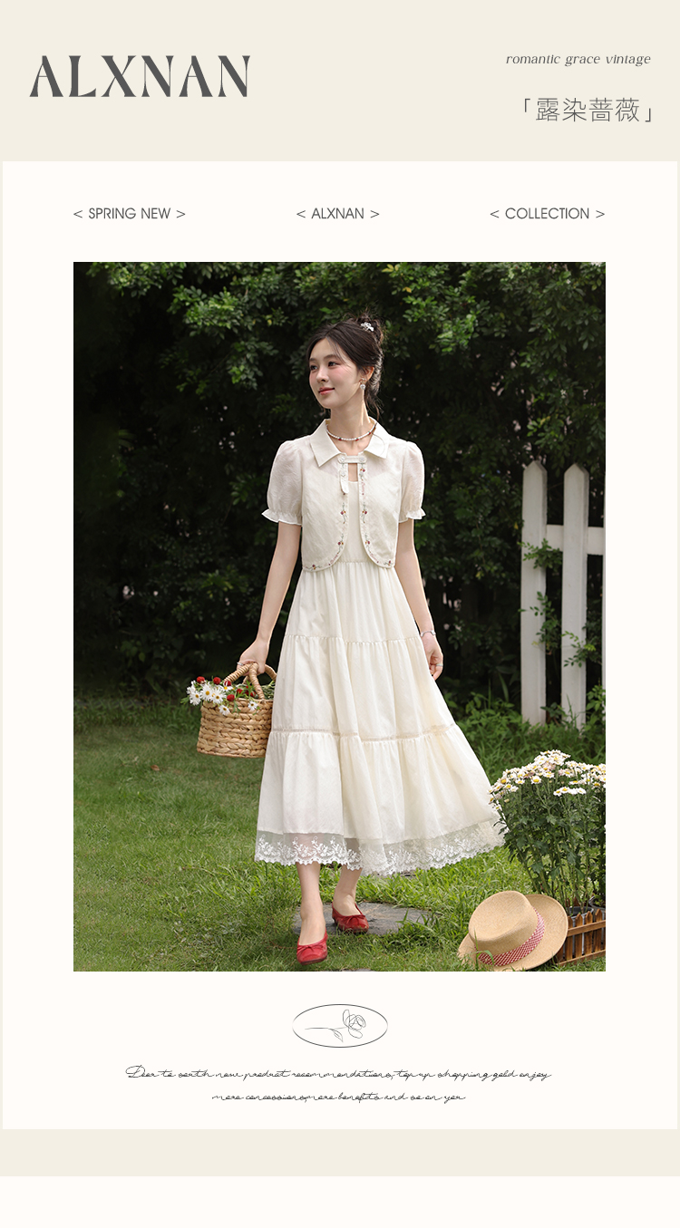 鹿向南「露染蔷薇」米杏色衬衫上衣无袖吊带连衣裙女夏季裙子套装