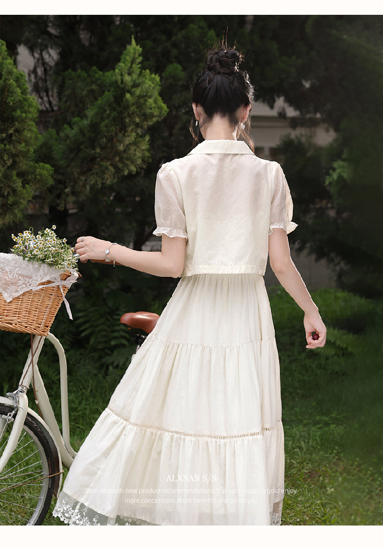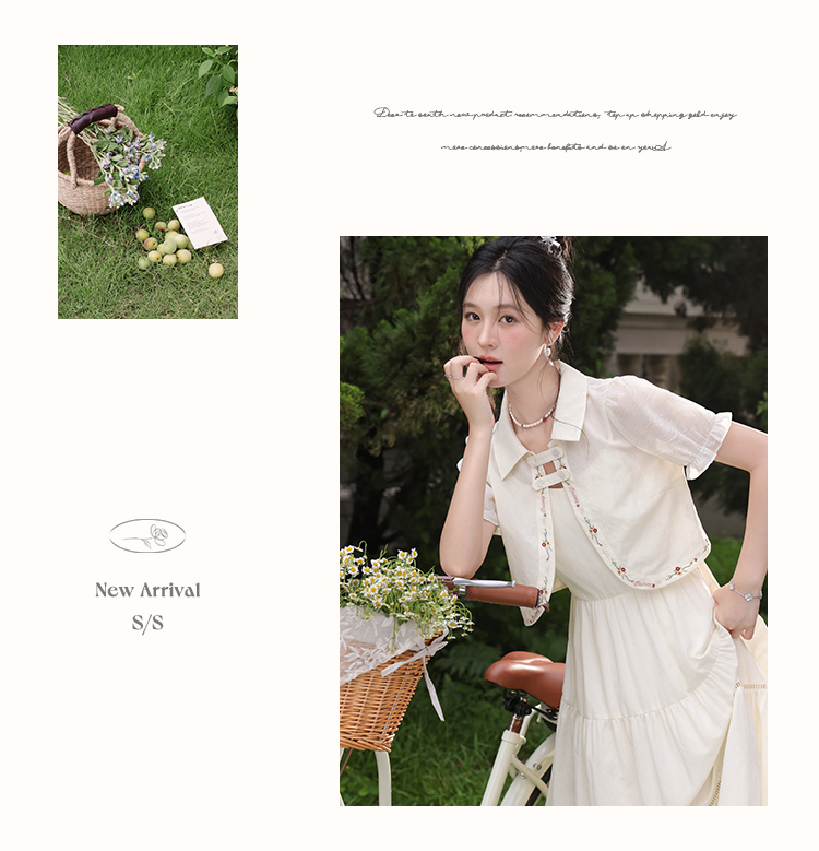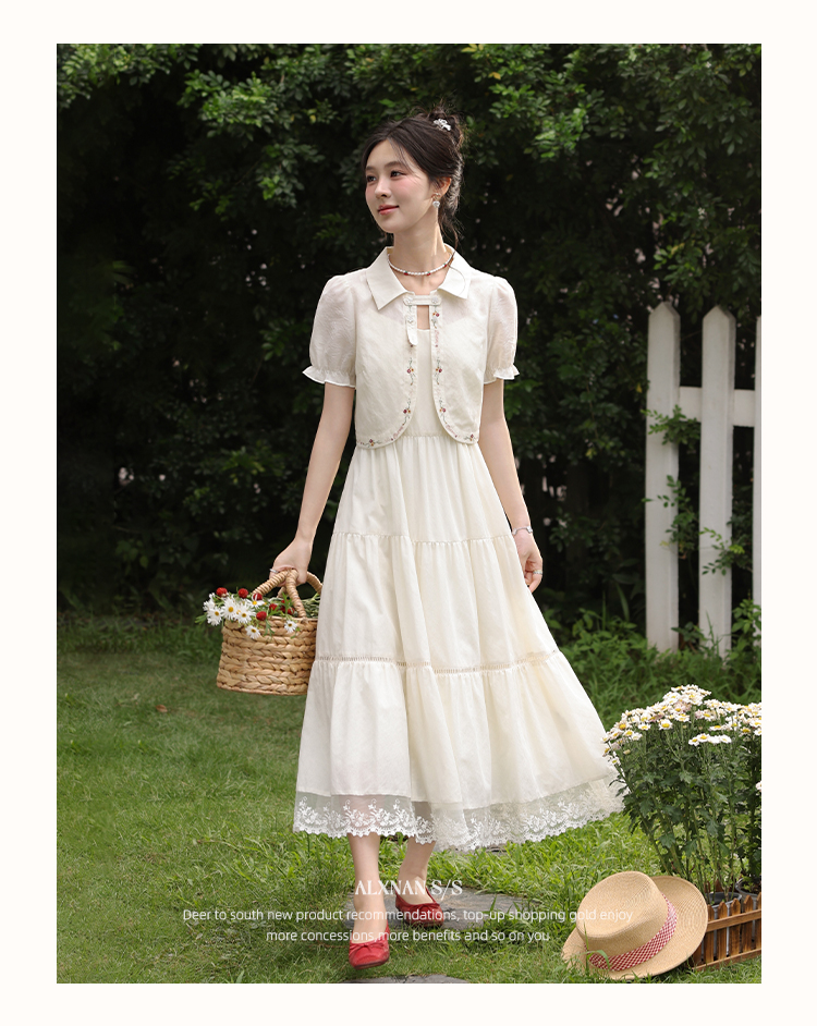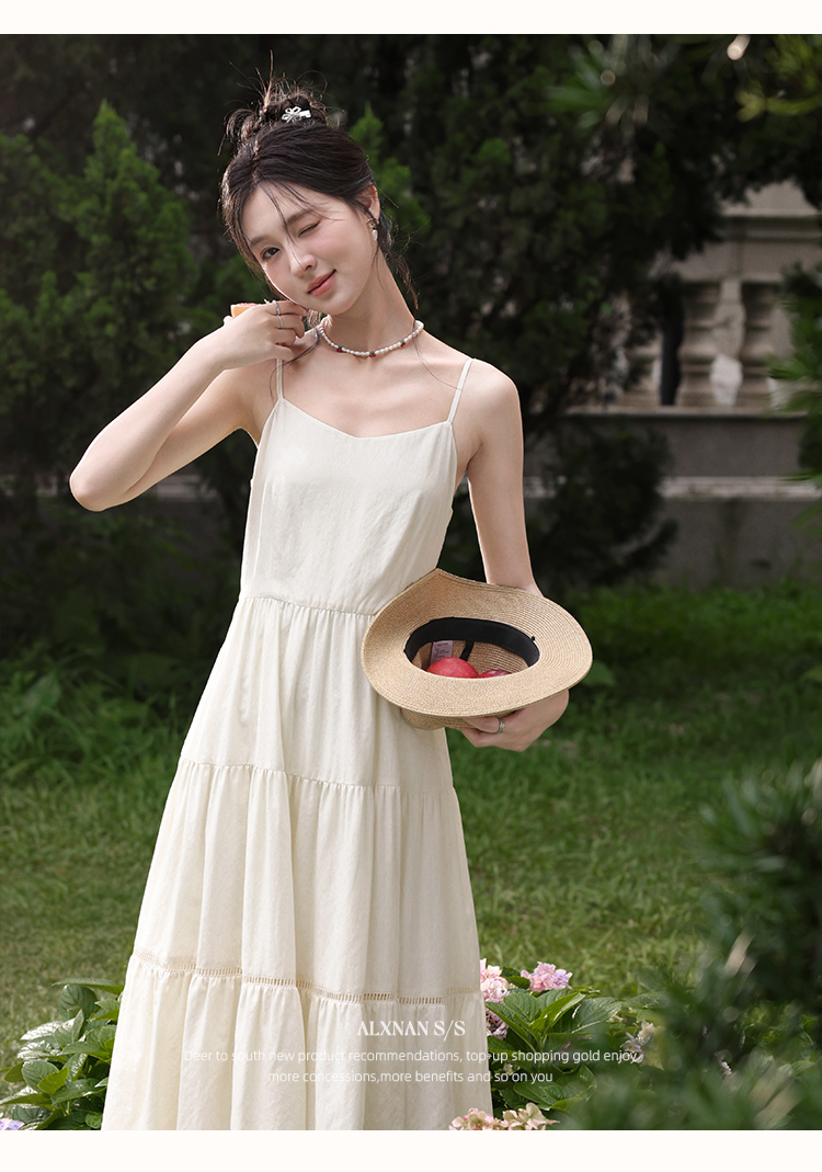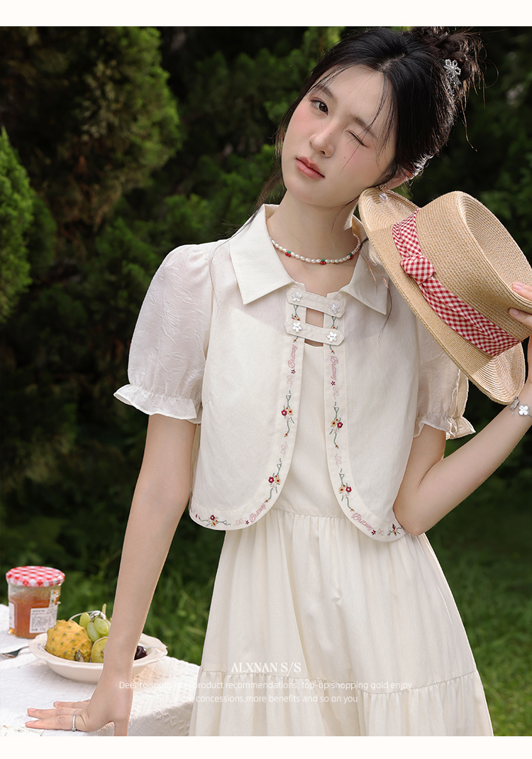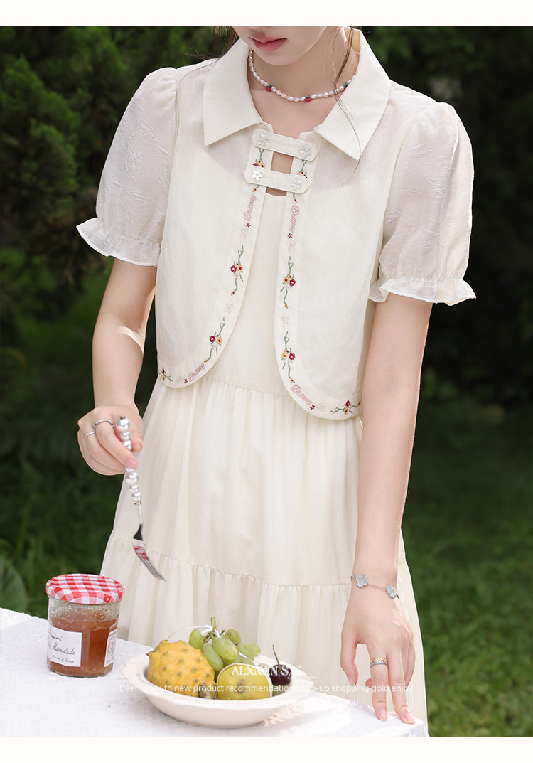 鹿向南「露染蔷薇」米杏色衬衫上衣无袖吊带连衣裙女夏季裙子套装