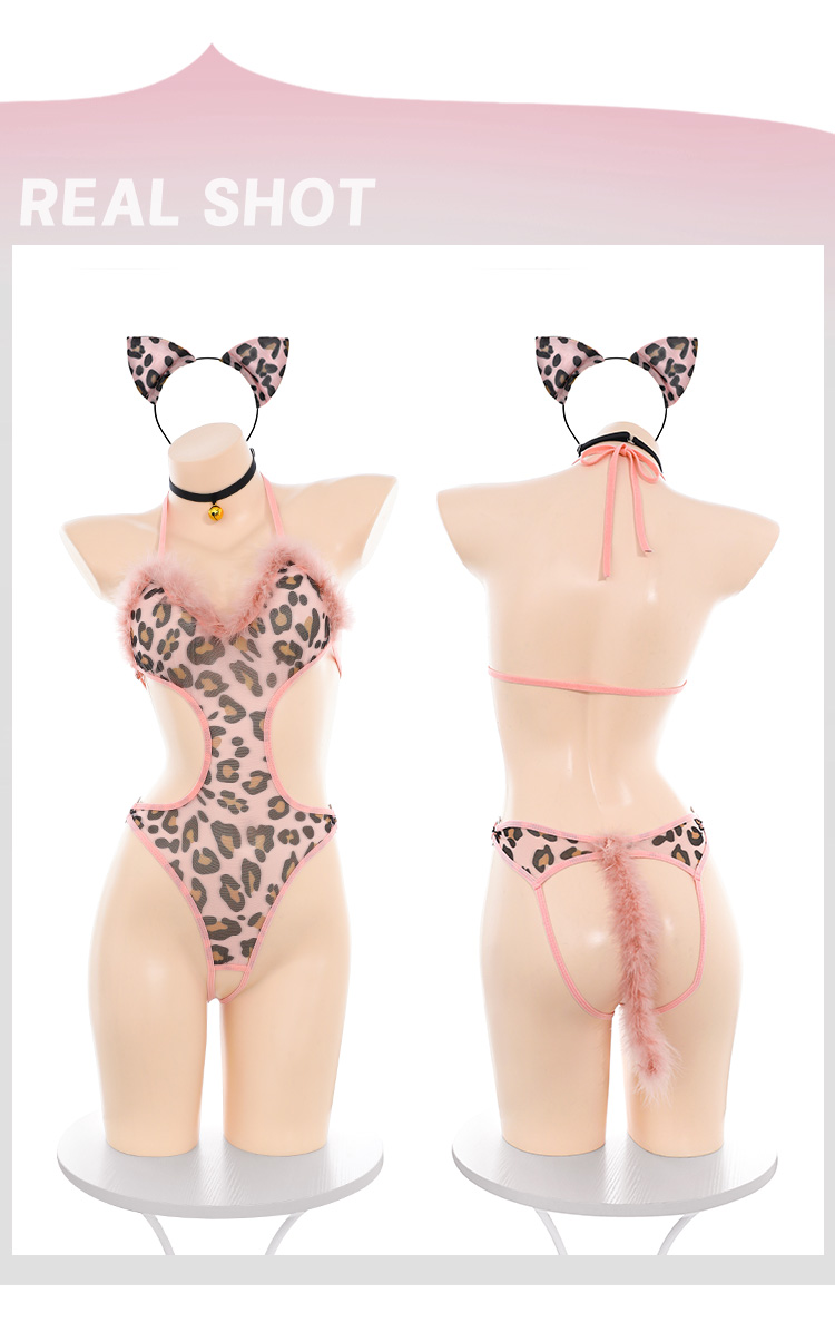 【情趣内衣】霏慕 桃色豹纹露臀连体衣6311