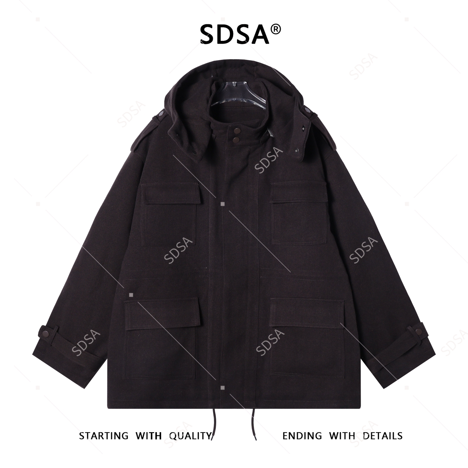 SDSA男士秋冬新款痞帅男装美式复古多口袋立领连帽夹克外套高级感