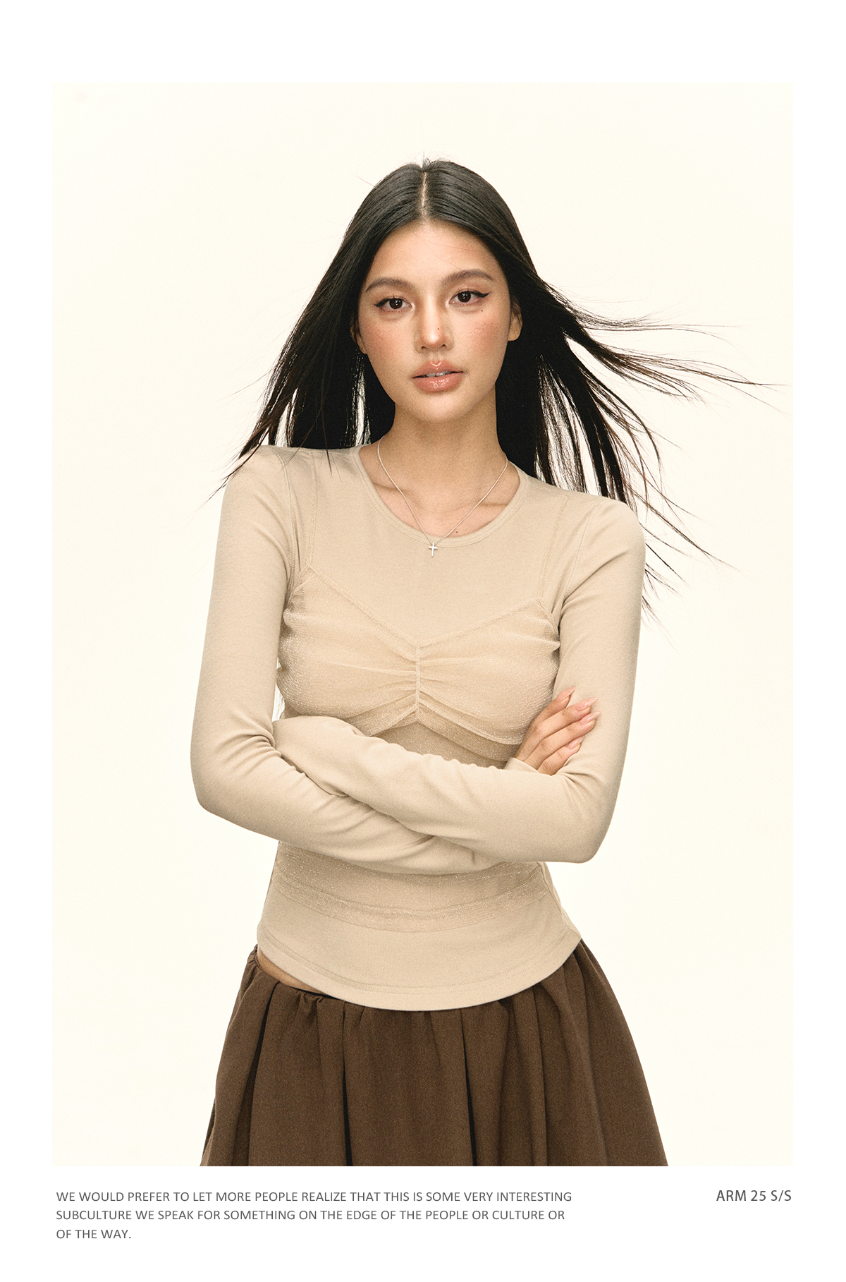 Ariseism 美式复古长袖T恤女秋季新款修身上衣