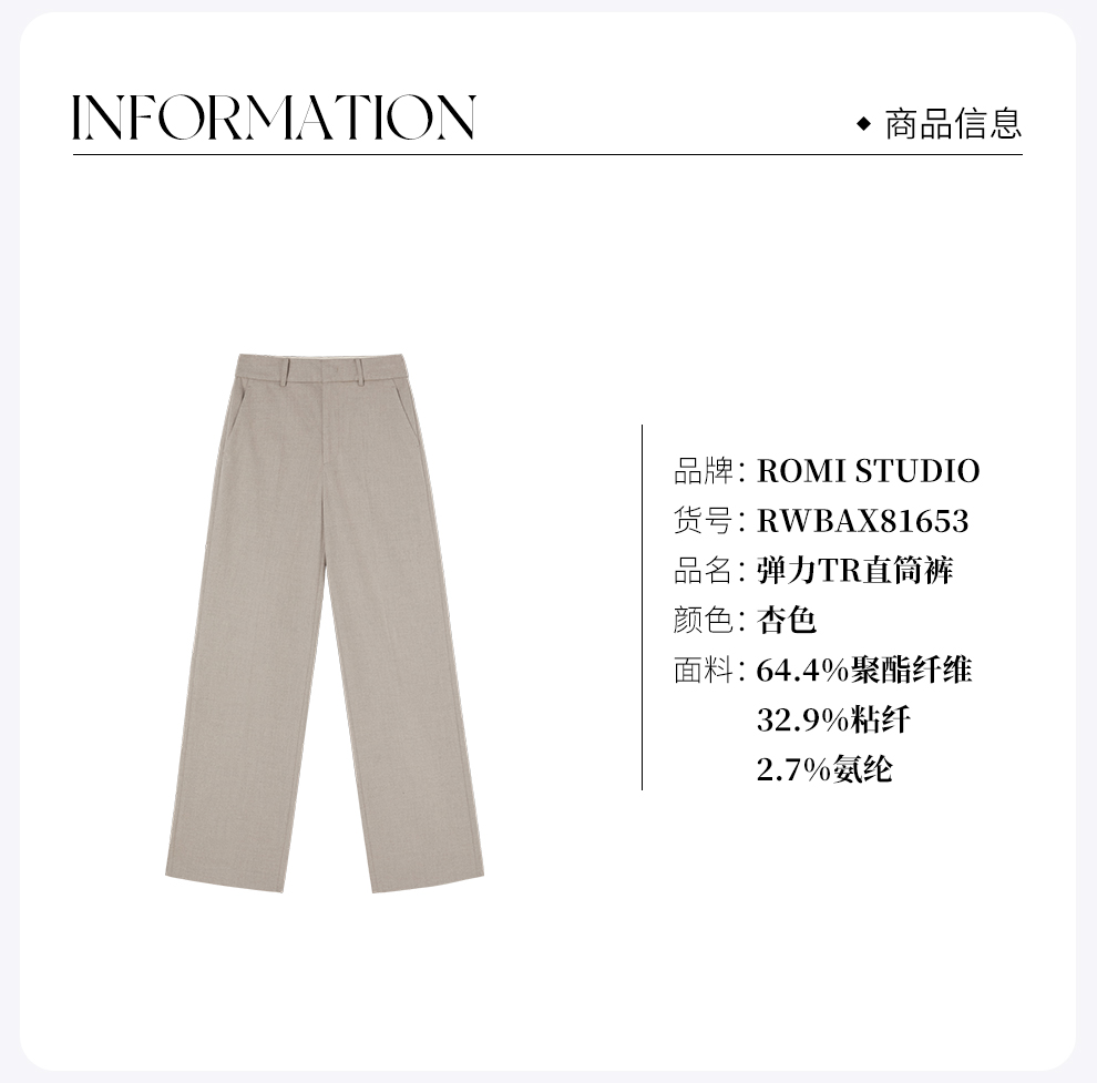 ROMI STUDIO“低调优雅”40S双股纱挺括肌理感直筒休闲裤RWBAX81653
