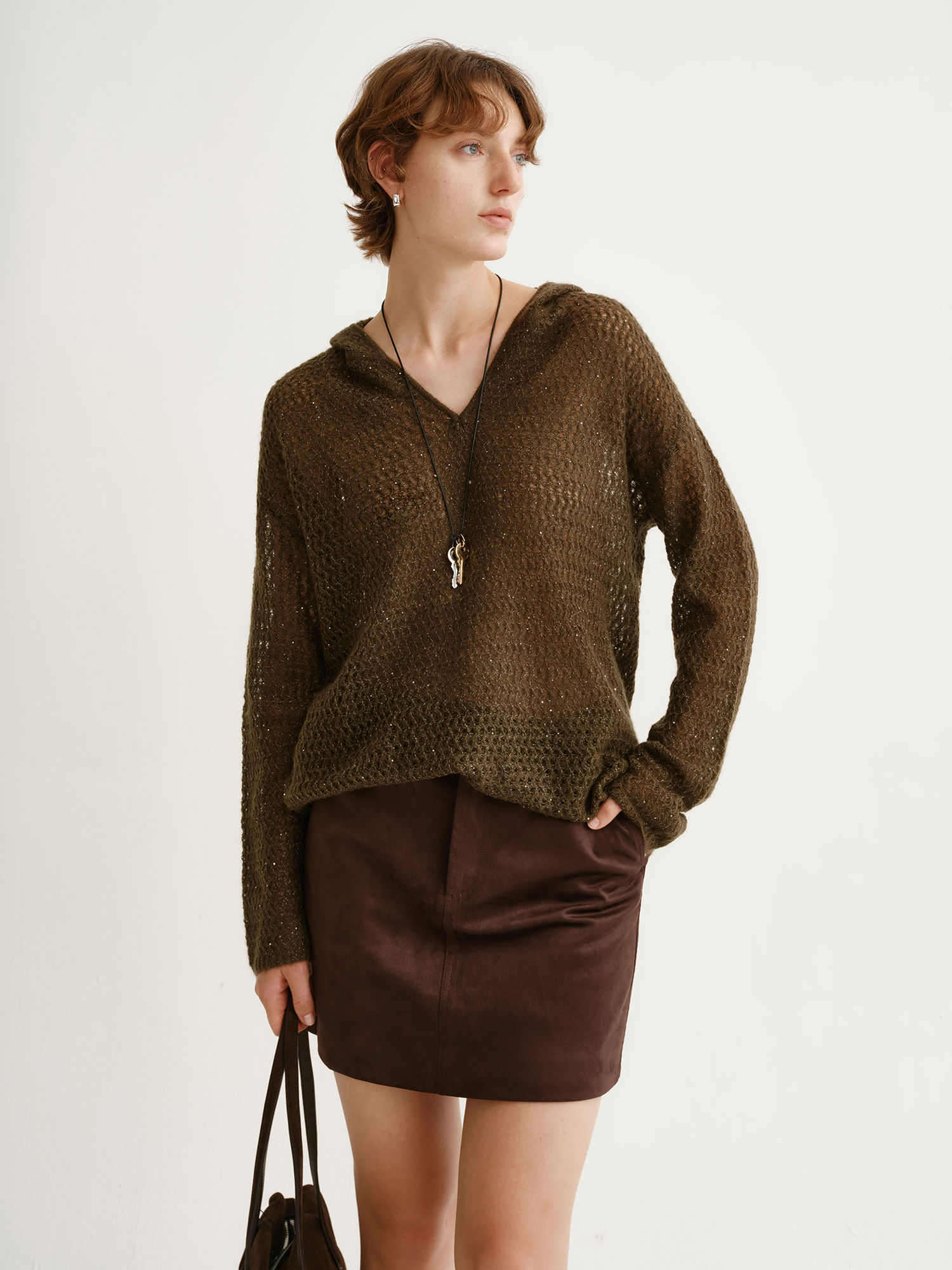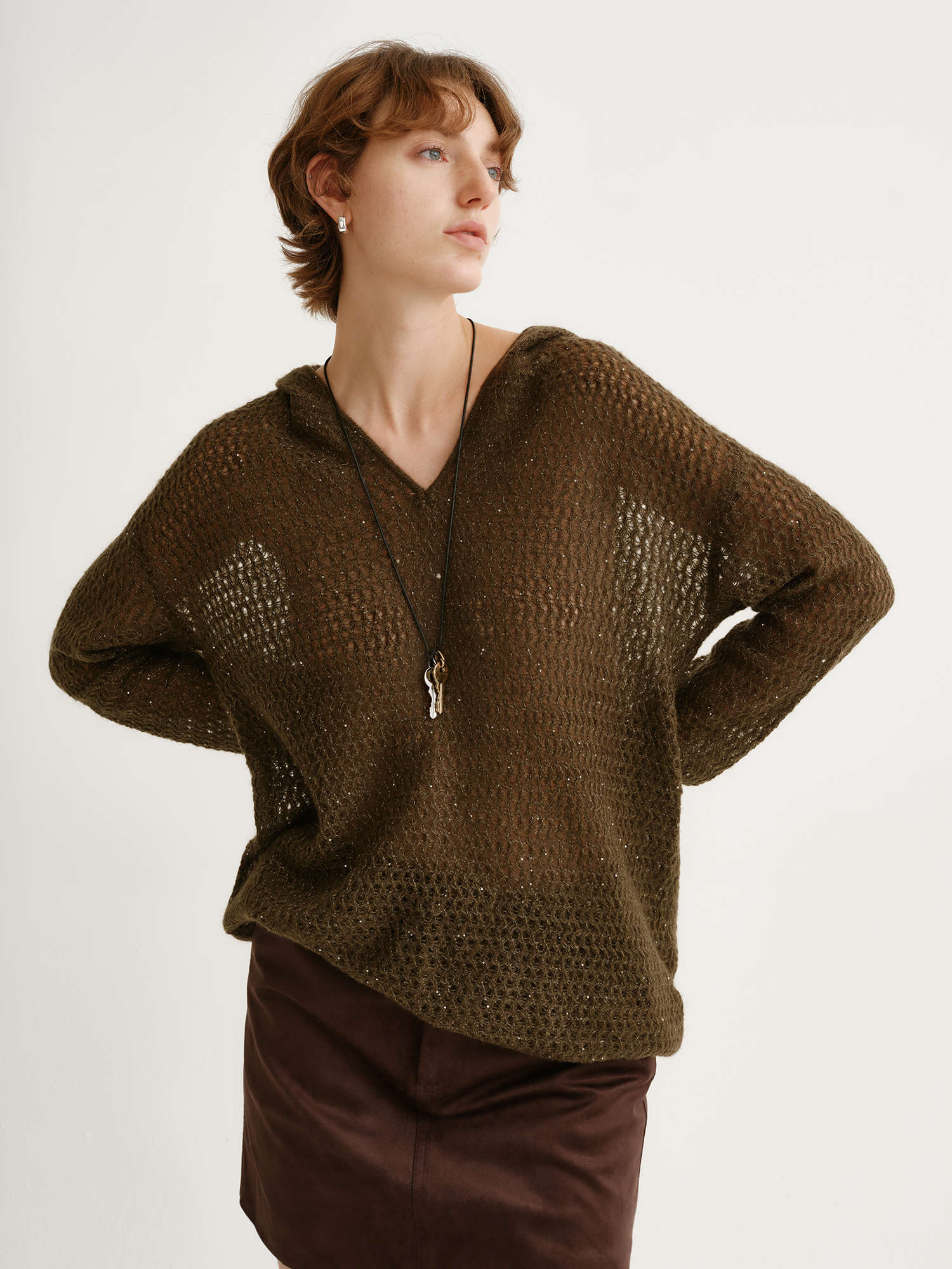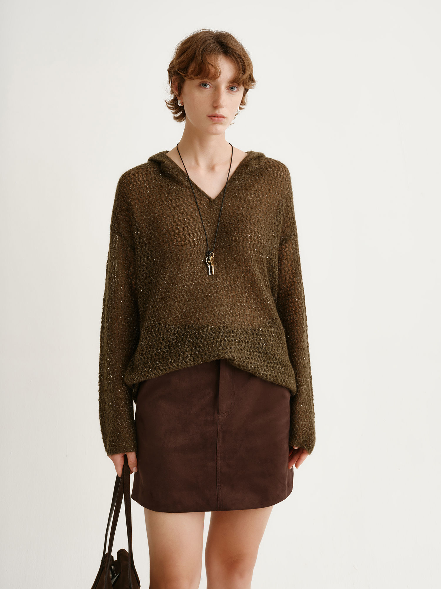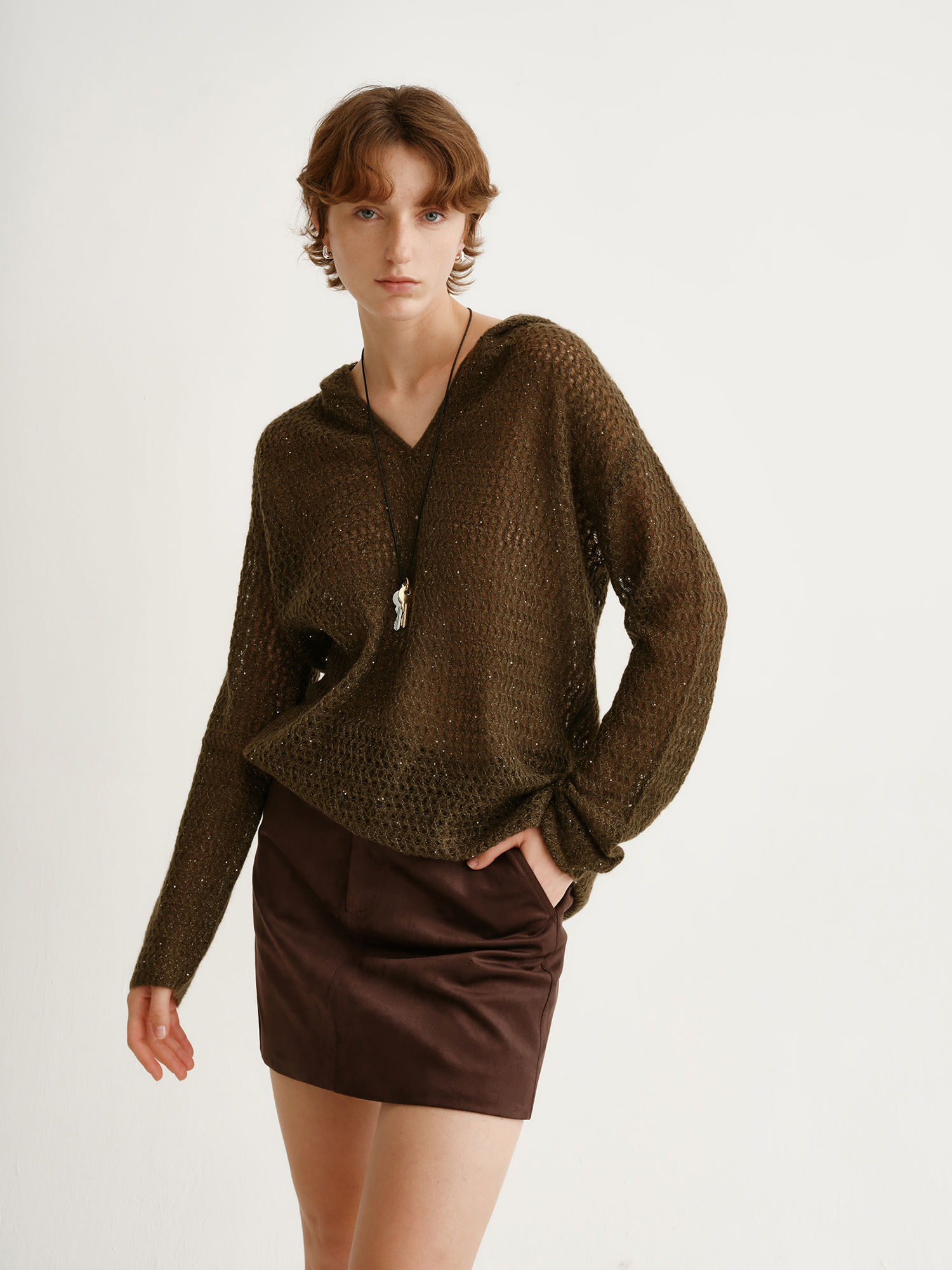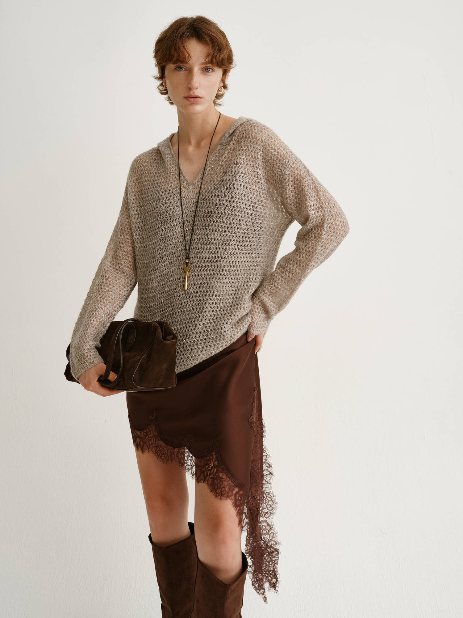 N°28 设计感镂空绵羊毛针织衫女秋季2025新款高级感气质外搭上衣895382M044
