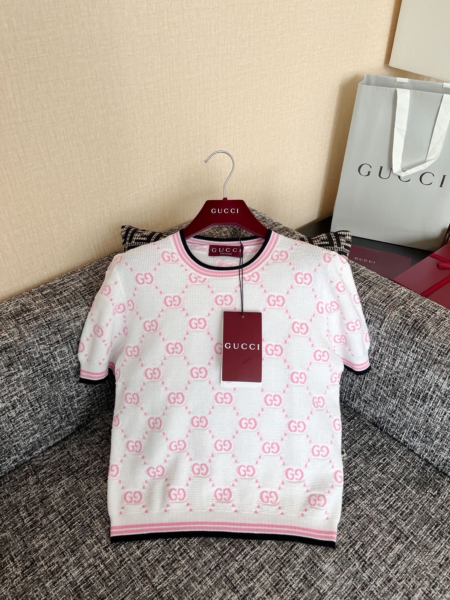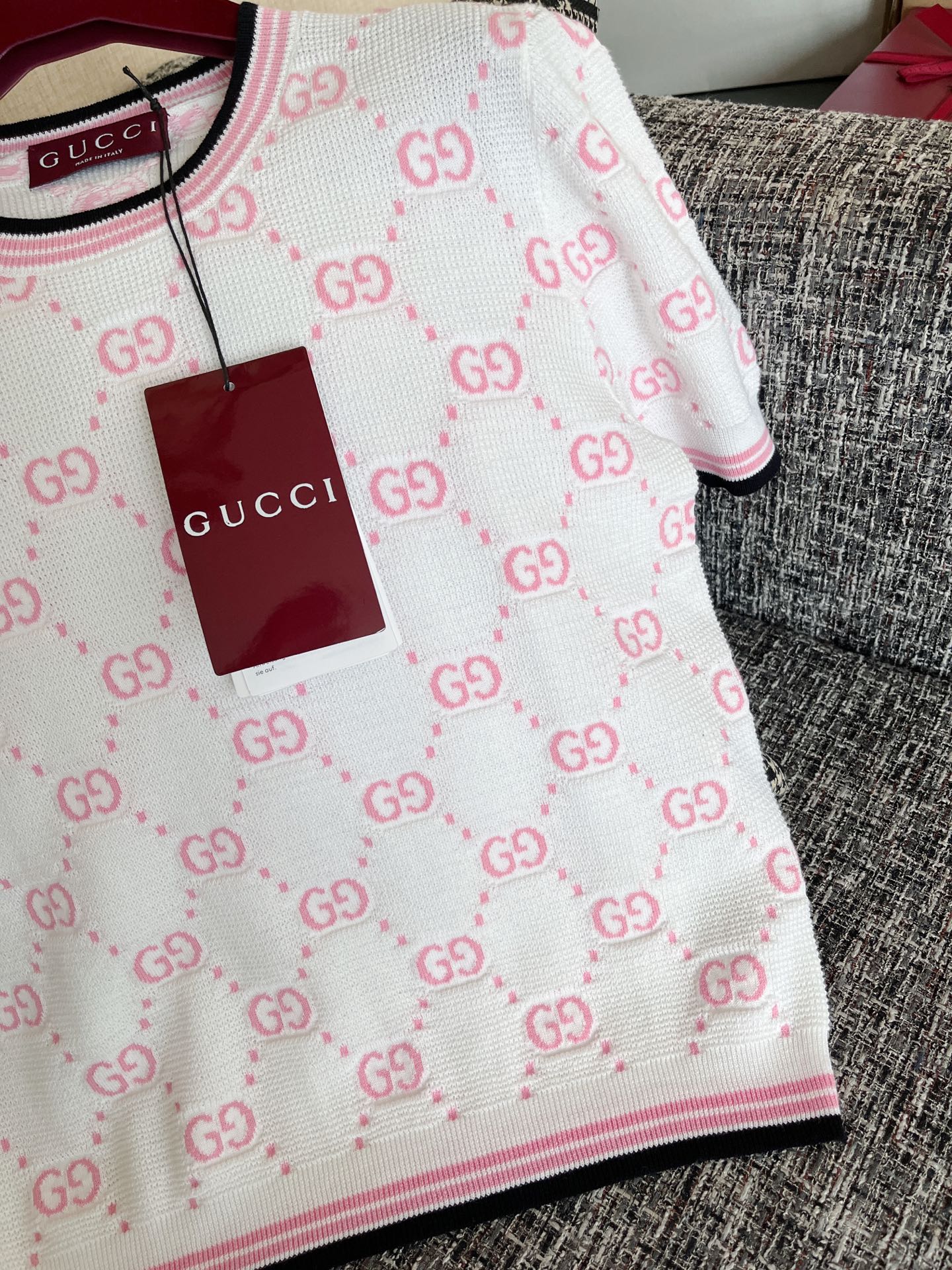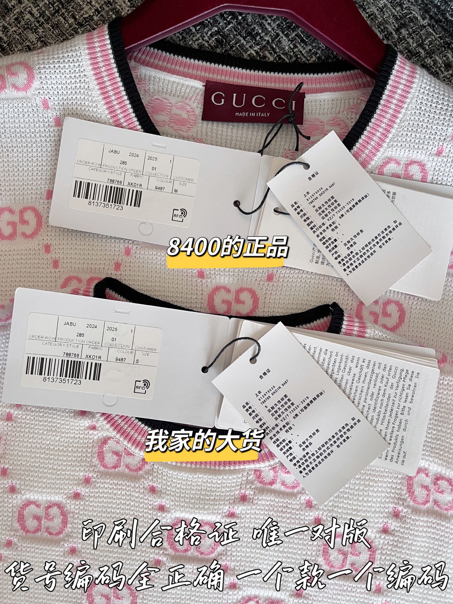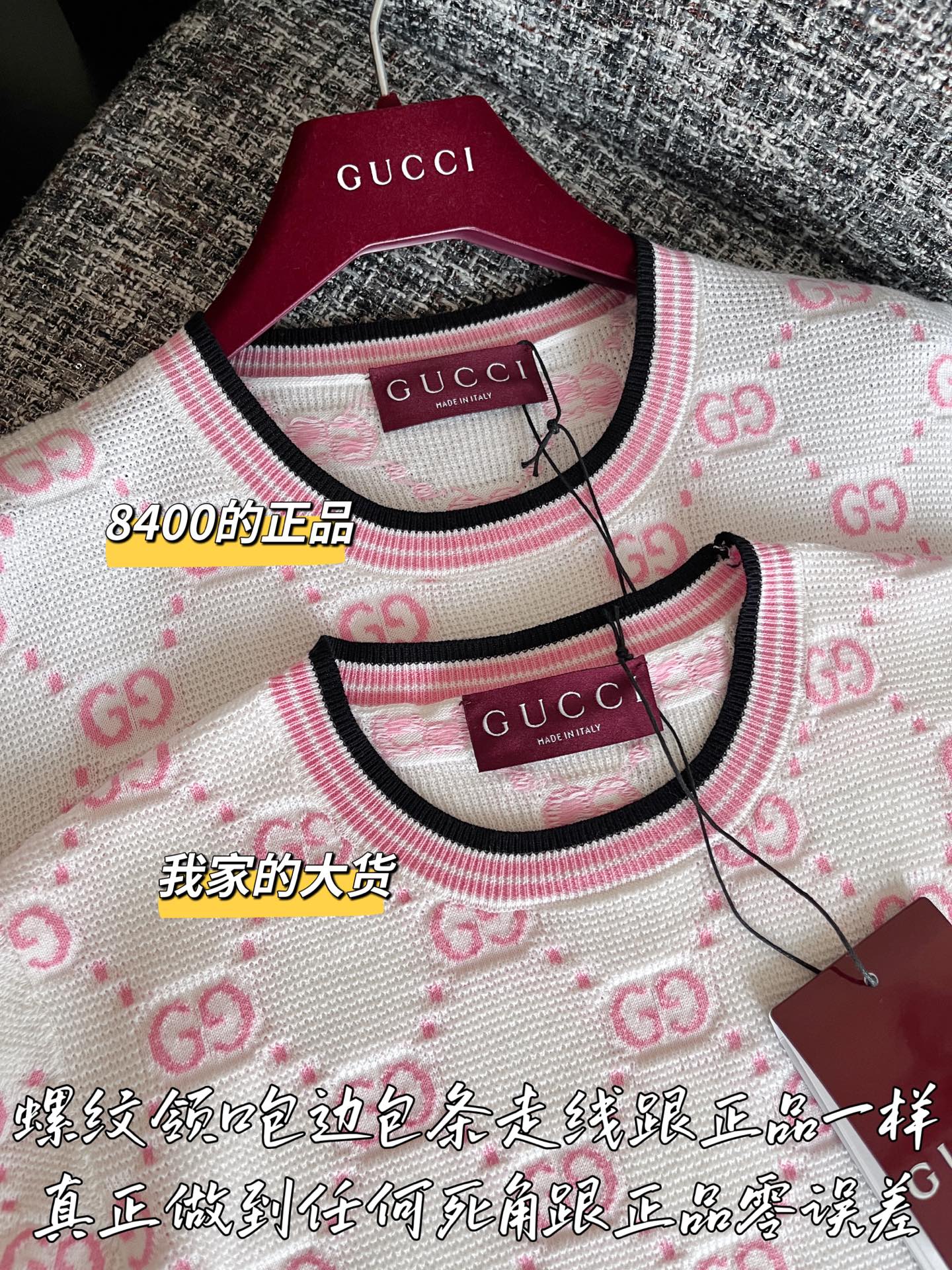 古驰25早春针织短袖🐮8400购买Zp拆解打造,订织订染精细针织进口面料🐮真正用到100%纯棉纱线织布做到对版出货💪工艺放大看细节除还原度接近98以上 做工也无敌了🔥真正做到1:1还原 直接闭着眼购买👀码数:S M L XL