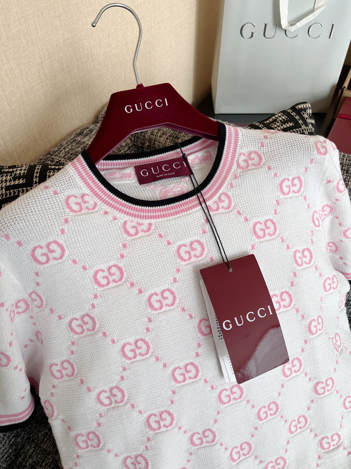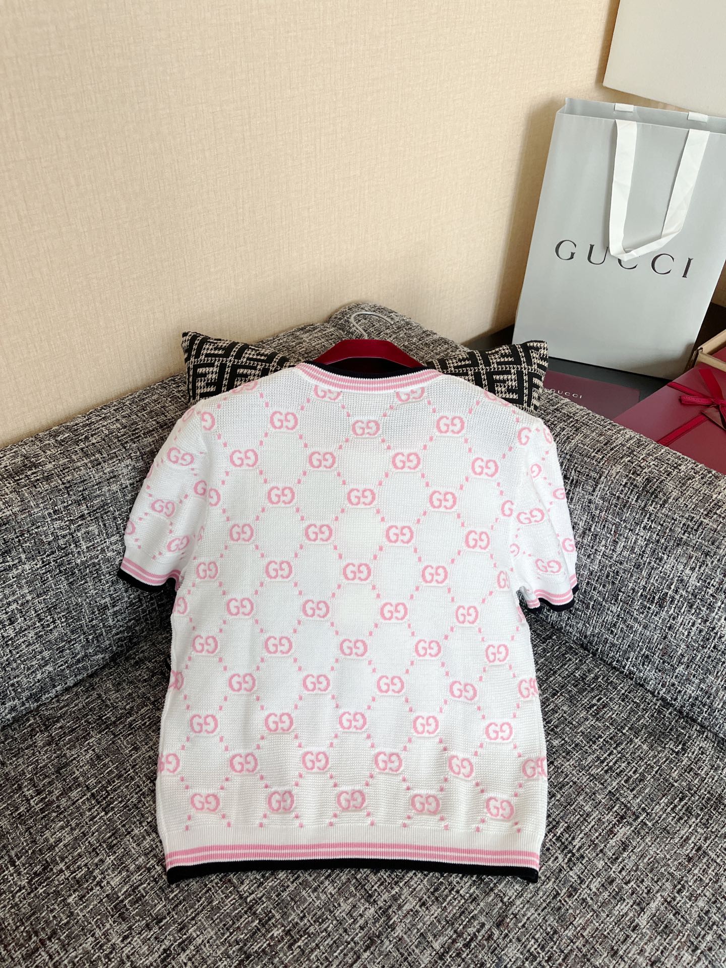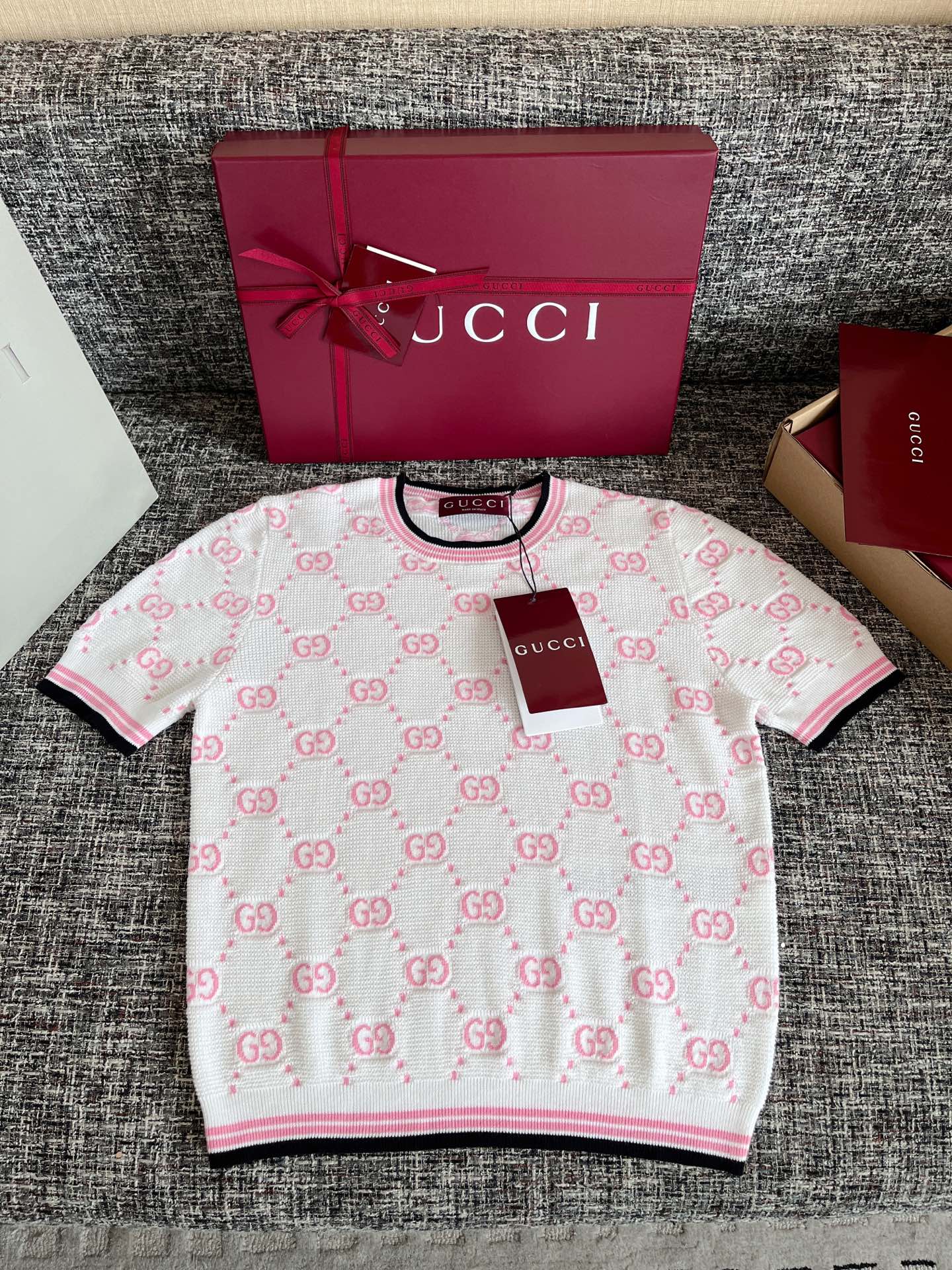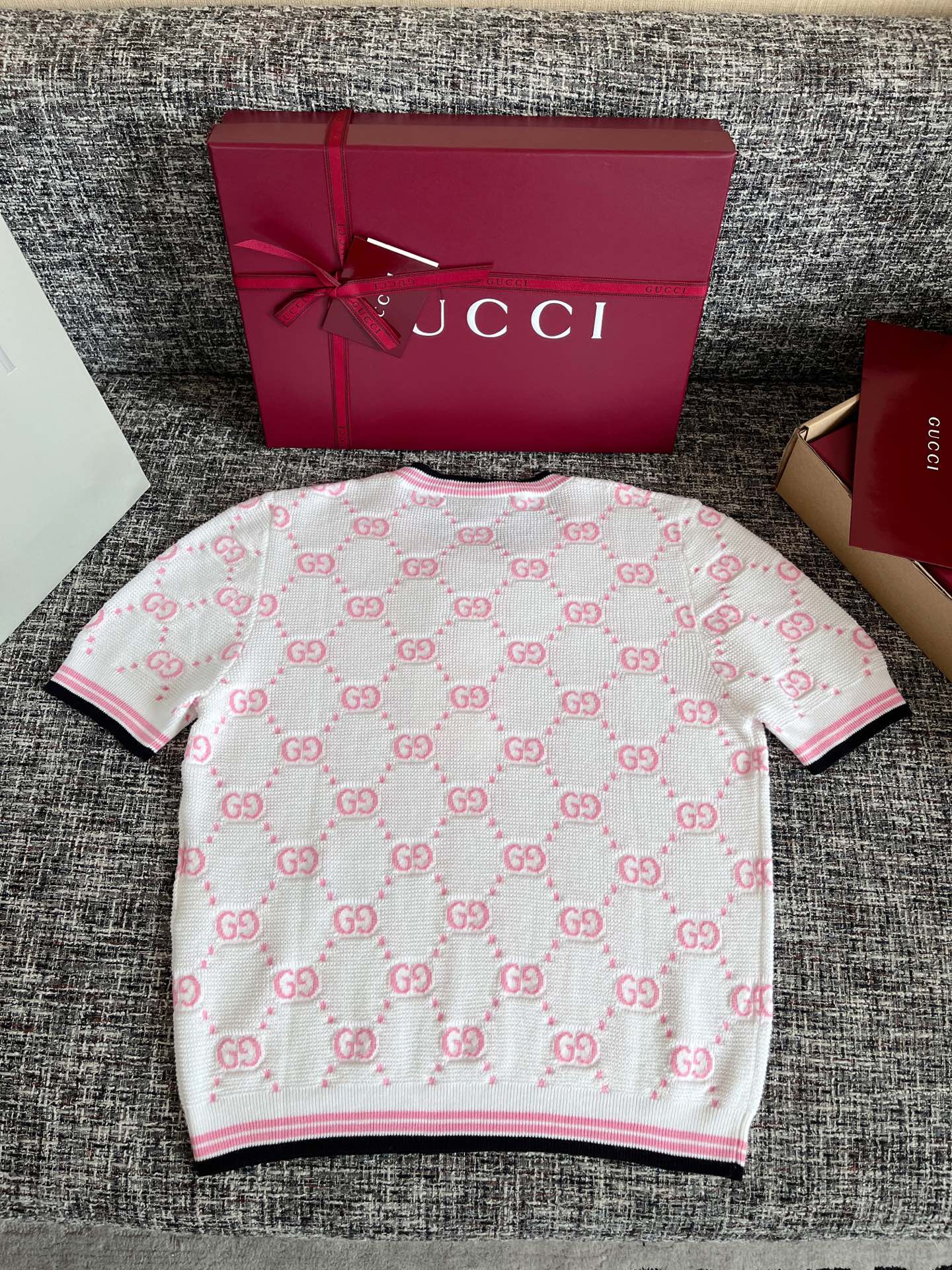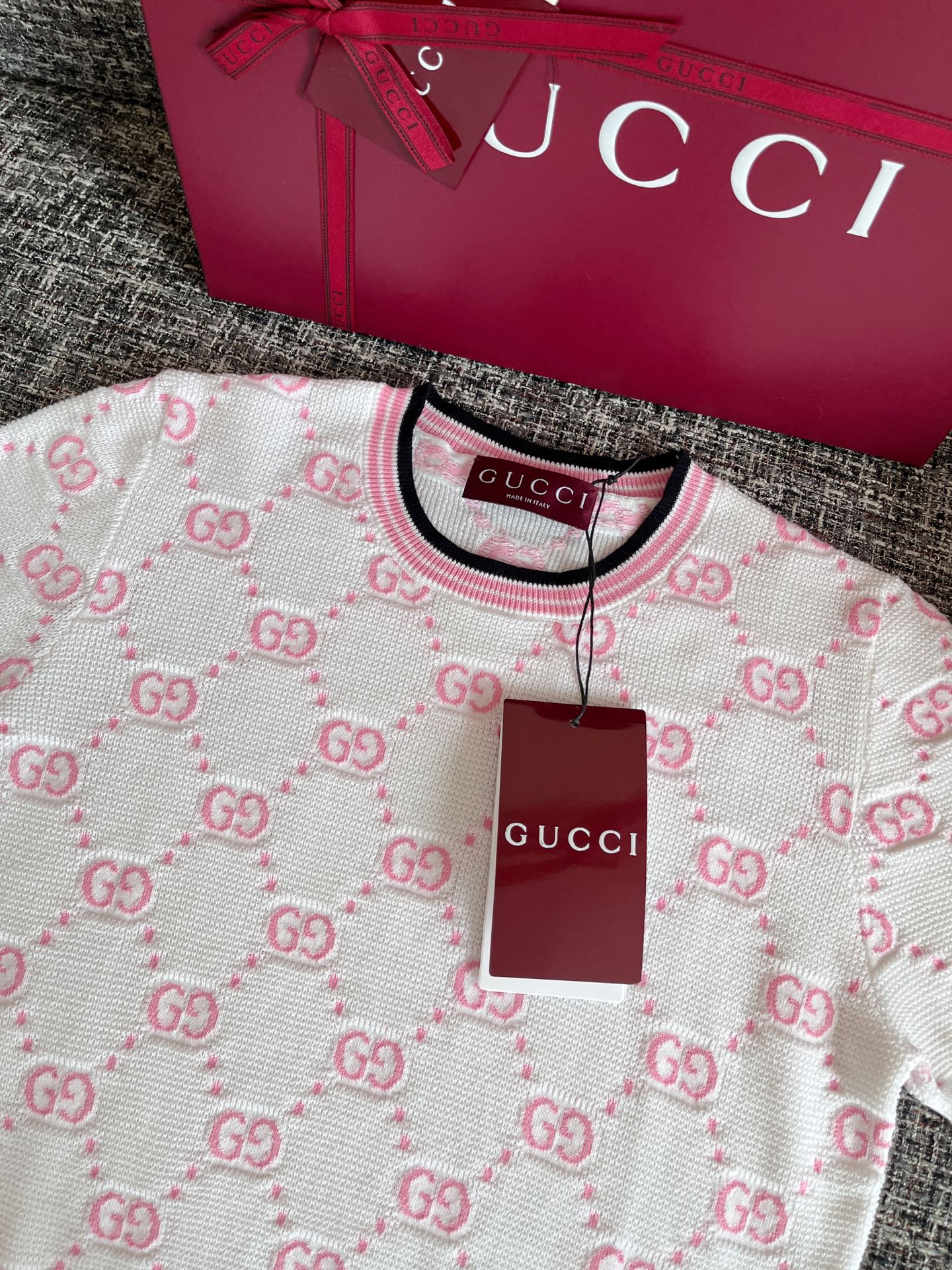 古驰25早春针织短袖🐮8400购买Zp拆解打造,订织订染精细针织进口面料🐮真正用到100%纯棉纱线织布做到对版出货💪工艺放大看细节除还原度接近98以上 做工也无敌了🔥真正做到1:1还原 直接闭着眼购买👀码数:S M L XL
