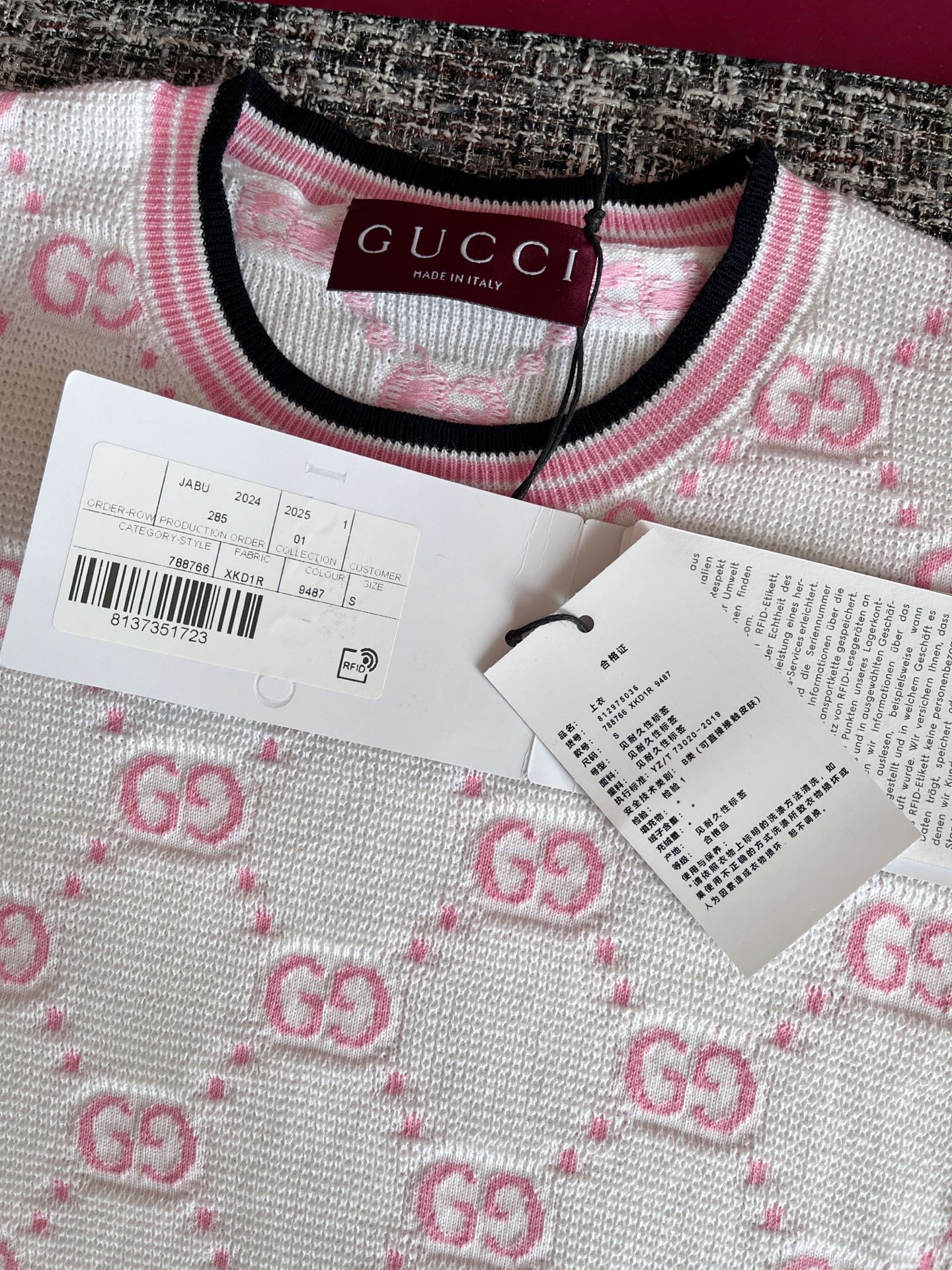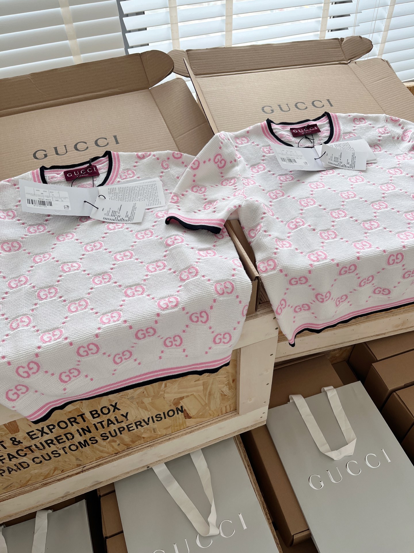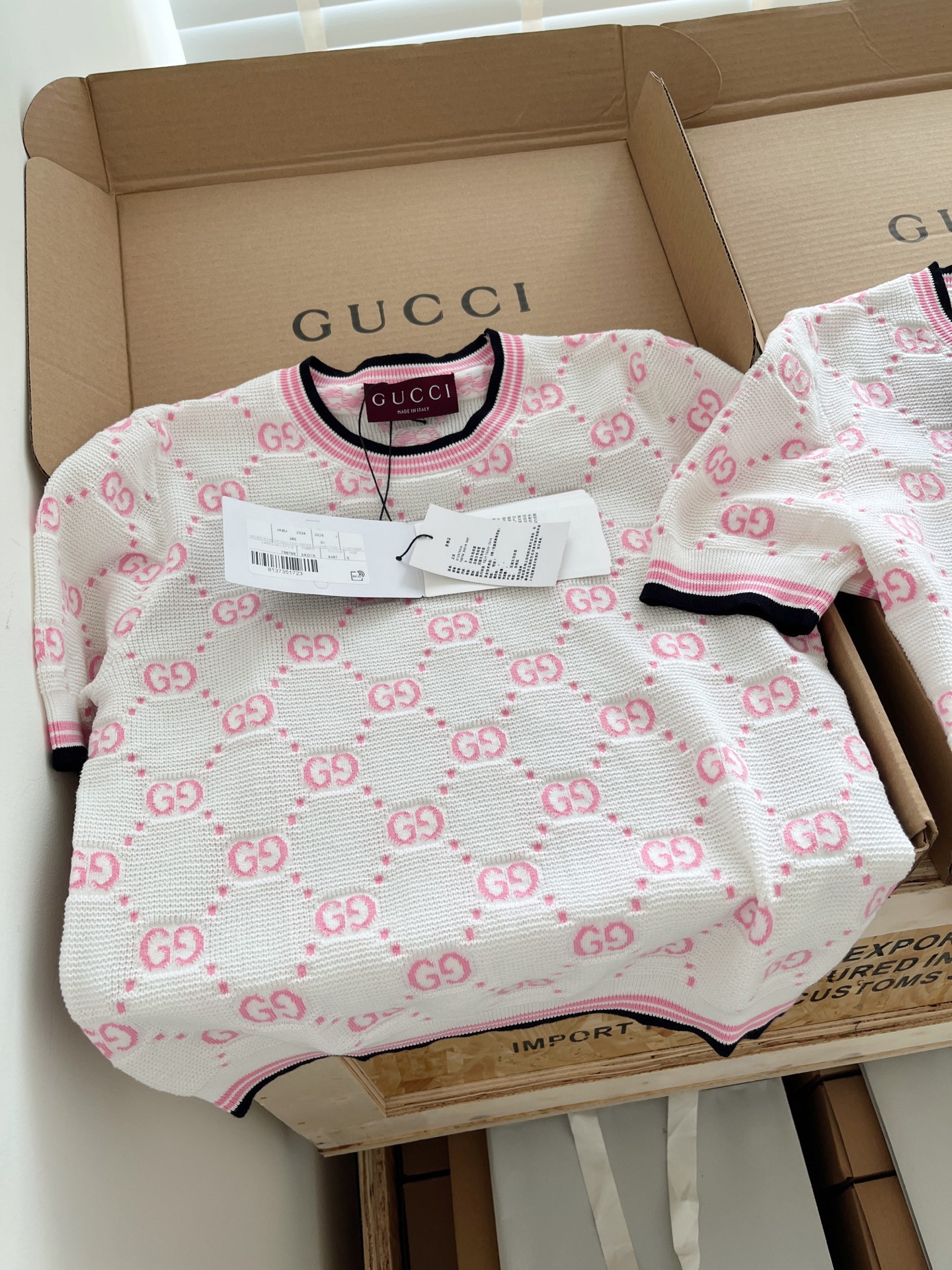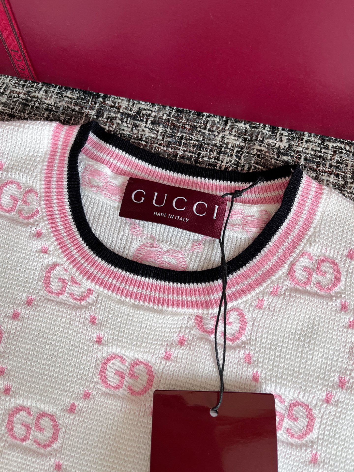古驰25早春针织短袖🐮8400购买Zp拆解打造,订织订染精细针织进口面料🐮真正用到100%纯棉纱线织布做到对版出货💪工艺放大看细节除还原度接近98以上 做工也无敌了🔥真正做到1:1还原 直接闭着眼购买👀码数:S M L XL