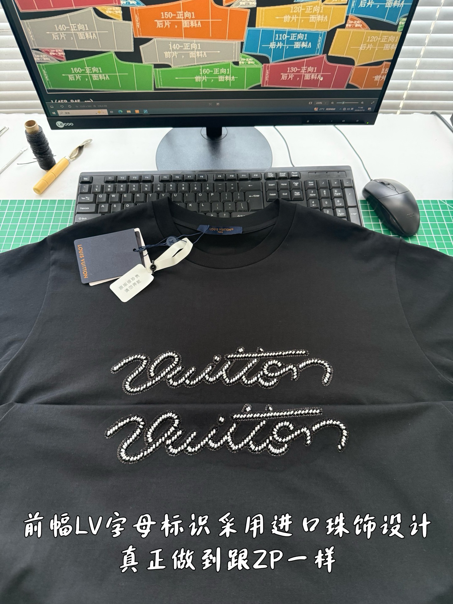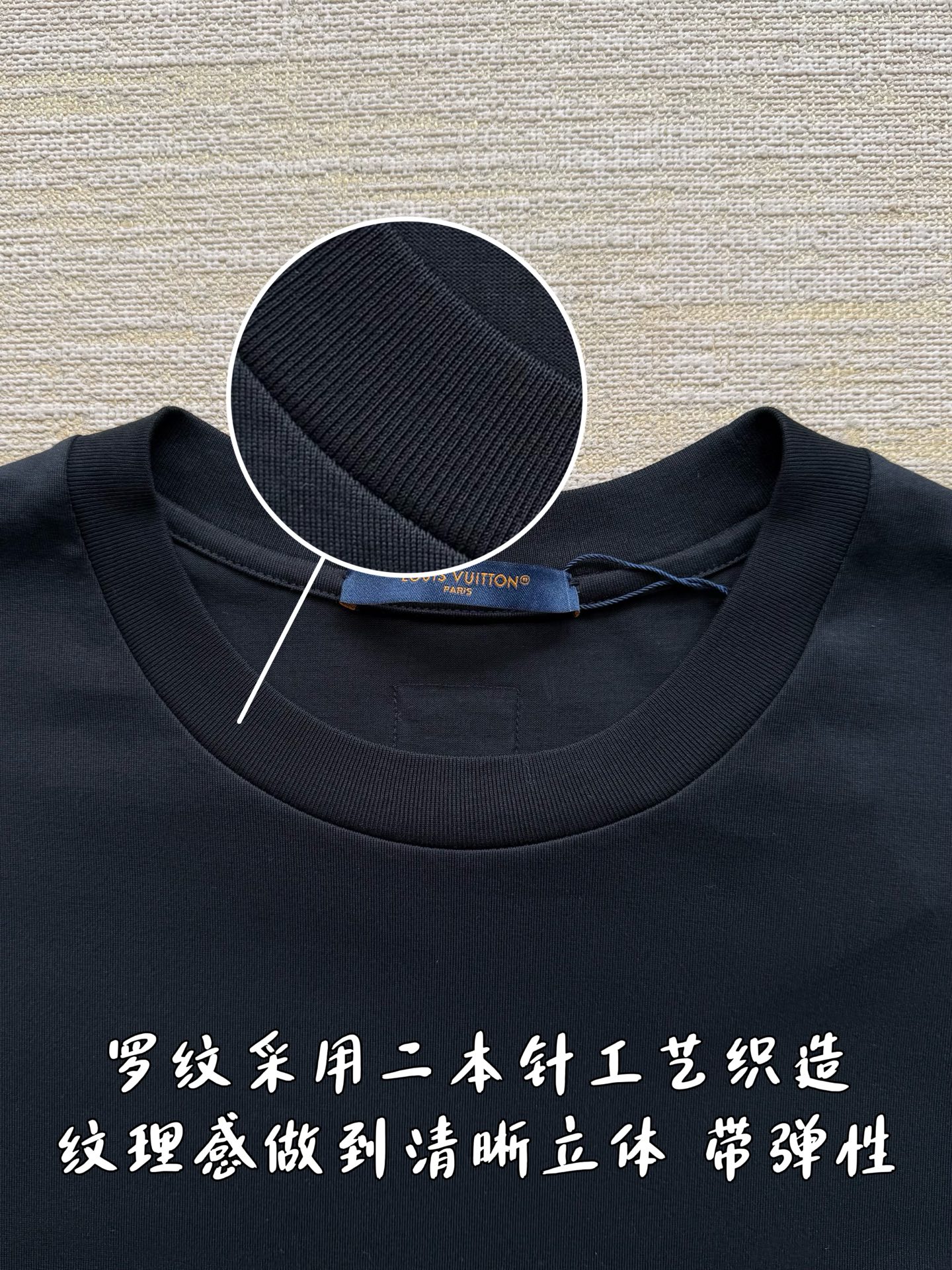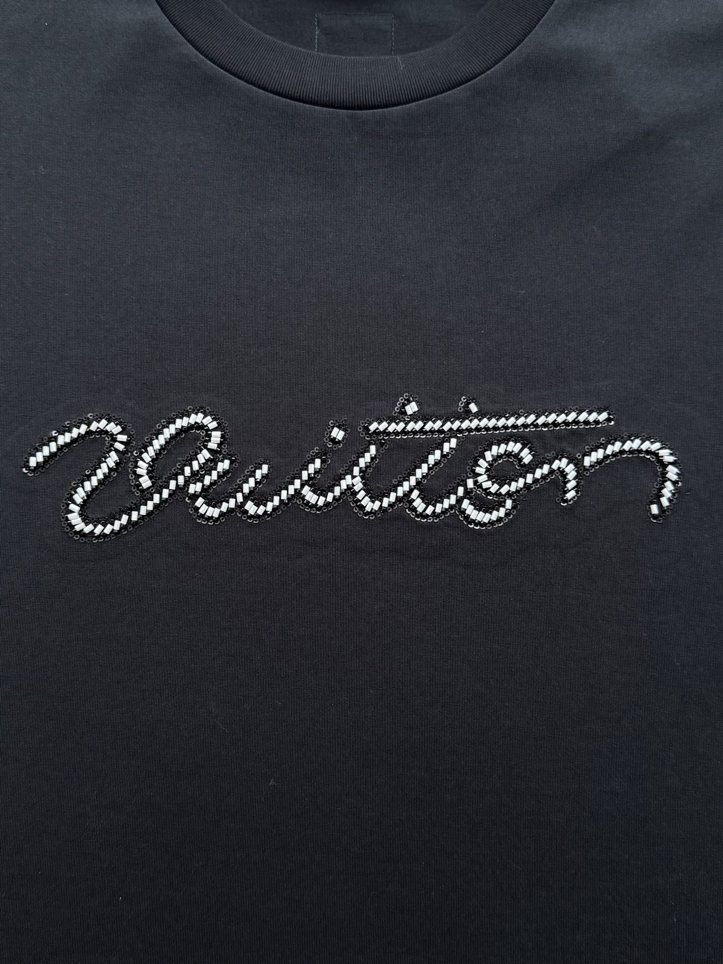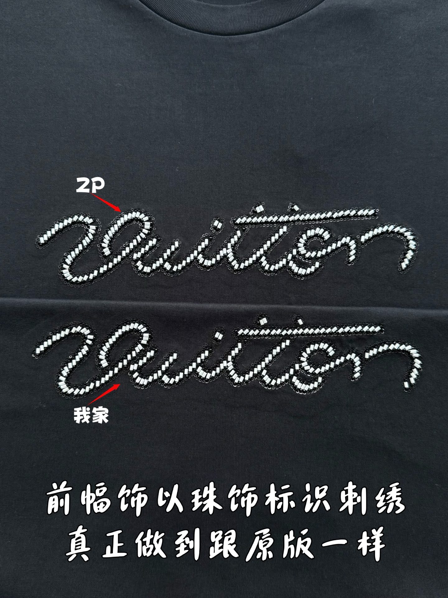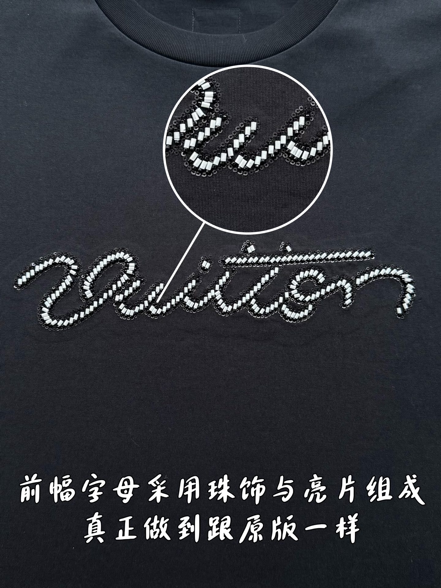 整件衣服10400购买ZP拆解打造,采用定制黑色纯棉面料,做到100%全棉进口纱线,意大利制造,前幅饰以珠饰标识刺绣,定制标志性罗纹领口,超紧密度局部编织,