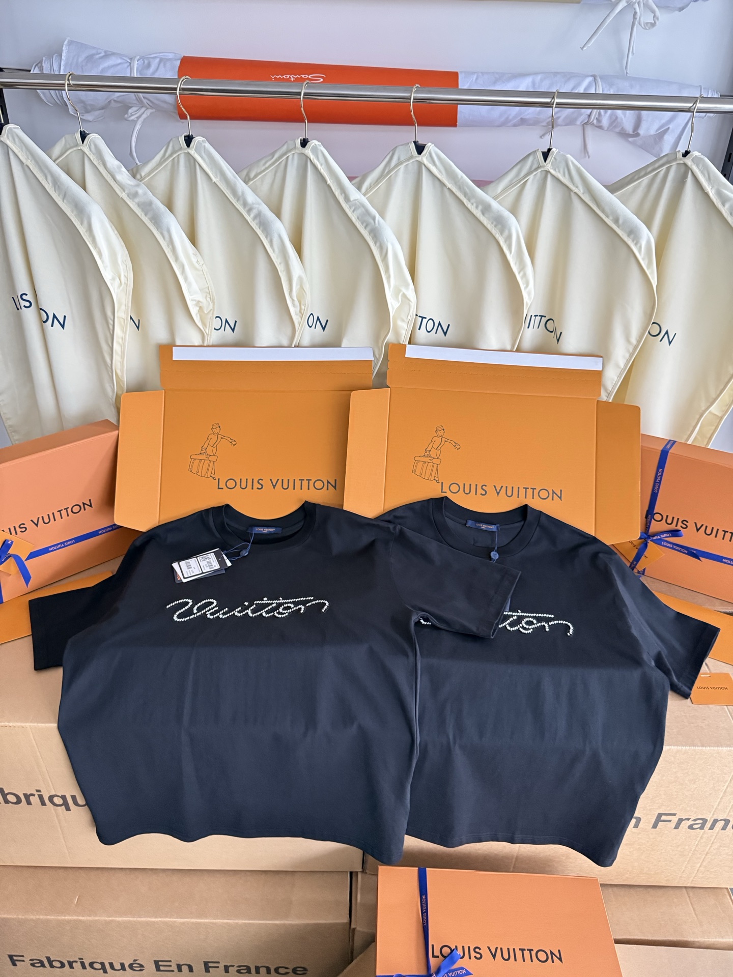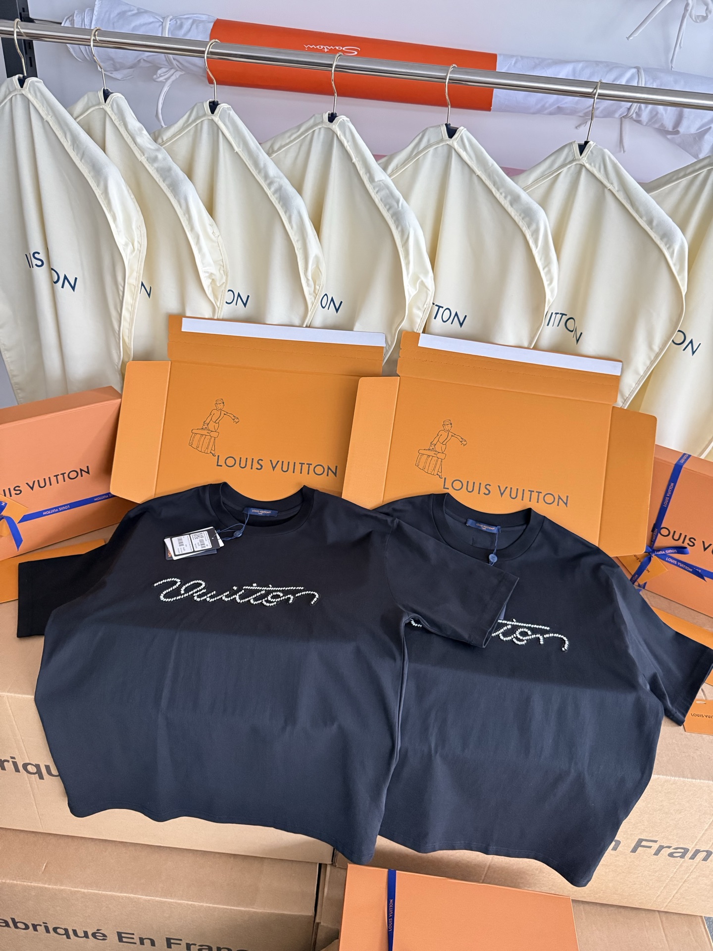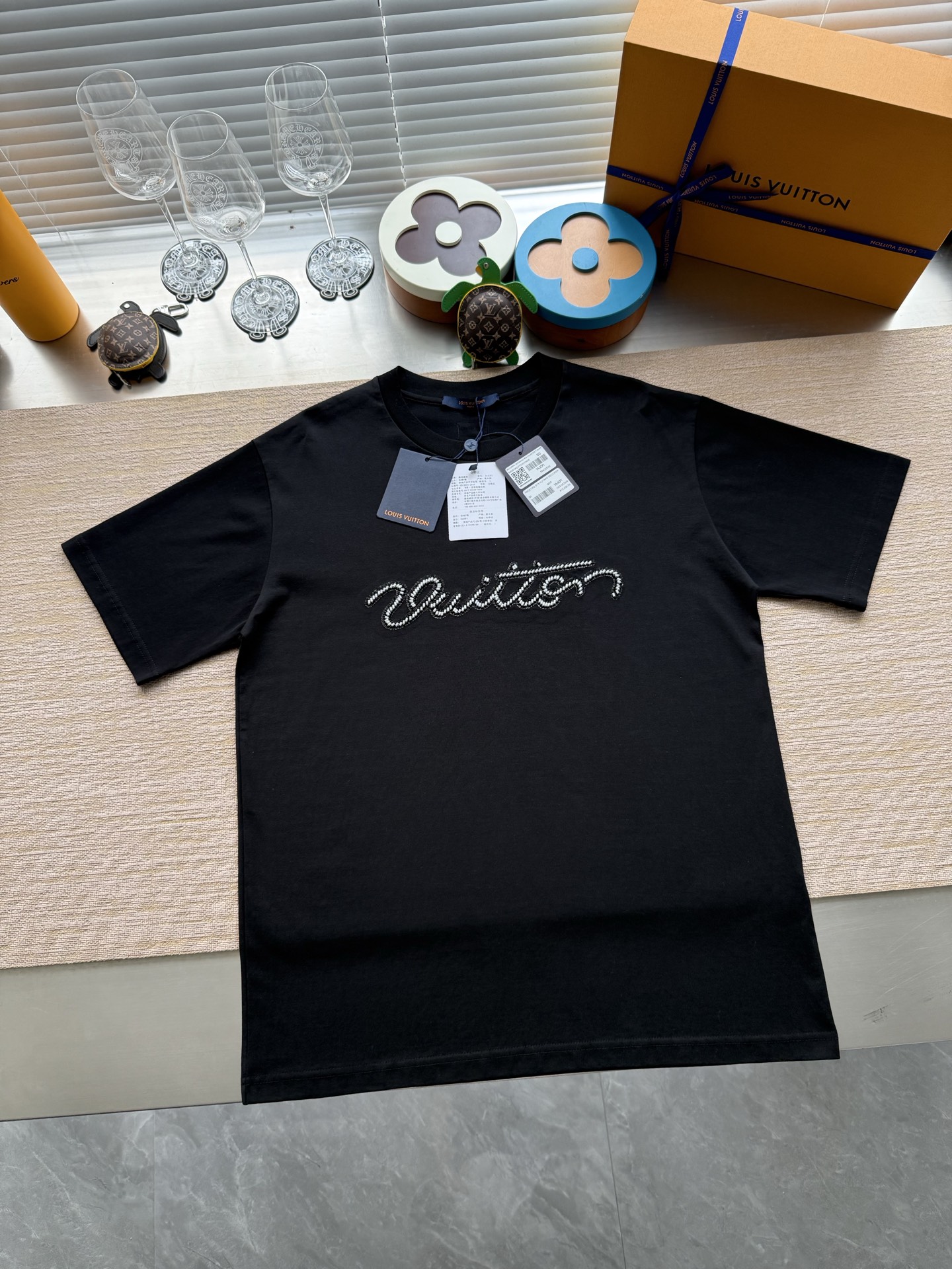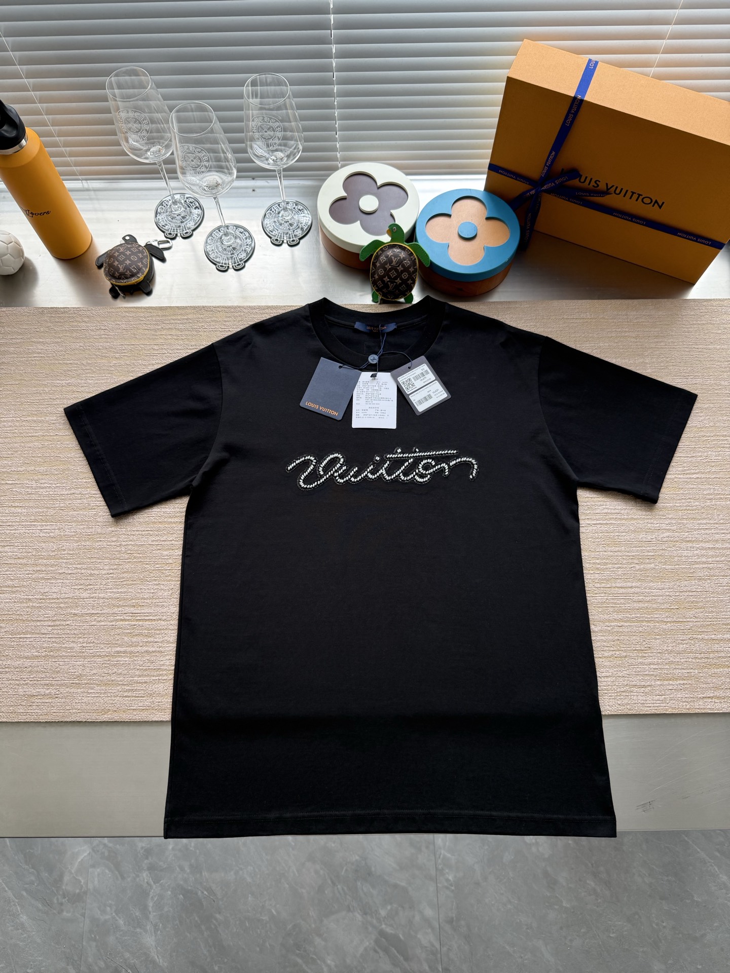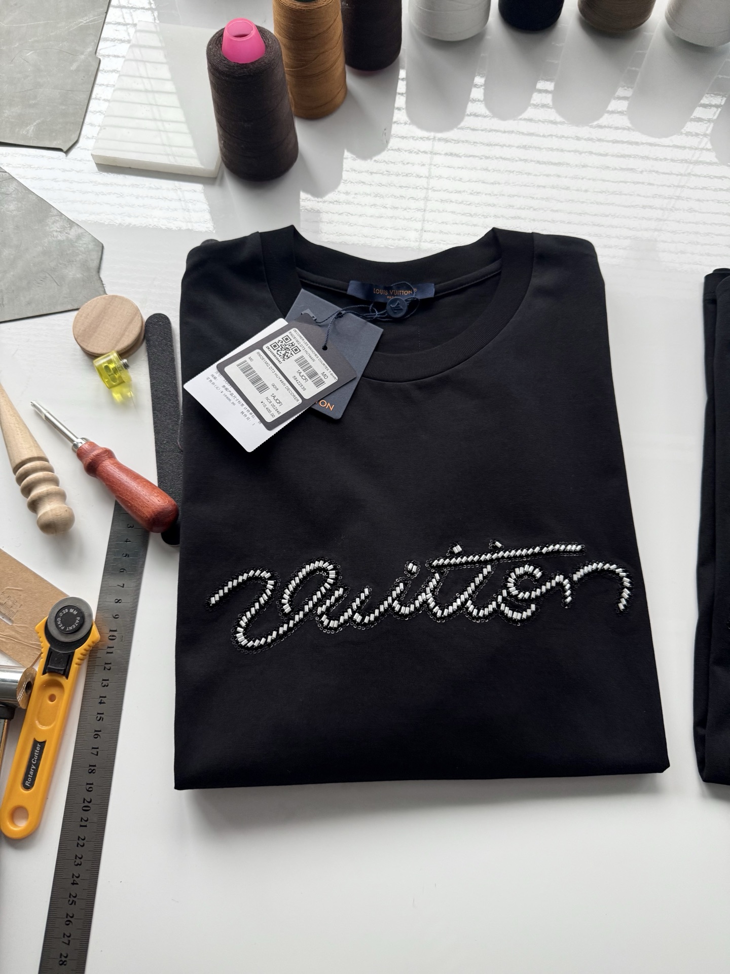 整件衣服10400购买ZP拆解打造,采用定制黑色纯棉面料,做到100%全棉进口纱线,意大利制造,前幅饰以珠饰标识刺绣,定制标志性罗纹领口,超紧密度局部编织,