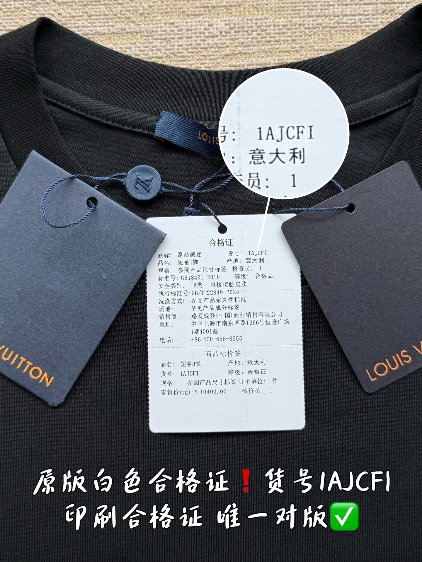 印刷合格证货号1AJCFI 唯一对版✅ 洗水麦编码对应吊牌编码DT3 HUY44W 合格证货号 吊牌编码 洗水麦编码做到跟原版一致‼️