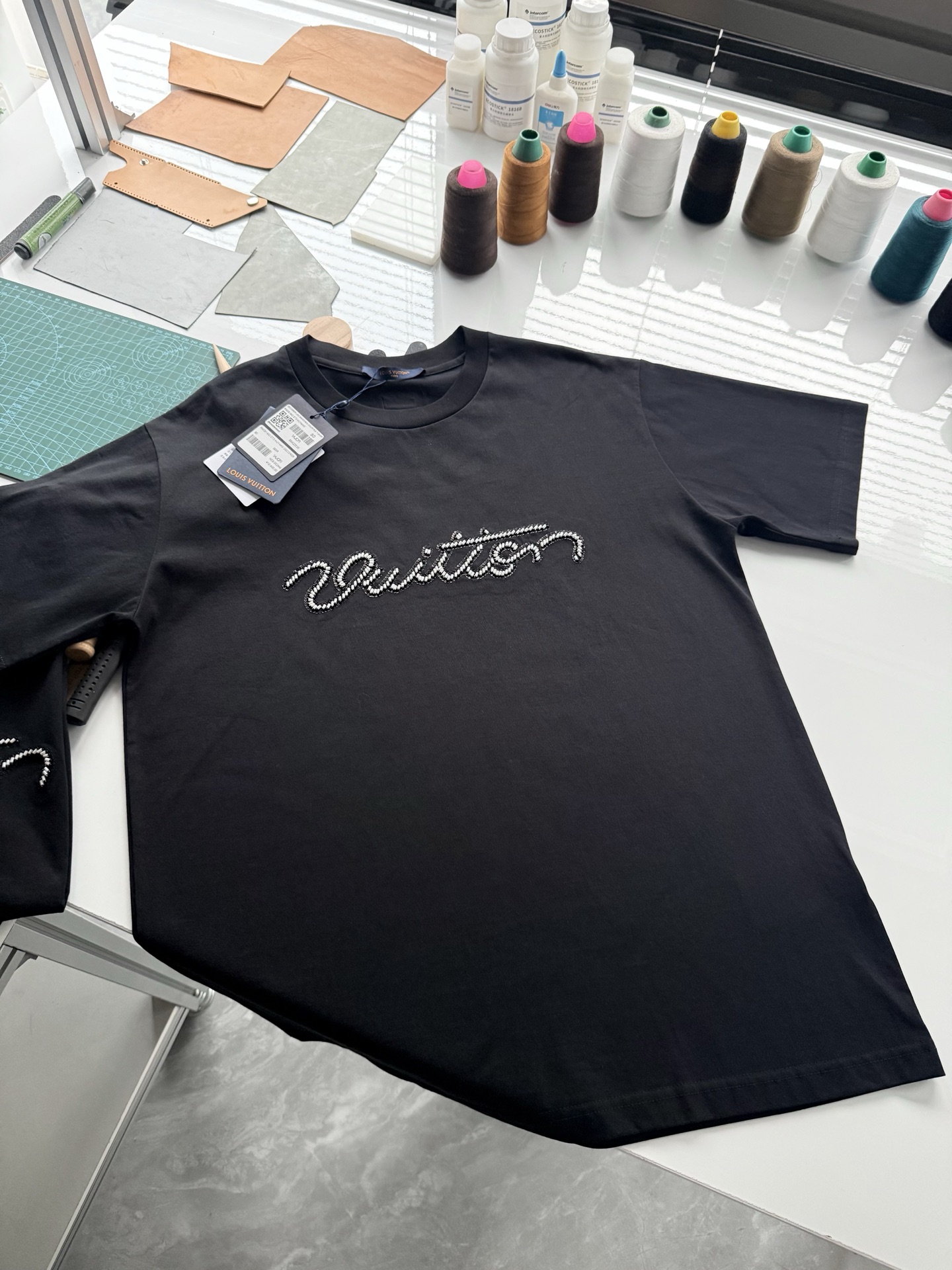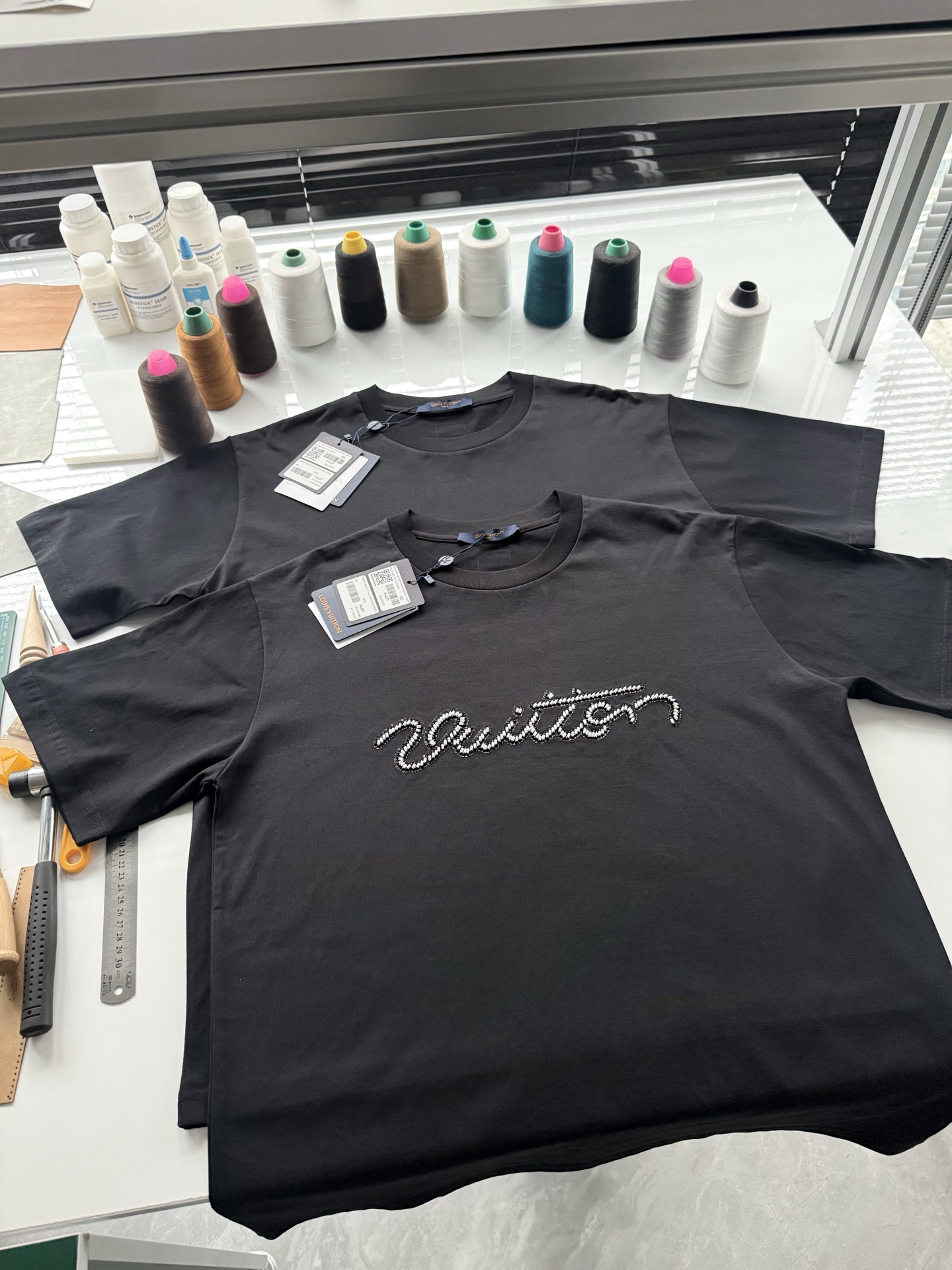 驴家25ss字母标识珠饰刺绣短袖T恤‼️