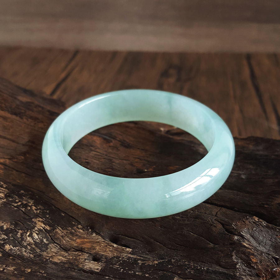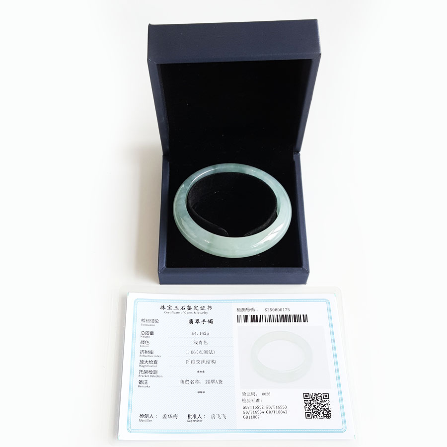 名称 | 天然收藏级细腻无纹裂正桩糯冰种晴水58号翡翠手镯 |