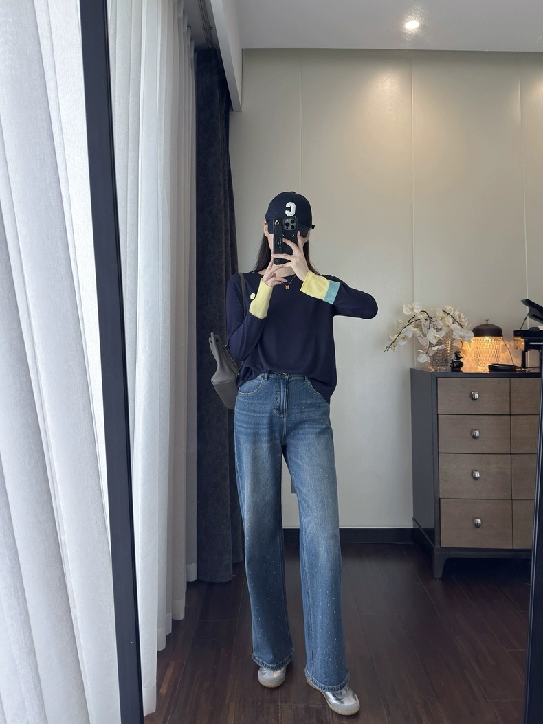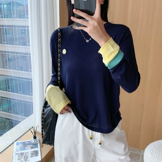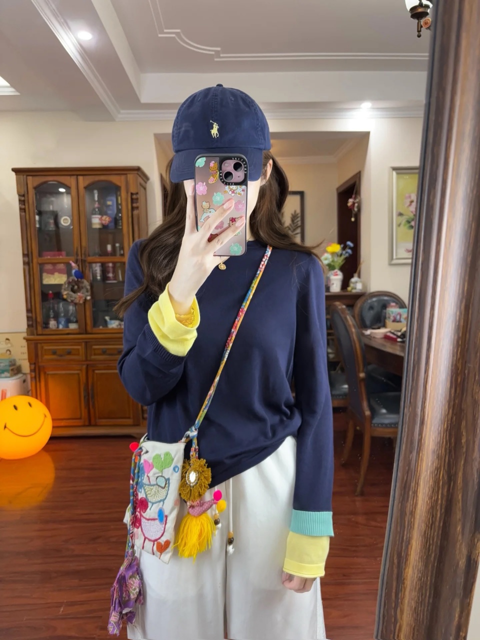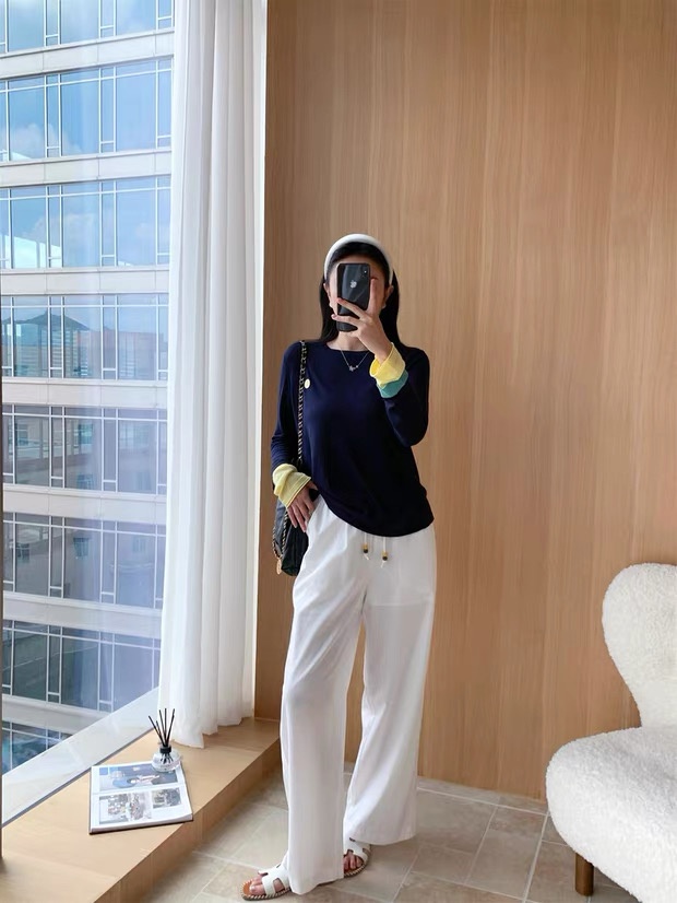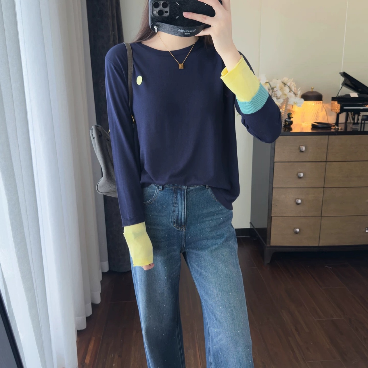 selfwho同款isabelle marran伊莎贝尔笑脸天丝羊毛混纺撞色上衣JS3699044