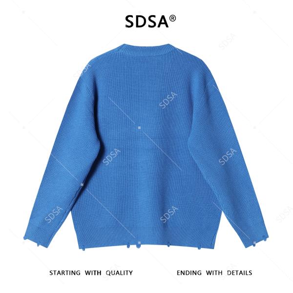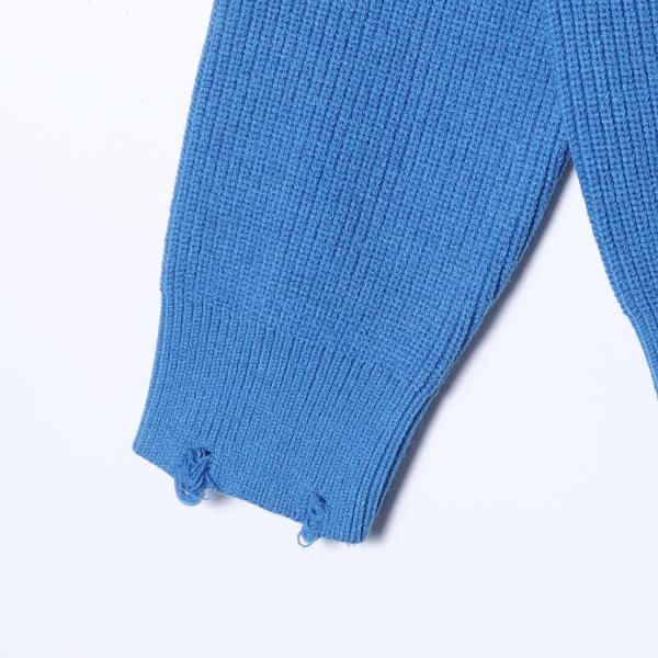 82519SDSA男士秋冬新款痞帅男装韩版纯色勾破圆领针织衫简约百搭毛衣
